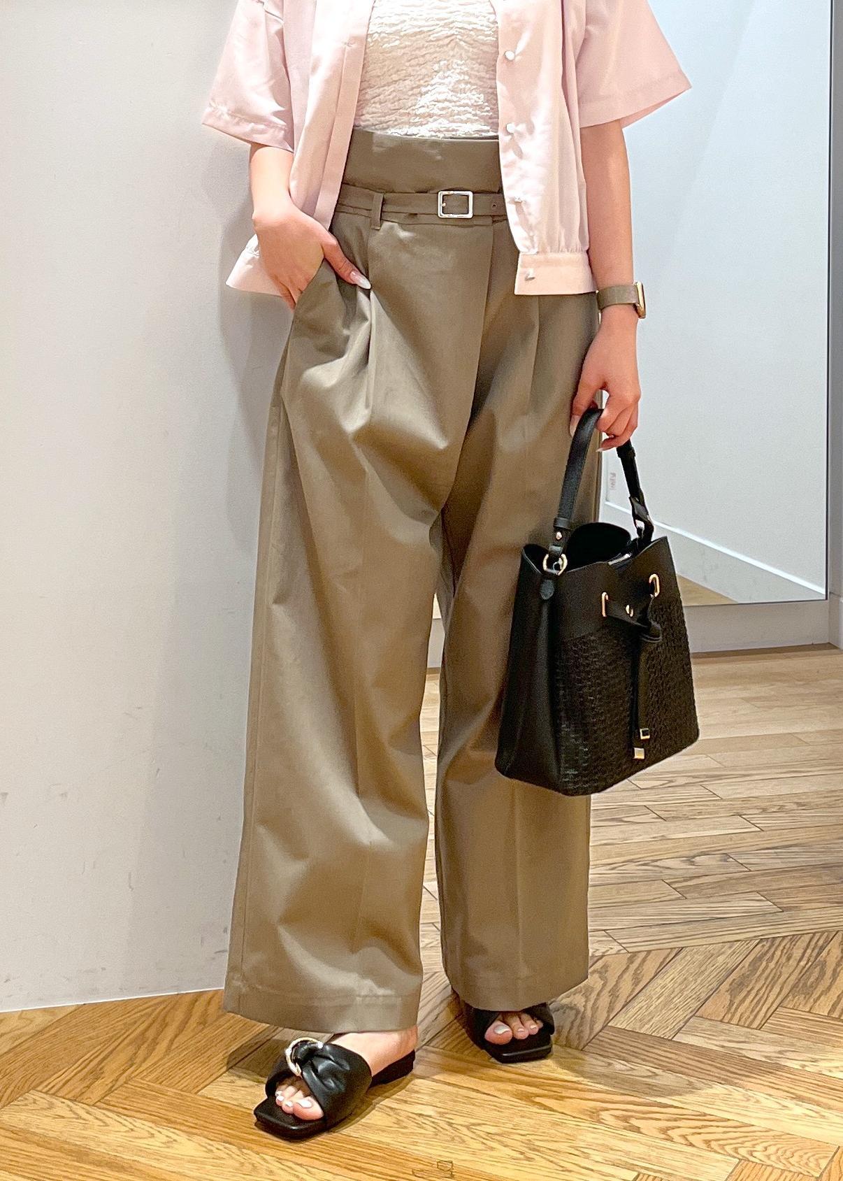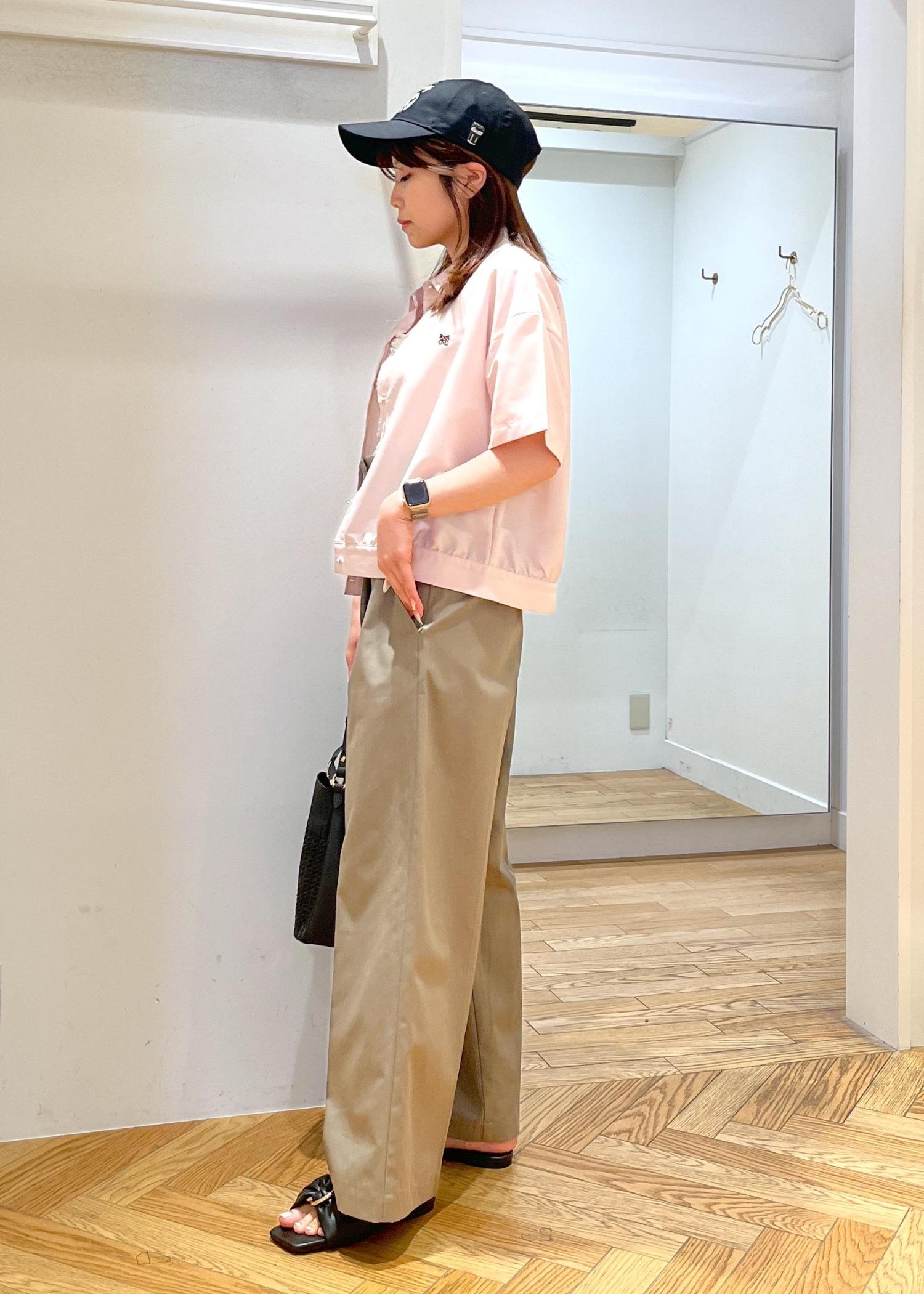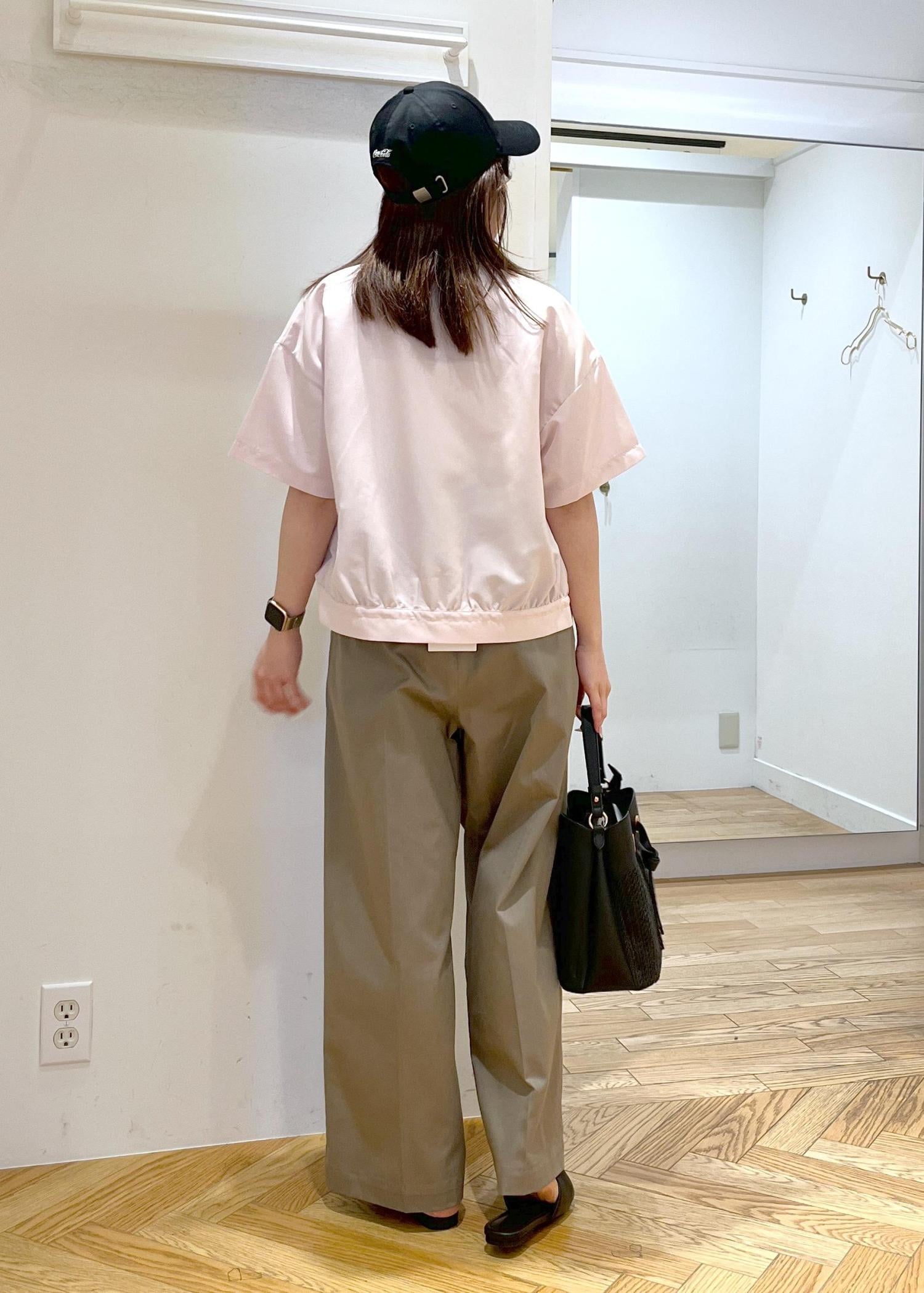 パステルピンクにカーキを合わせて秋口まで着れるスタイリング!