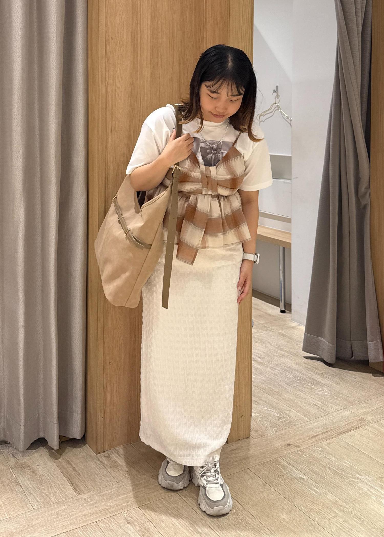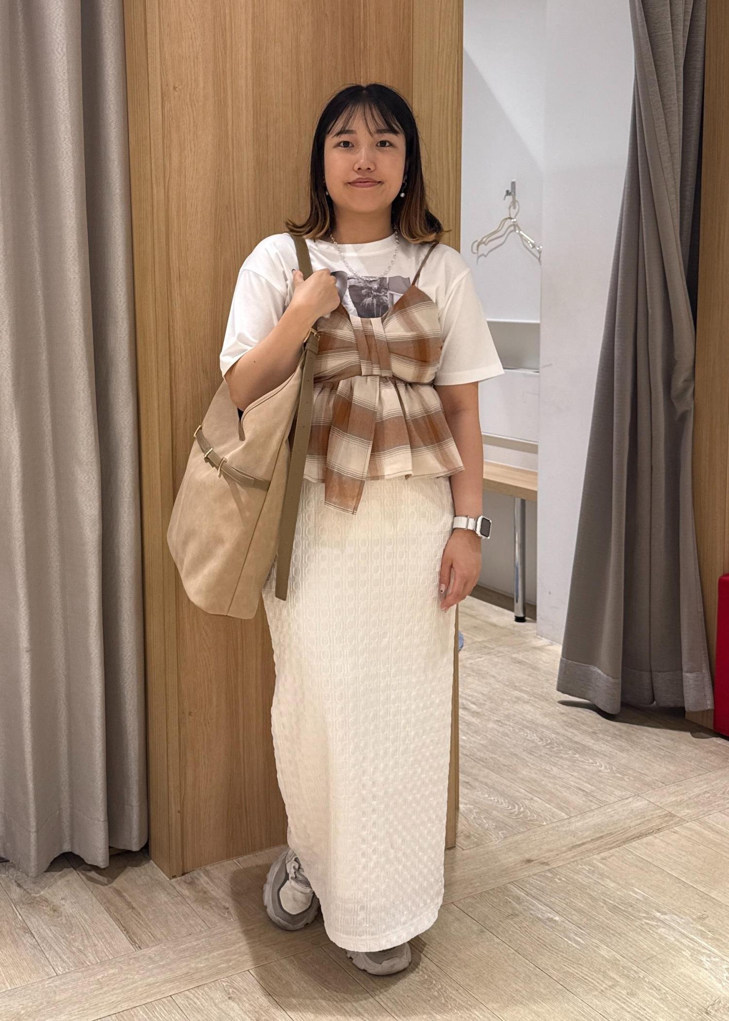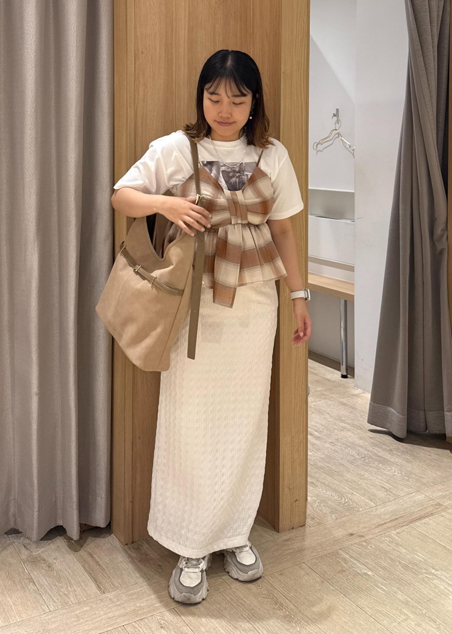 153cmの私ですが、丈感もお尻が隠れるくらいの長さがあるので安心して着ていただけます! -