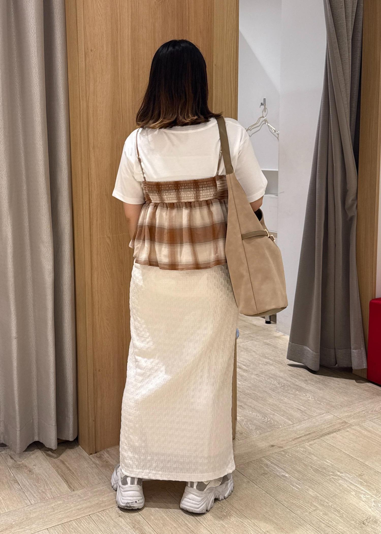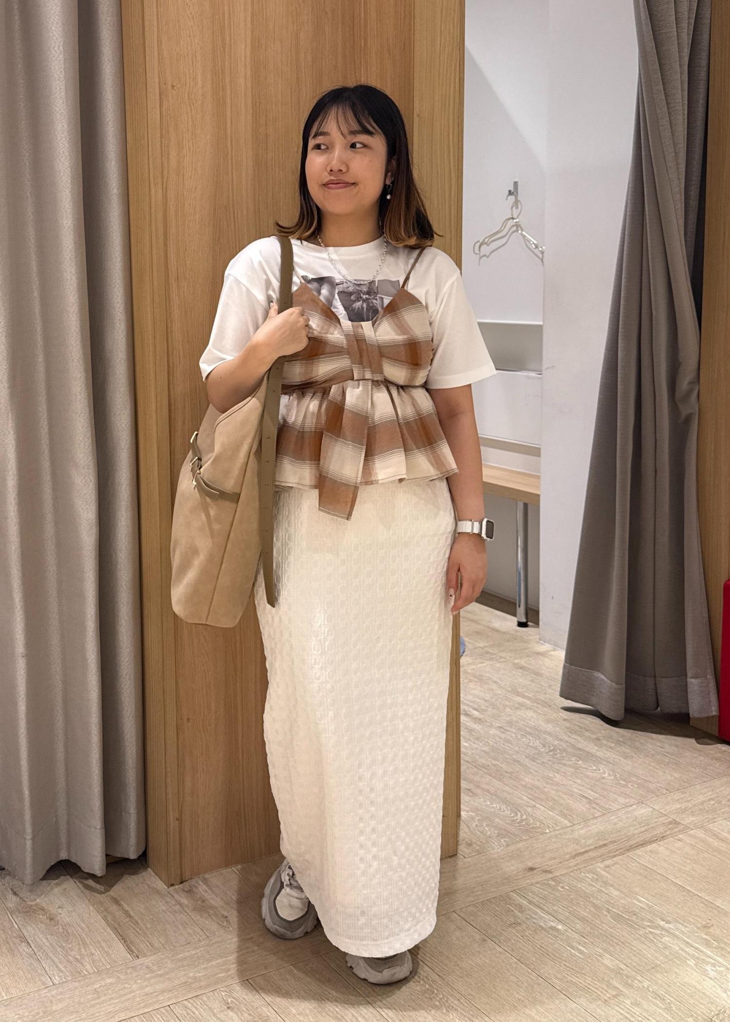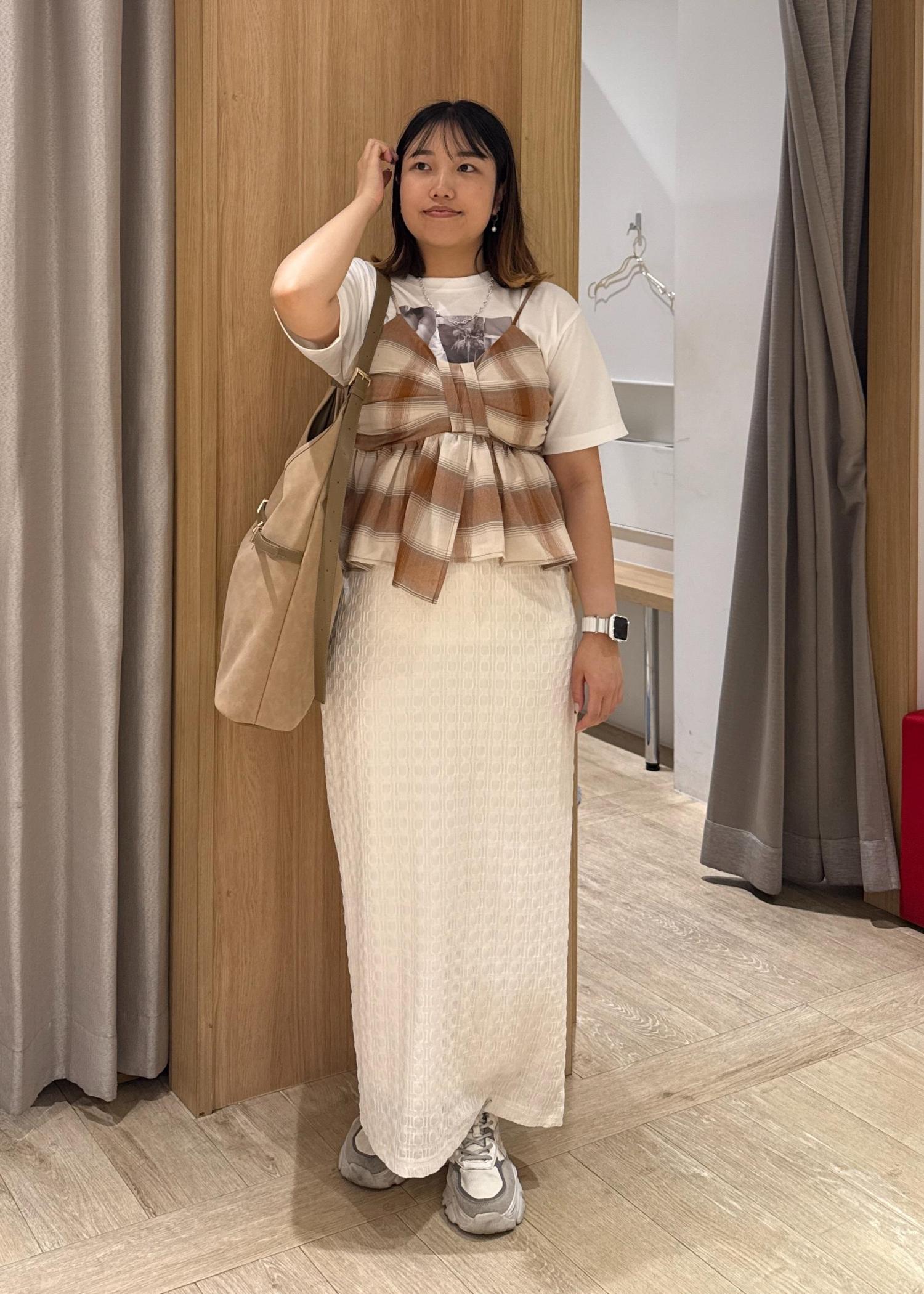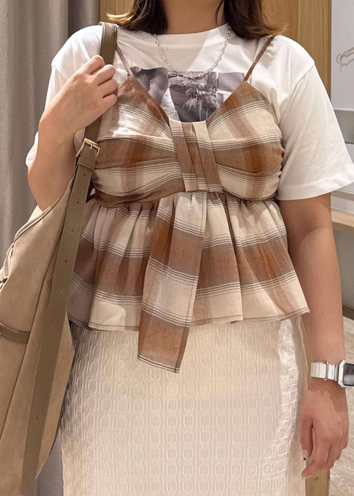 VISオンブレチェックリボンビスチェベージュ系 / F¥5,489レビュー後ろにゴムが付いているので、ゆったり着ていただけます!