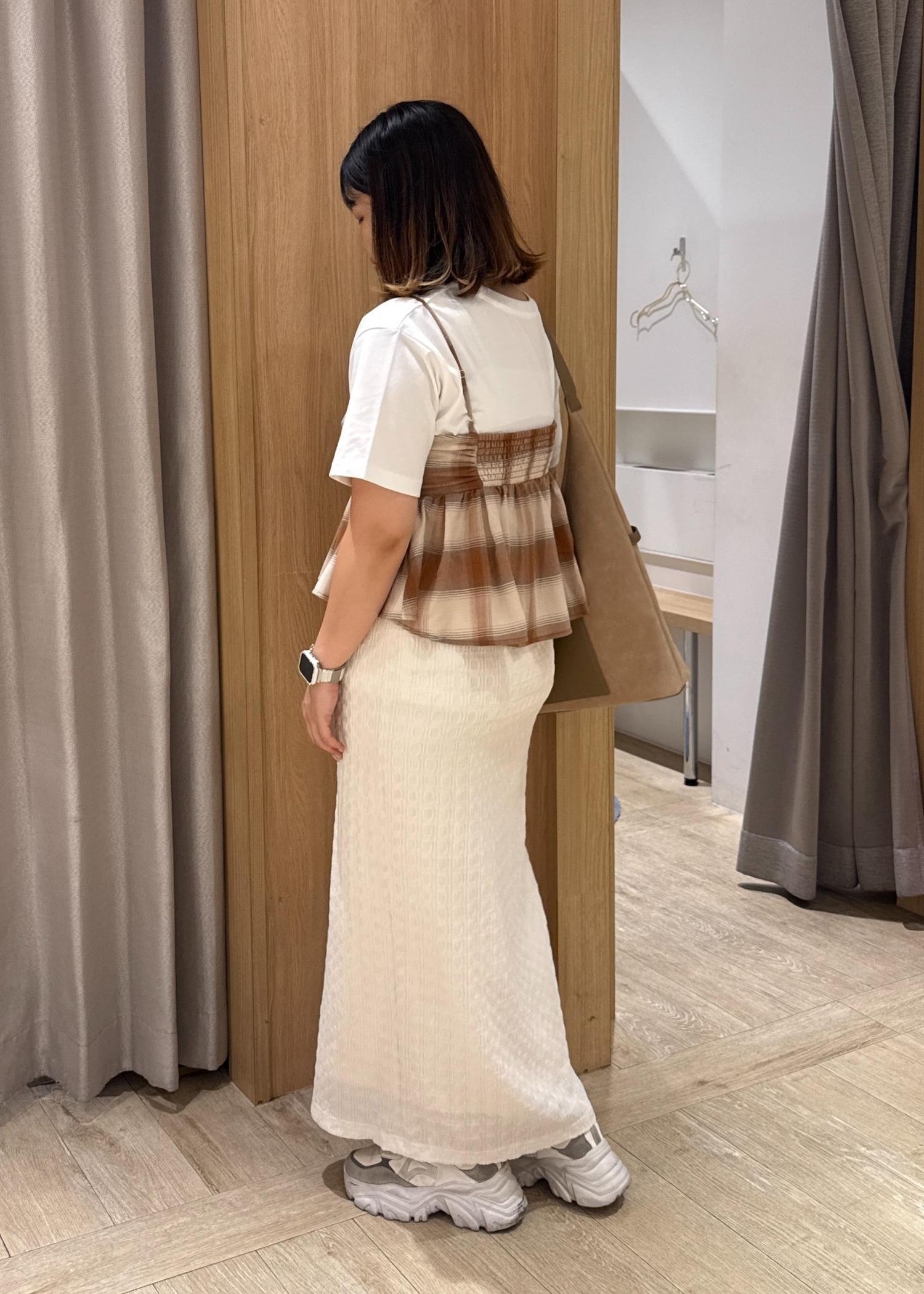 アウトレットVIS【新色追加】【接触冷感】膨れジャガードナロースカートオフホワイト / F¥3,293レビュー153cmの私ですが、くるぶしくらいの丈感でした。