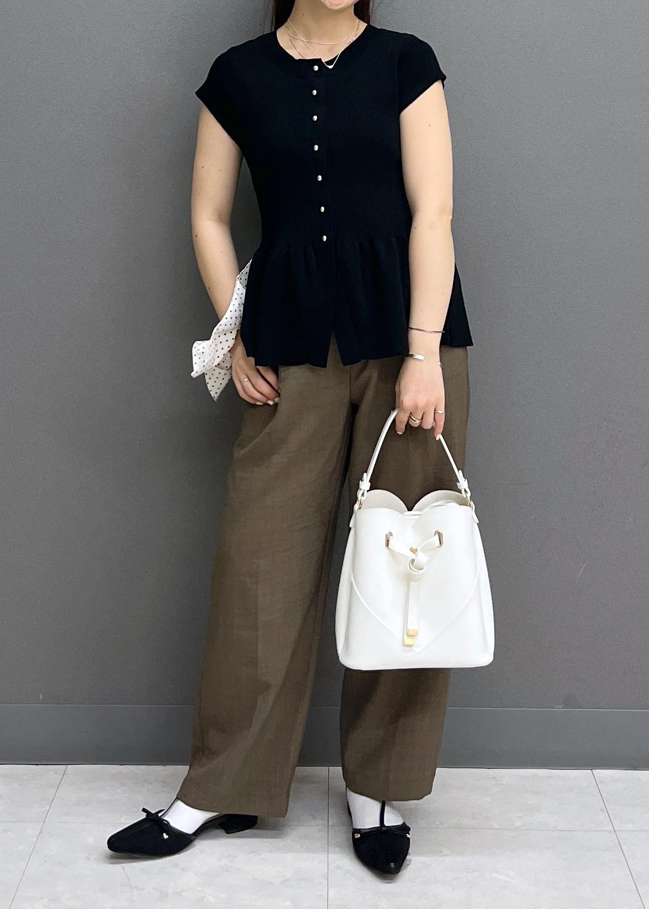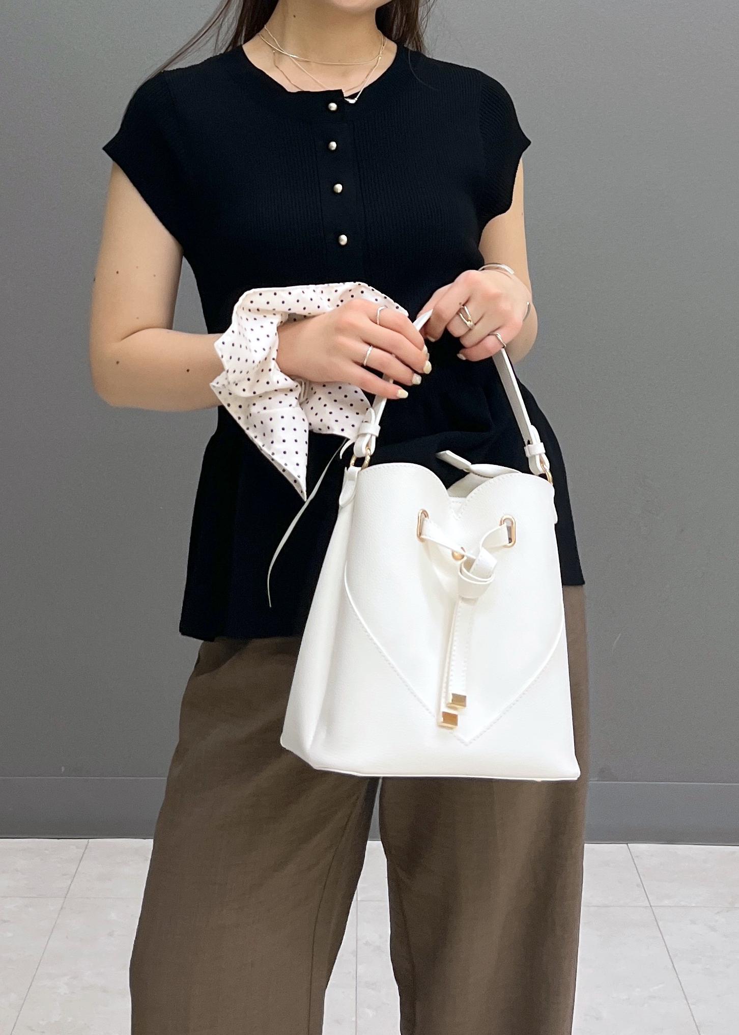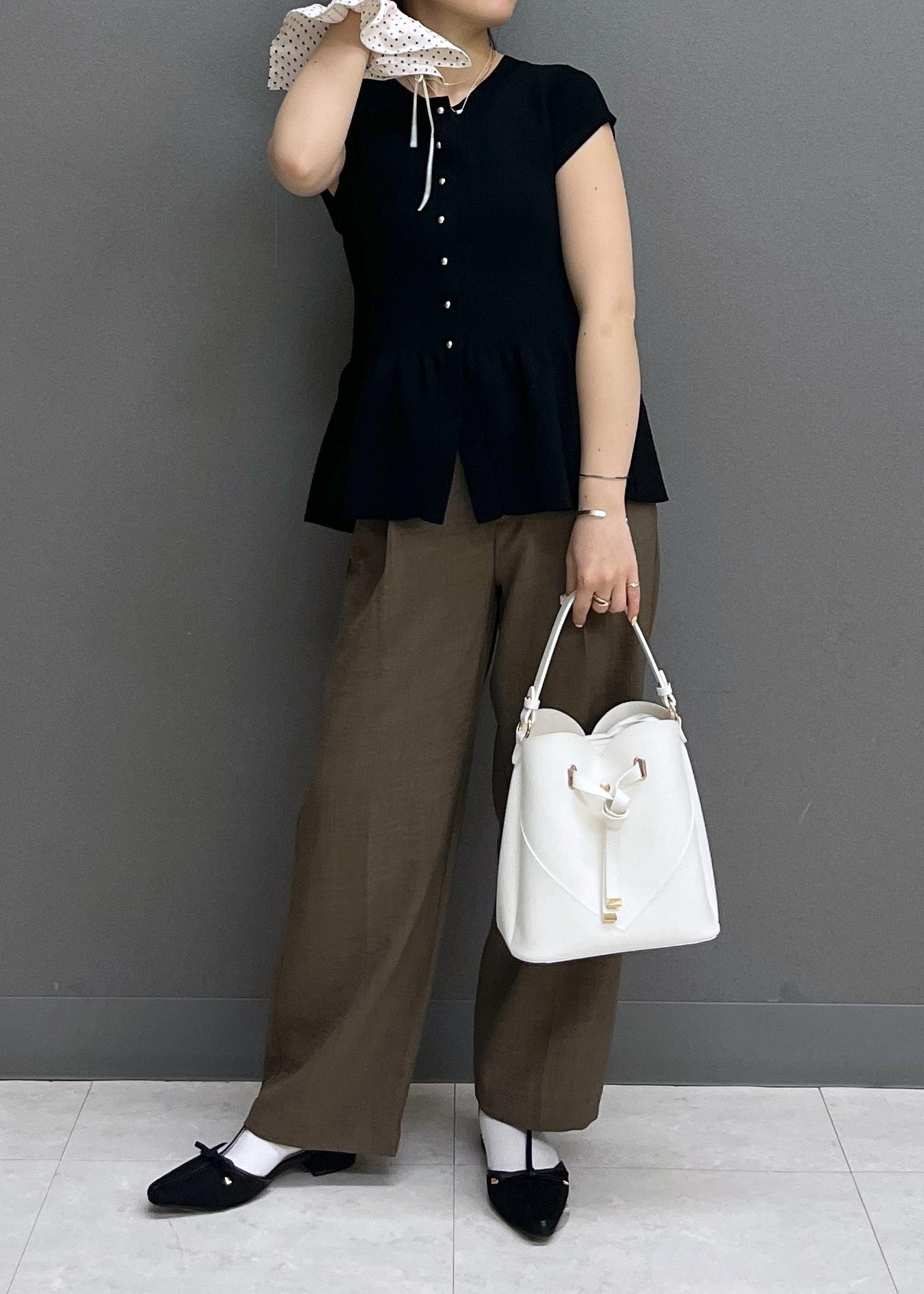 紐部分がアシンメトリーなデザインになるので、デコルテ周りがあいているトップスを着ても可愛いなと思いました☺︎ -