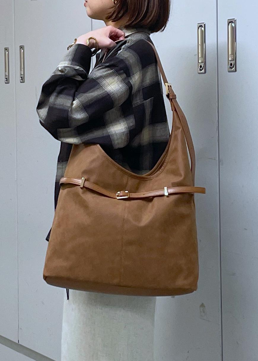 VIS【A4収納】フロントベルトソフトショルダーバッグダークブラウン / F¥5,535レビュースエード調でトレンド感あるデザインです。