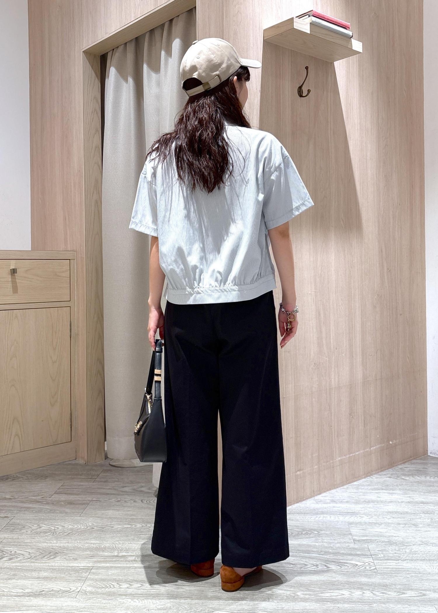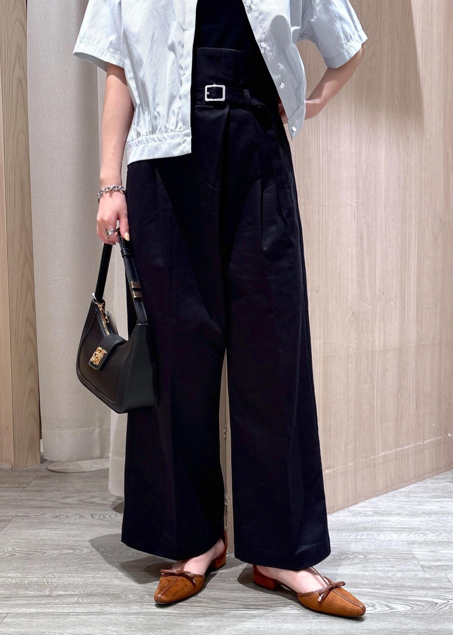 ウエスト部分が折り返しできるデザインで、雰囲気を変えて着用できます。張り感があり、体のラインも拾いづらいです! -