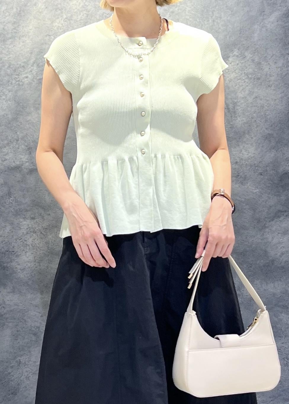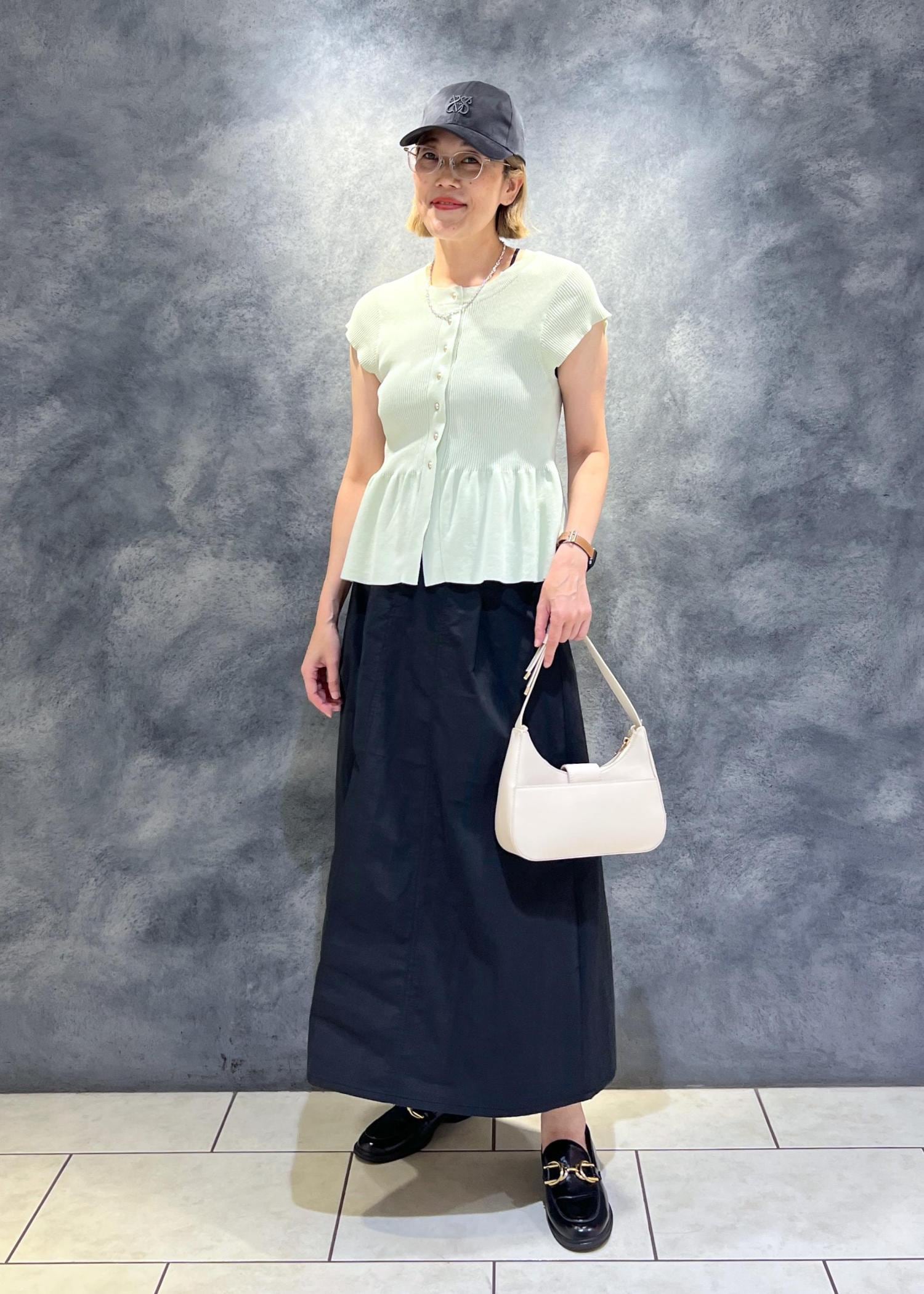 カーディガンのウエスト切り替えが高めだったのでチマチョゴリ風シルエットであえて着用しました。