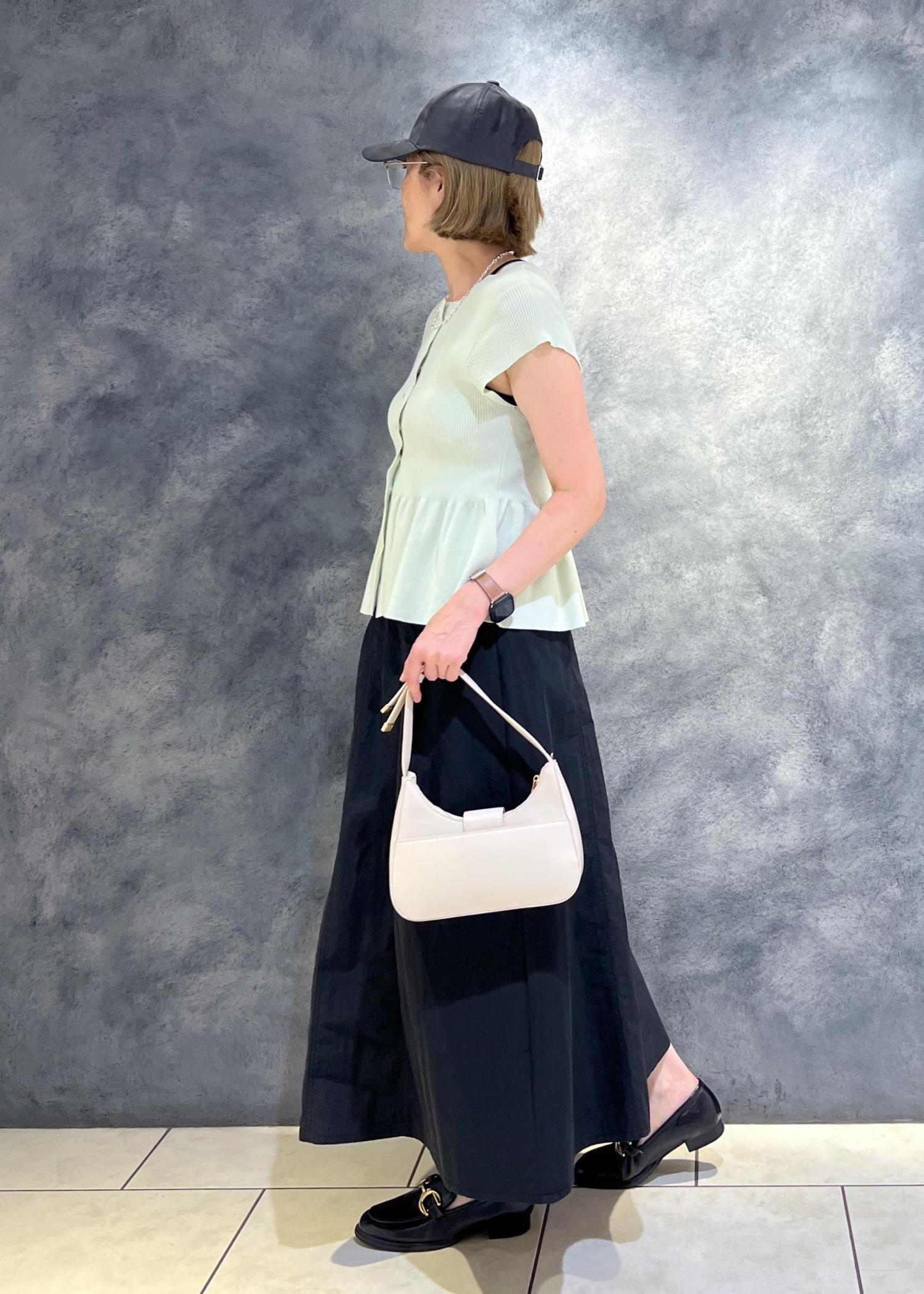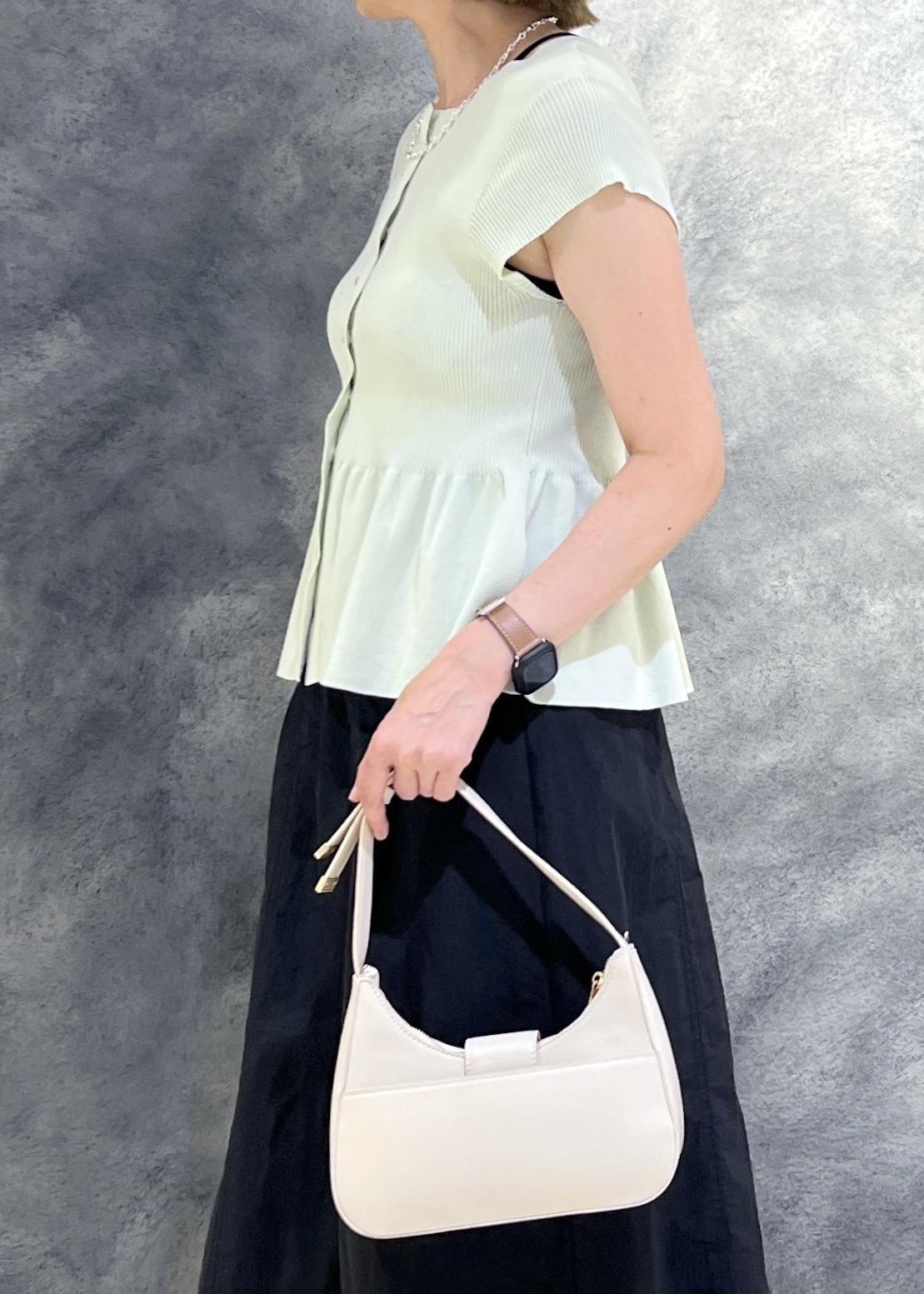 ゆったりアウターを着ていても肩がけがしやすいショルダーの長さが嬉しい。 -