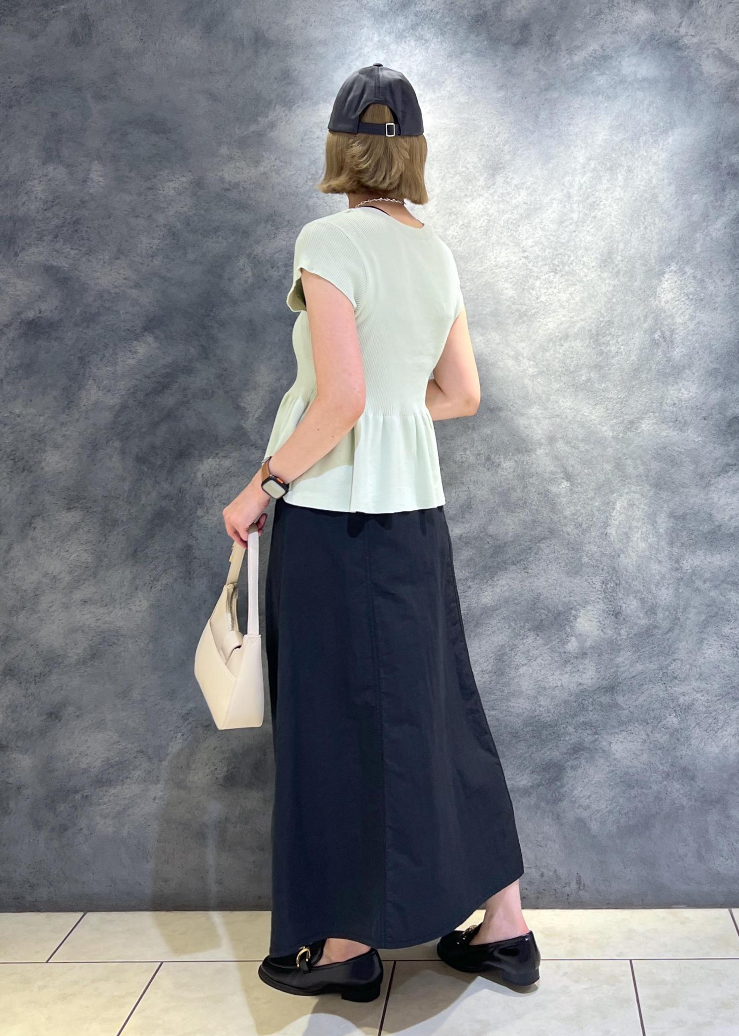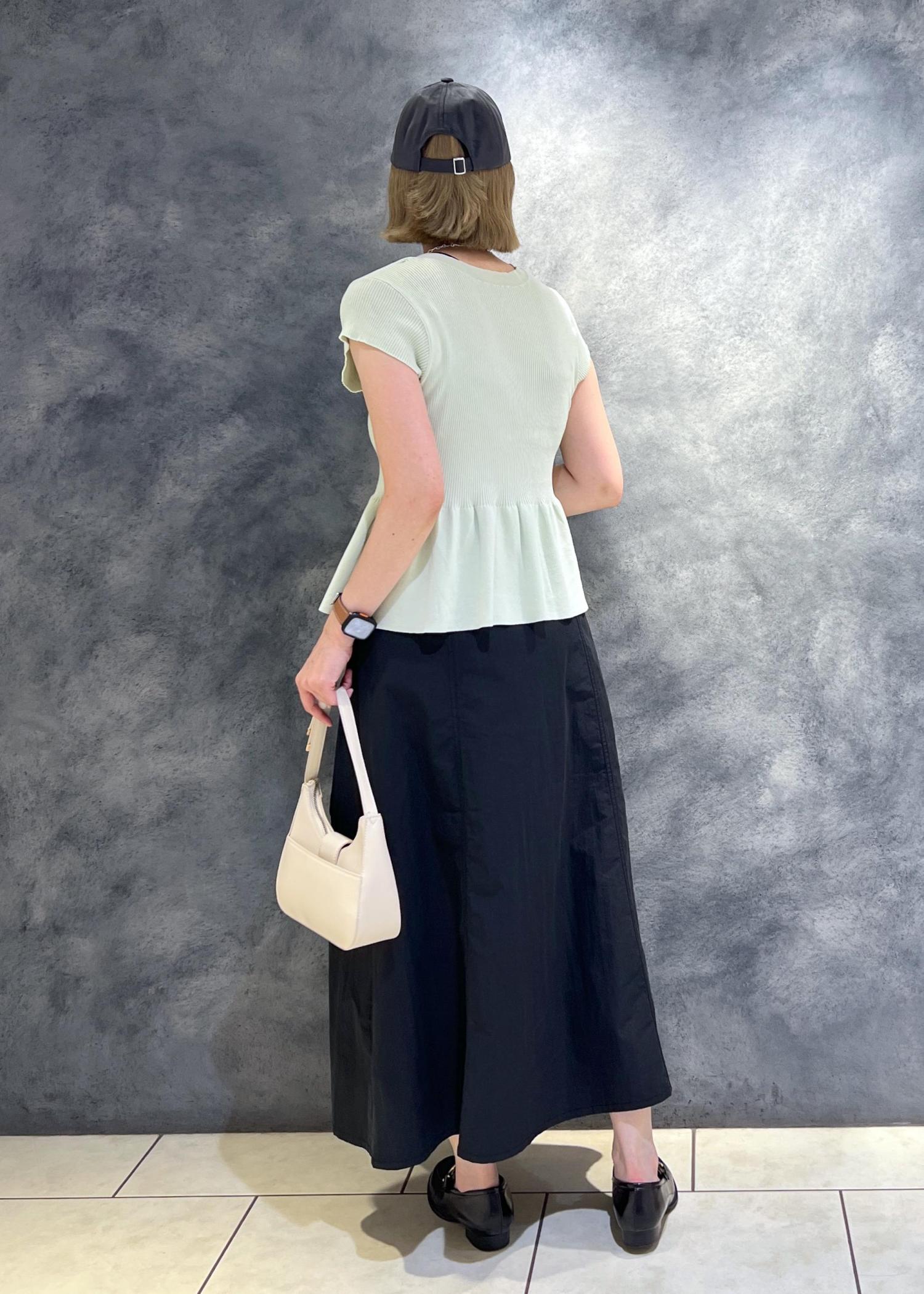 ペプラムの広がりからのAラインスカートは本来ならばあまりやりません。