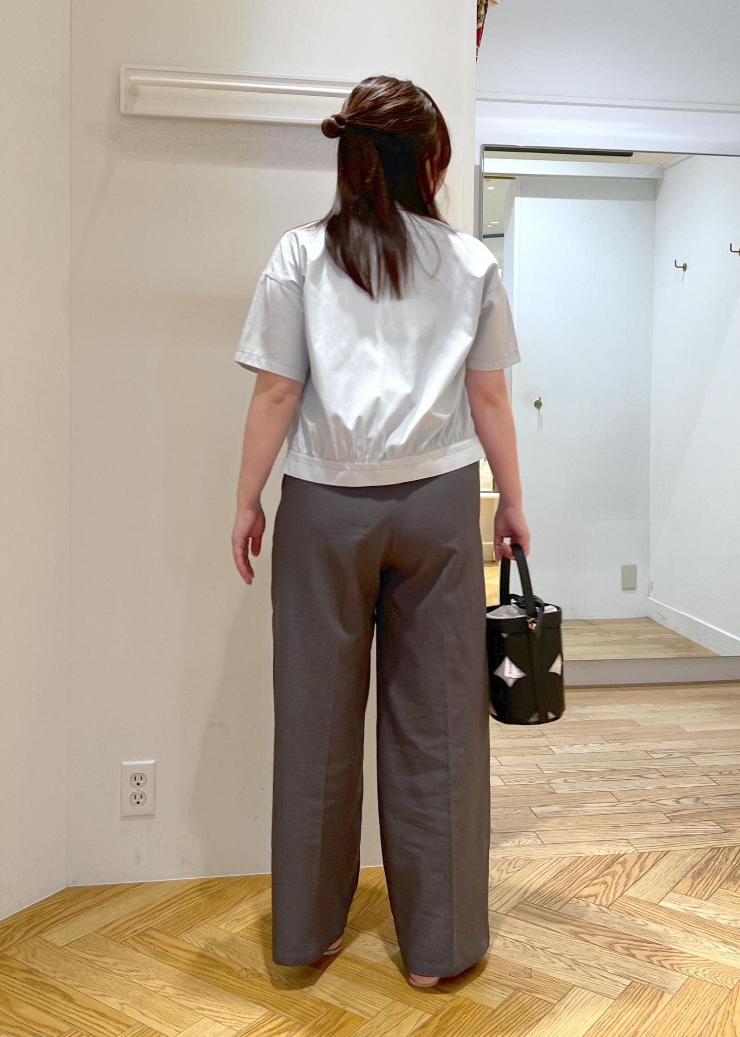 前開きで着ていますが、裾がカフスシルエットになっているので、ウエスト周りがすっきりして見えるので閉じてきてもオススメです。