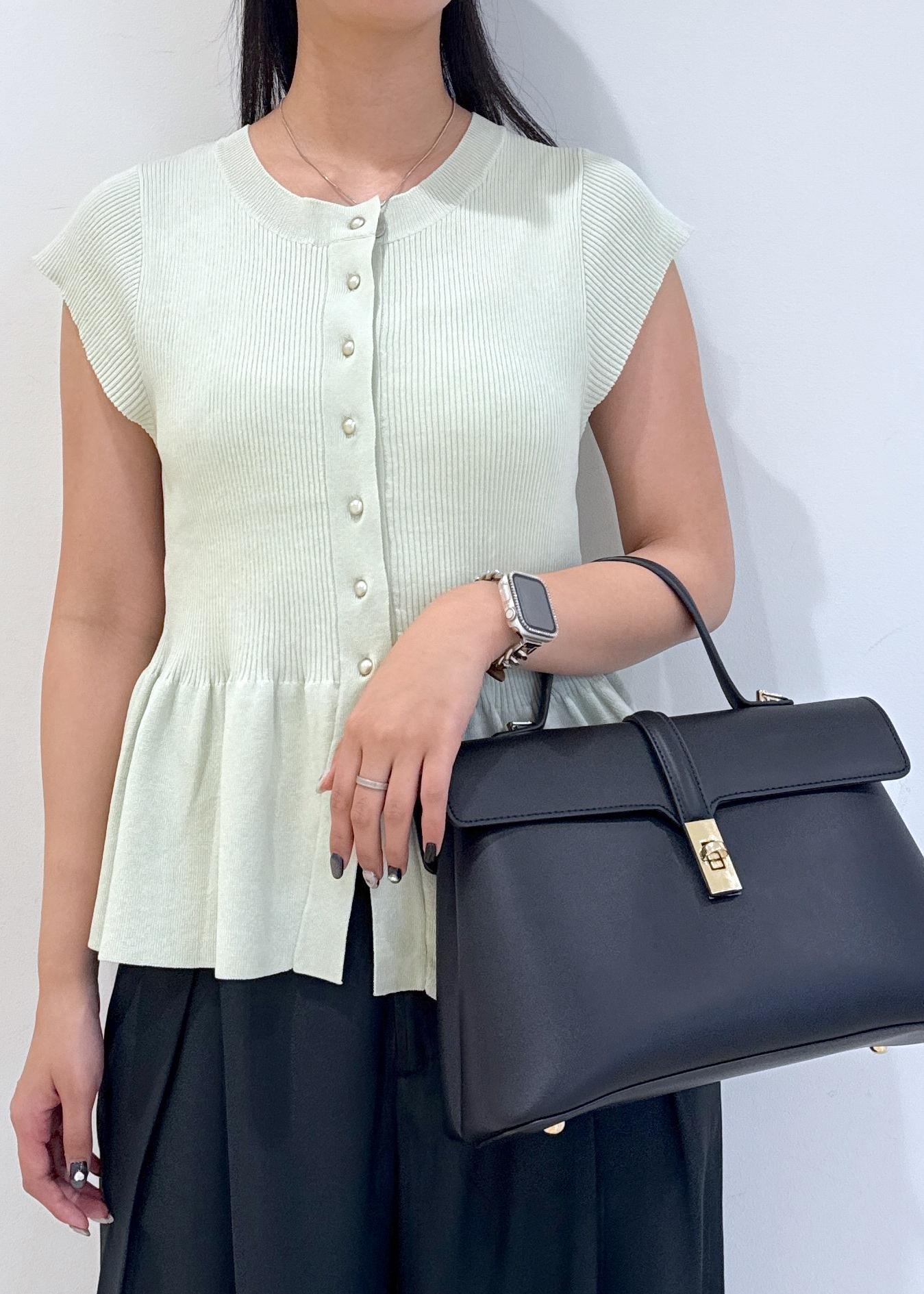 気になるおしり周りや骨盤は、ペプラムシルエットなので隠してくれます。フレンチスリーブなので、二の腕カバーも◎ -