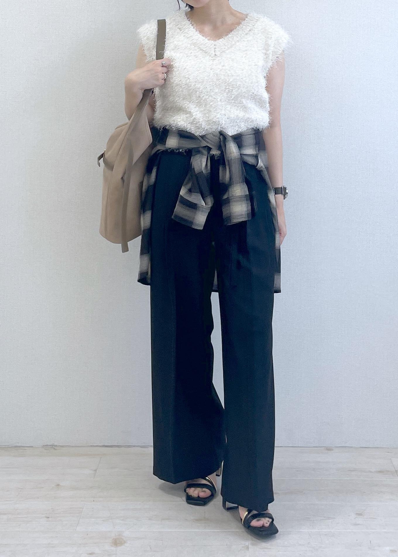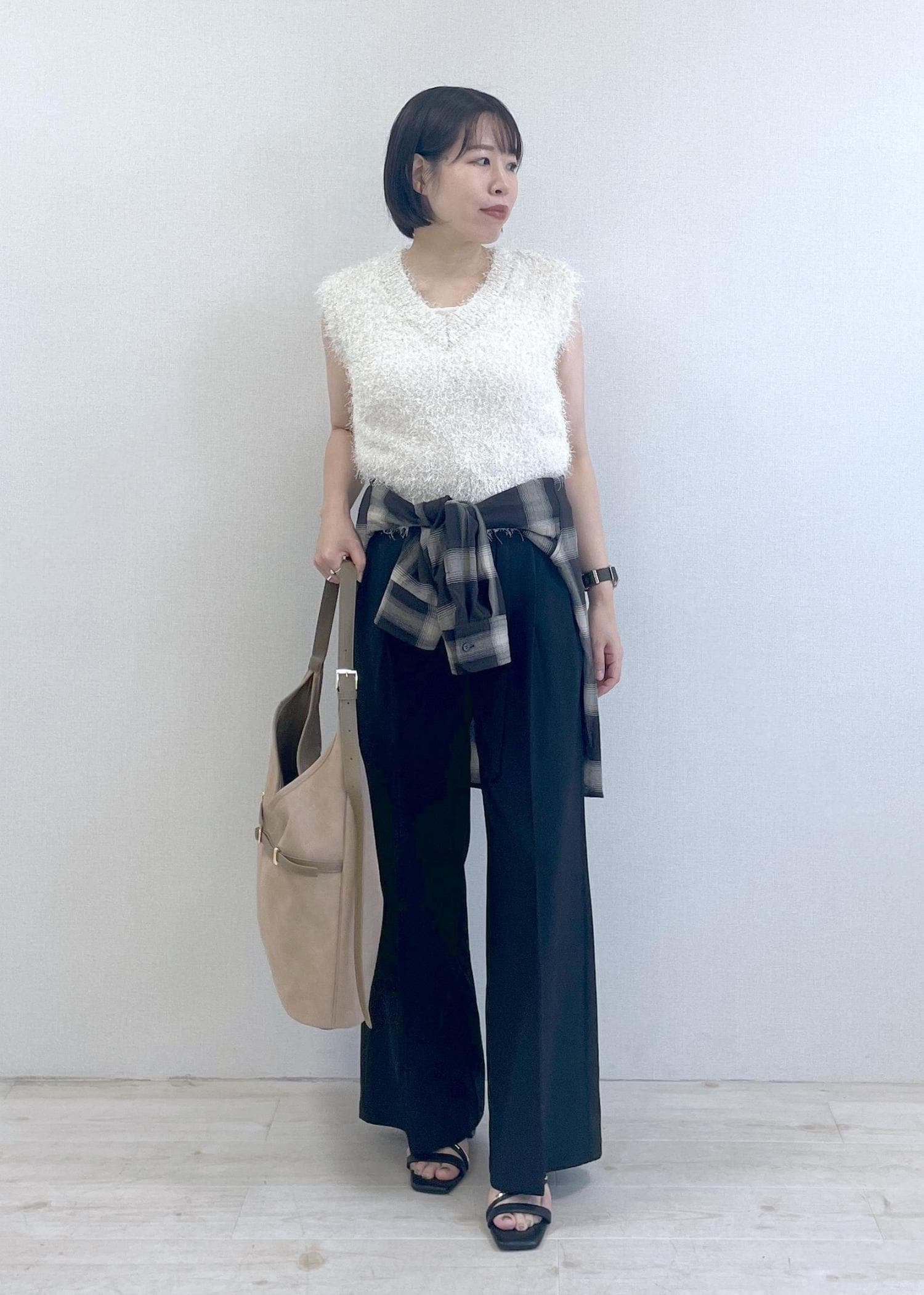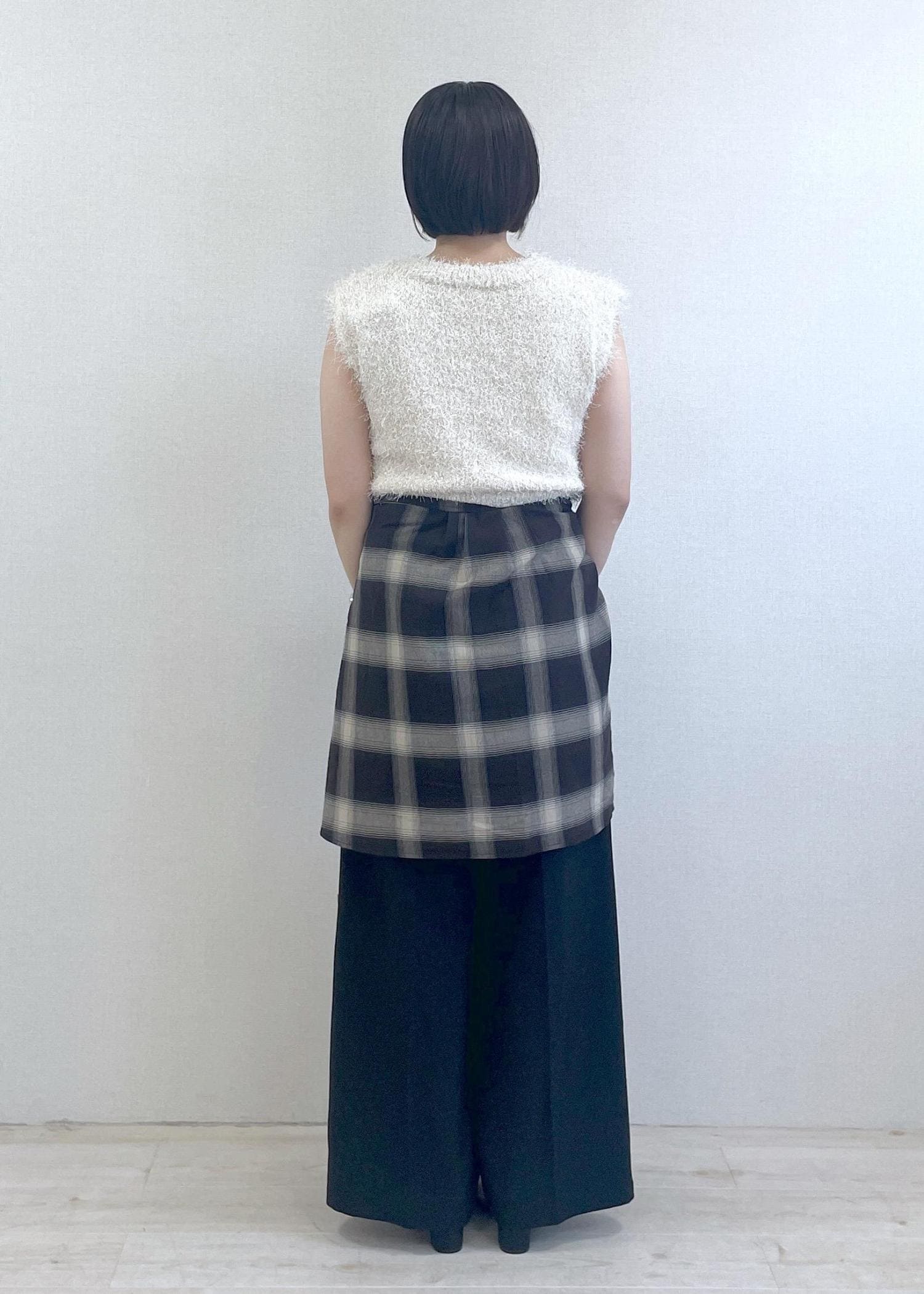前が短く、後ろが長めのシルエットで、サイドのスリットが深めに入っているので、前だけインスタイルにしてもバランスよく決まります。