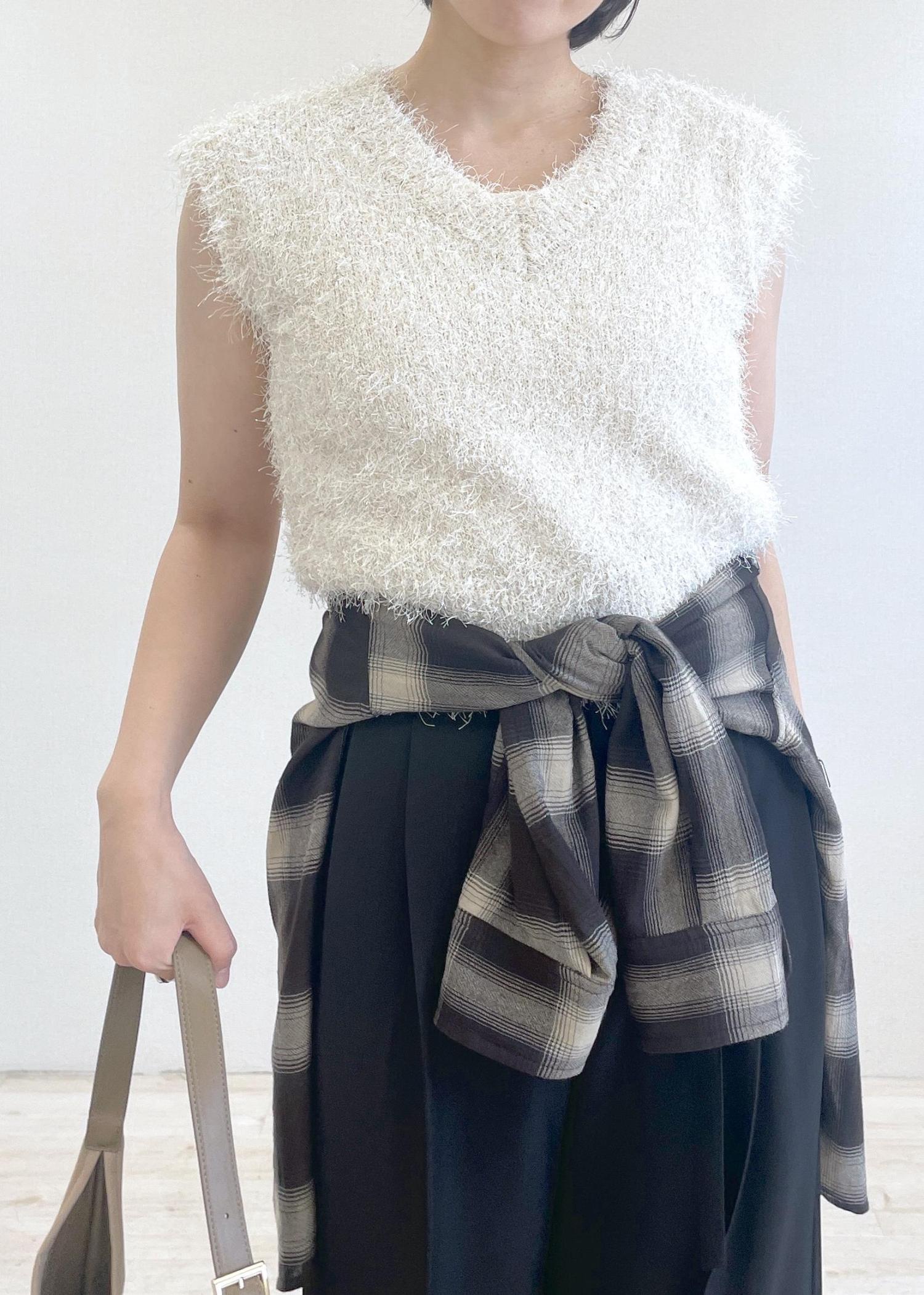 VIS【WEB限定サイズ:MT/着丈が選べる】【洗える】フェザーヤーンニットベストキナリ / M¥3,293レビュー毛足が長く、ラメ感があり、1枚で着映えするトップスです。