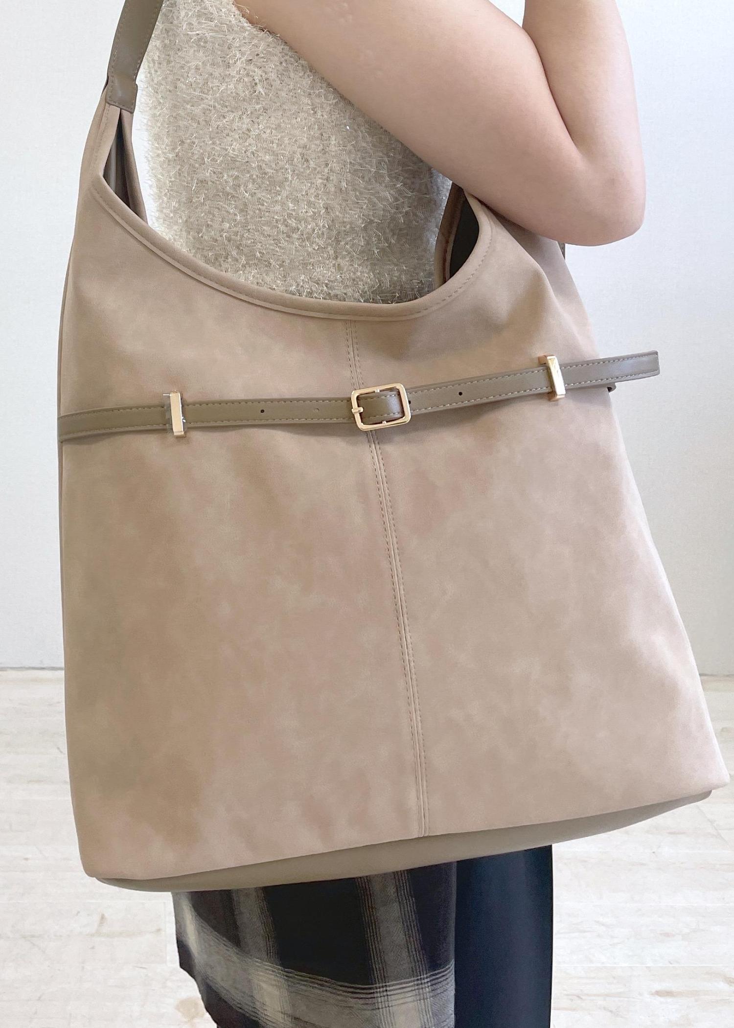 VIS【A4収納】フロントベルトソフトショルダーバッグベージュ系 / F¥5,535レビュー大容量で、A4サイズも入るオンオフ使えるバッグです。