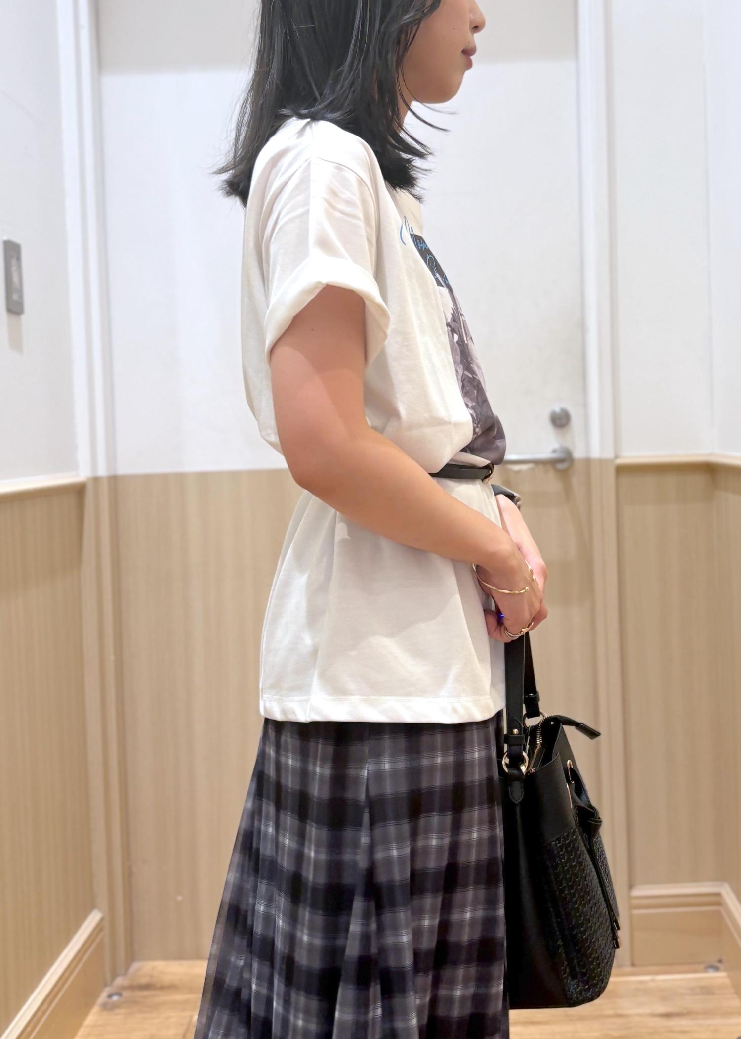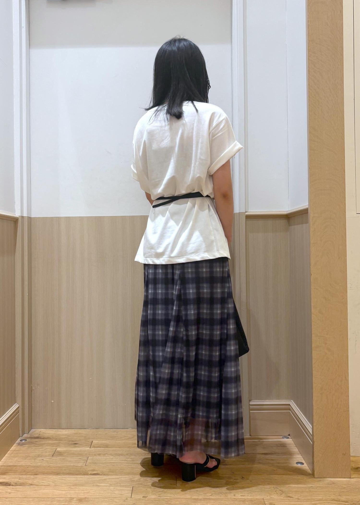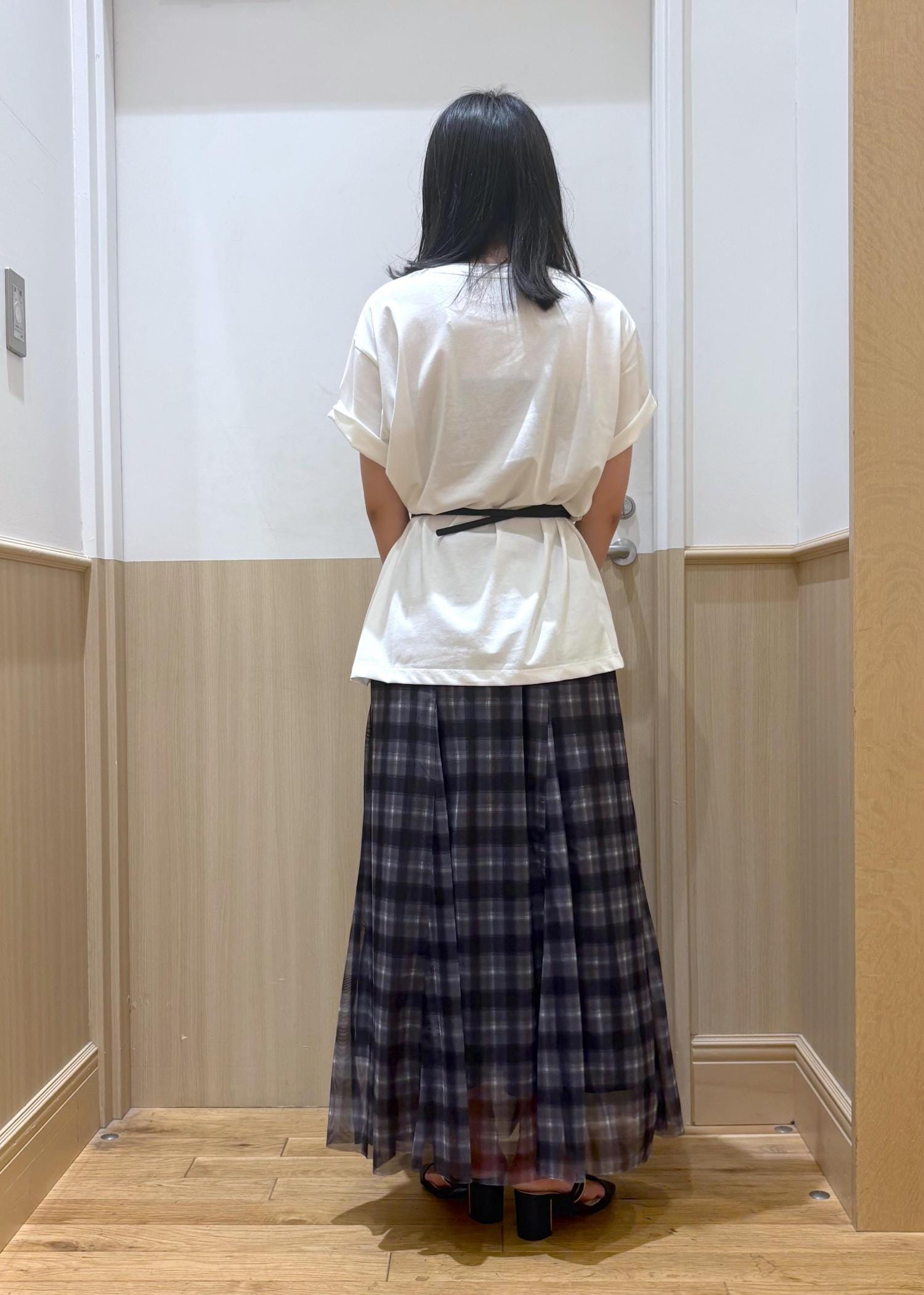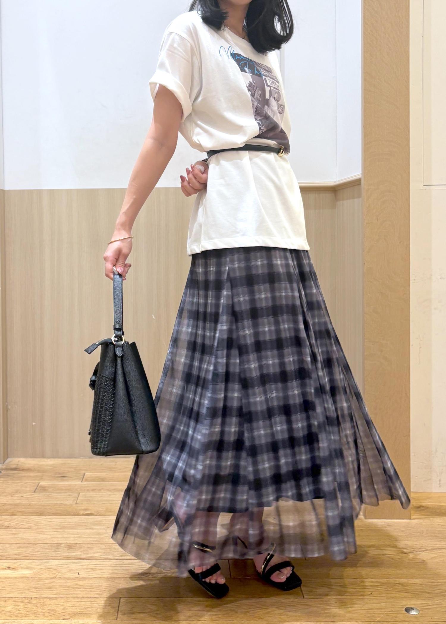 VIS【洗える】チュールプリントチェックスカートブラック系 / F¥4,612レビュー156センチでインナーが足首しっかり見えるくらいで、外側のチュールはくるぶし下くらいの丈感です。