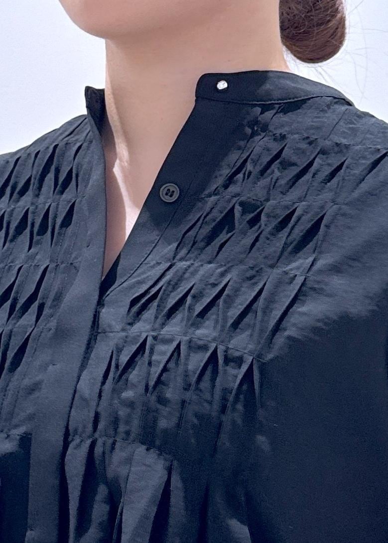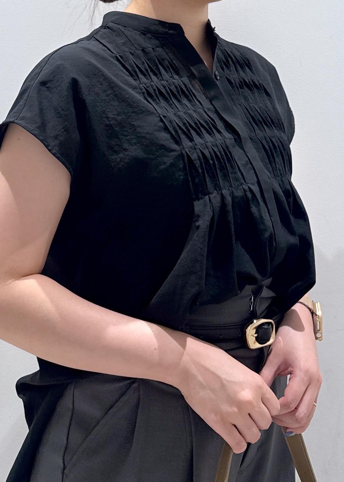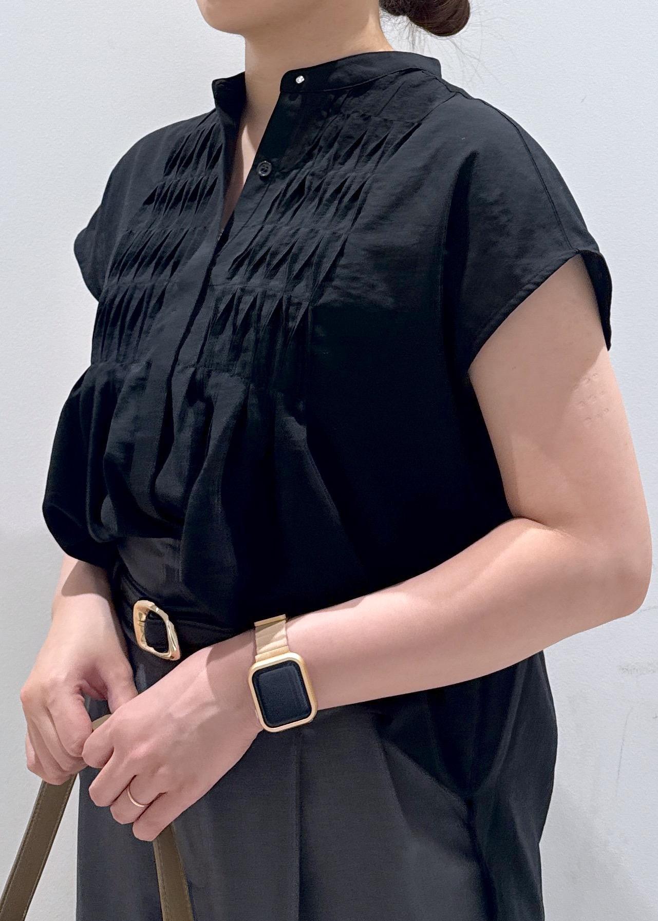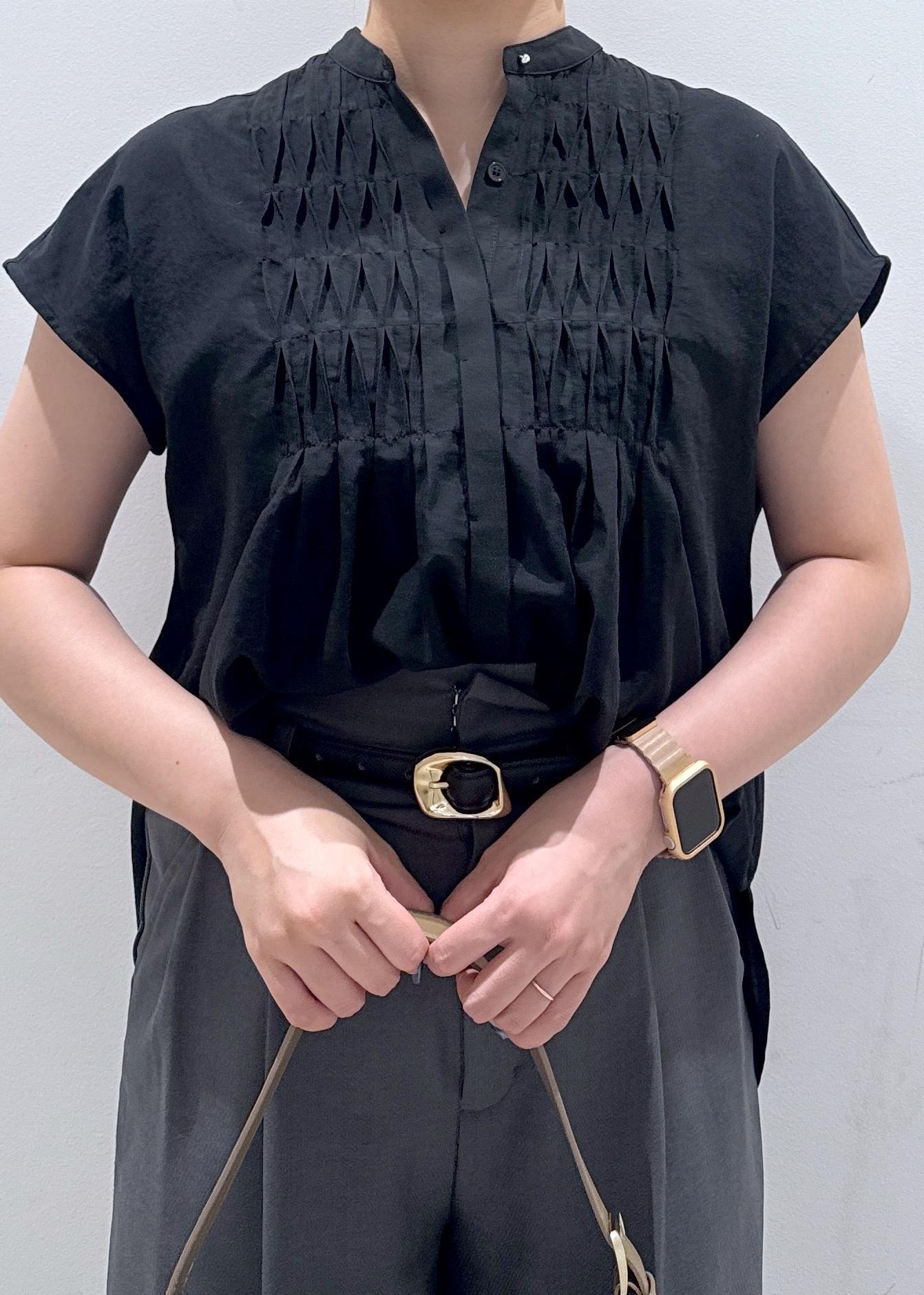 今回はオフィスなどでも着れるベーシックなブラックコーデにしてみました。骨格ストレートなので首が詰まっているのと、肩幅が大きく見えがちで諦めてる骨ストさんに、第二ボタンまで開けて着ると首元が抜け感がでるのでオススメです!