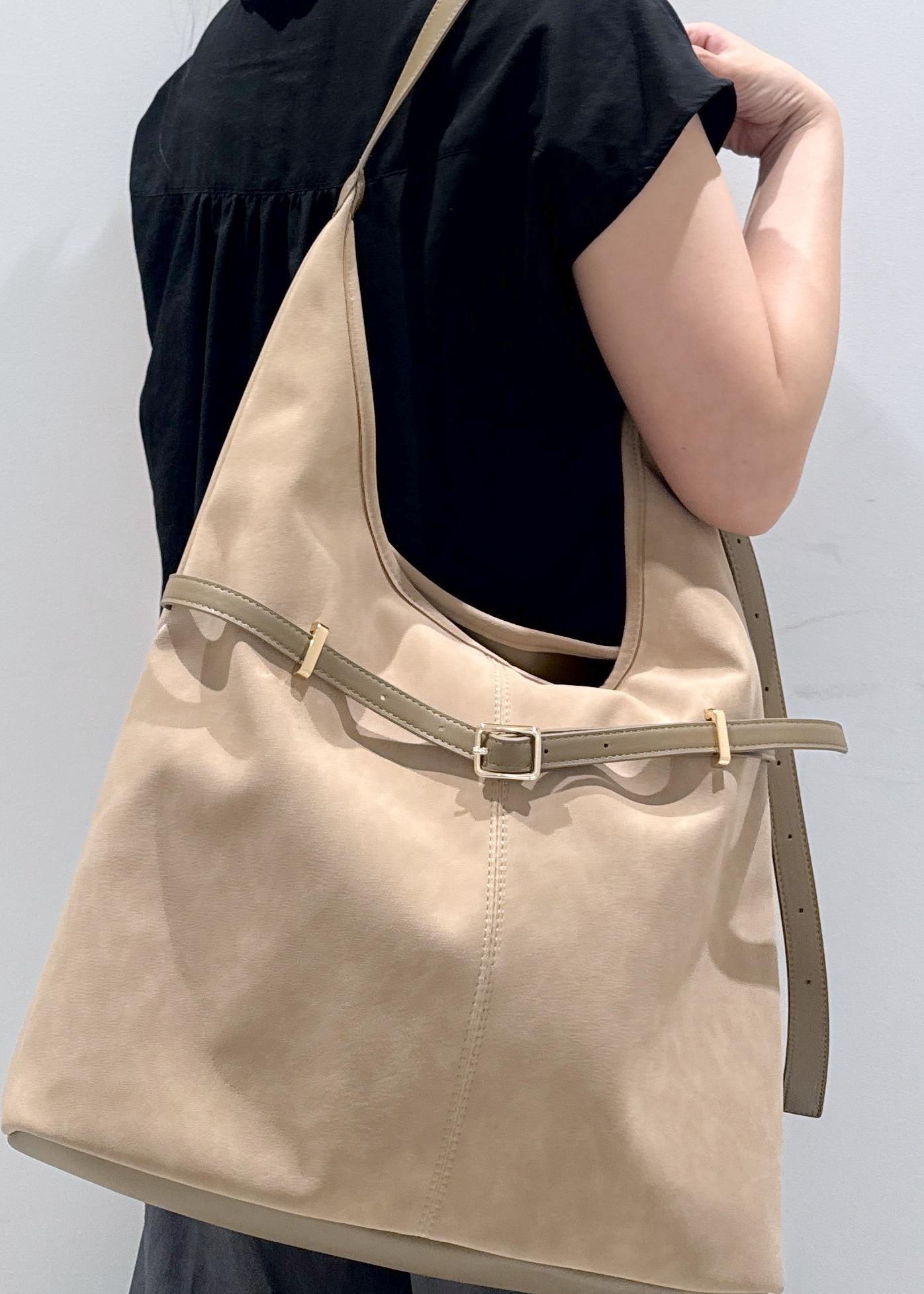 VIS【A4収納】フロントベルトソフトショルダーバッグベージュ系 / F¥5,535レビュー2025年のトレンドであるボーホーバッグ⭐︎2wayでな斜めがけのショルダーとしてもどちらでも使用可能◎