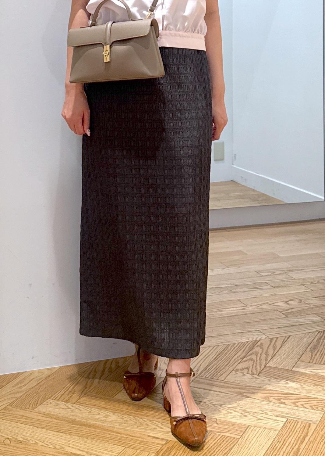 膨れジャガードデザインがおしゃれ見えするナロースカートです。