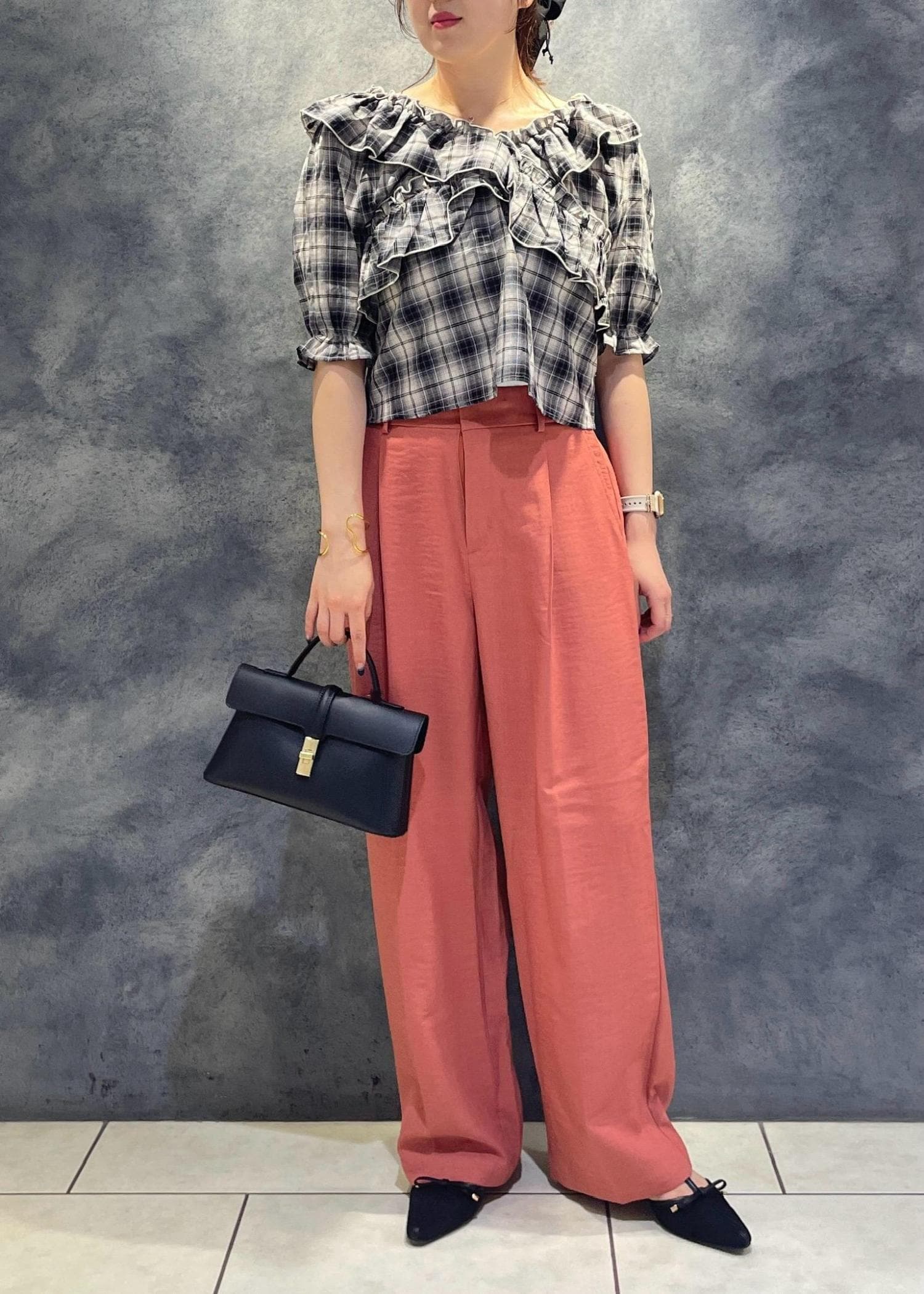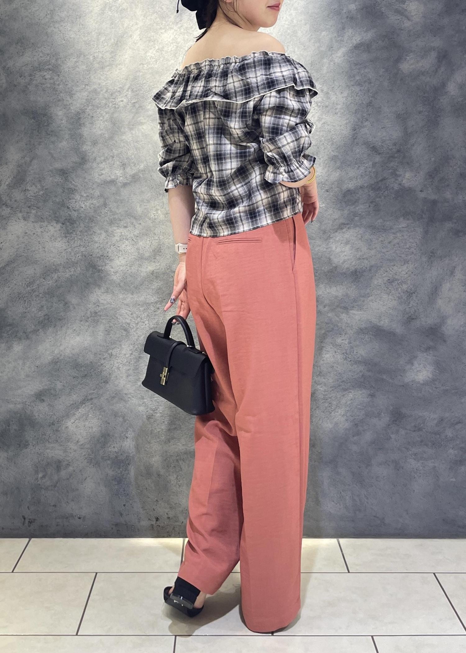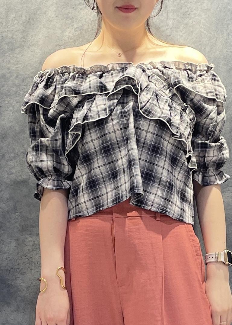 VIS【2WAY】フリルチェックオフショルブラウスダークブラウン系 / F¥6,589レビュー短めの丈感なので