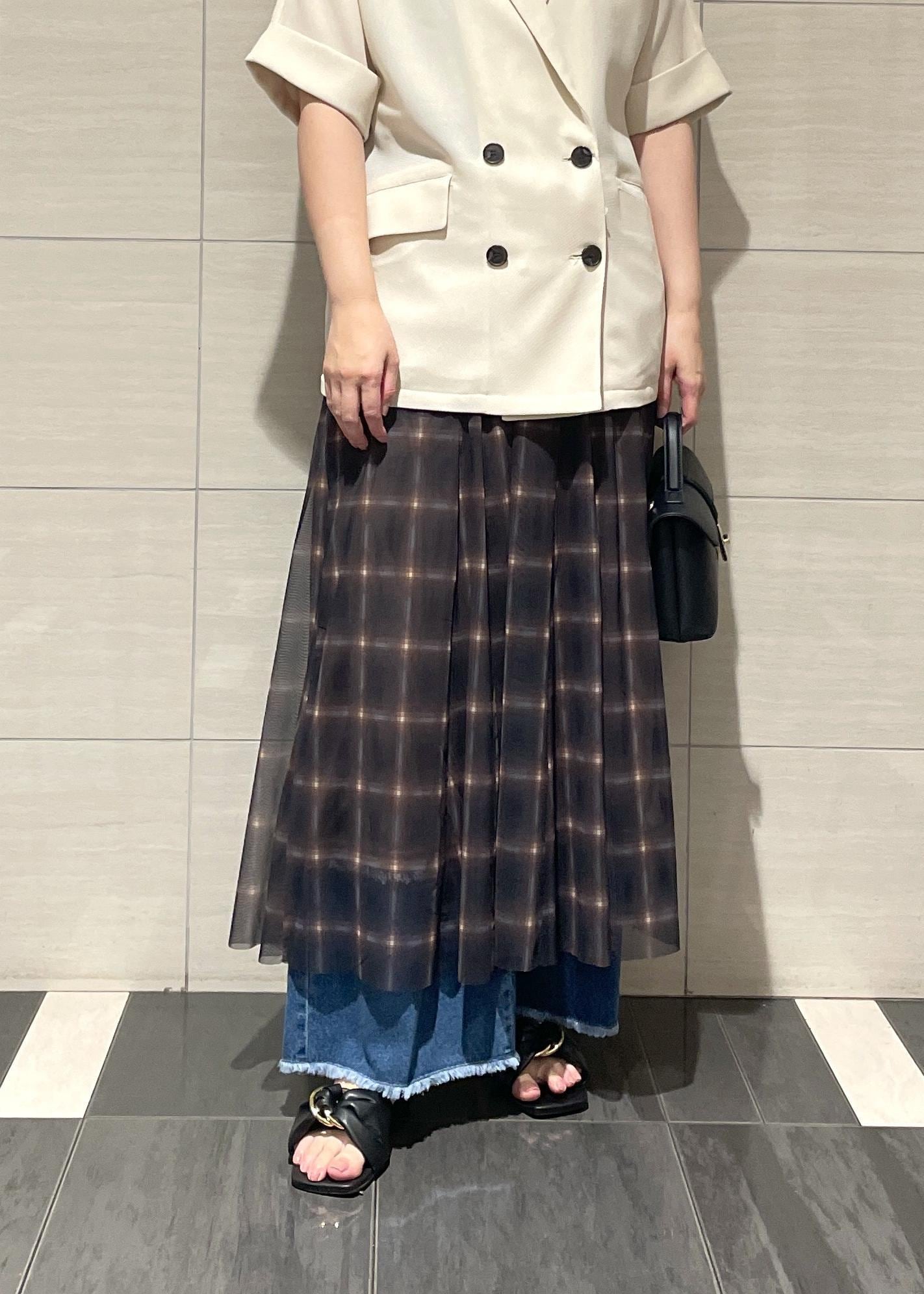 VIS【洗える】チュールプリントチェックスカートダークブラウン系 / F¥4,612レビュー後ろがゴムになっており柔らかいゴムなので締め付け感がなく楽に履いていただけます。