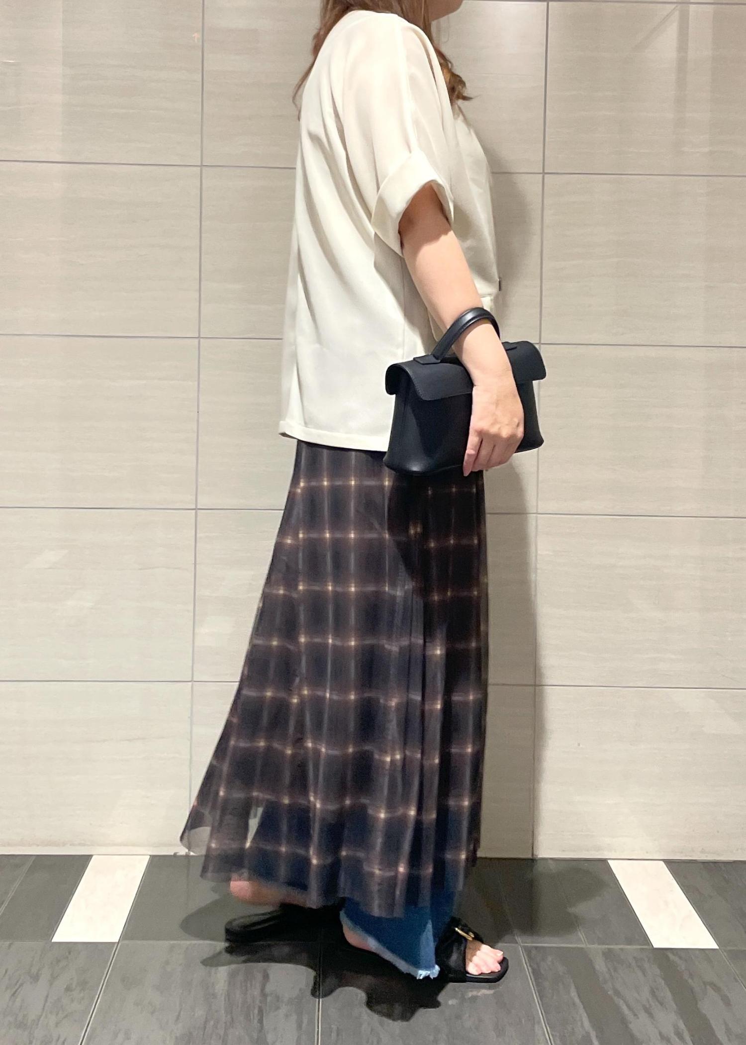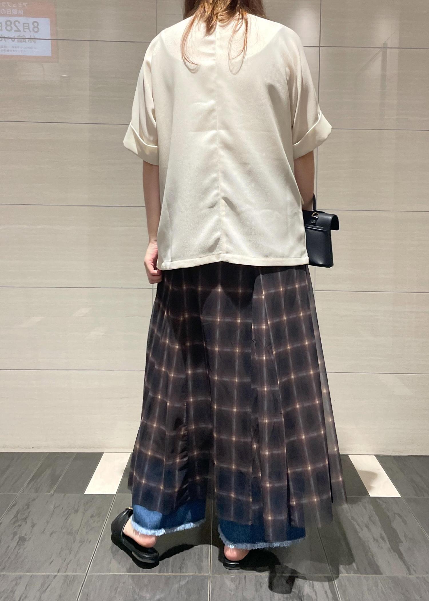 落ち感がある素材で縦切替になっているので広がりすぎずスッキリ見えします◎ -