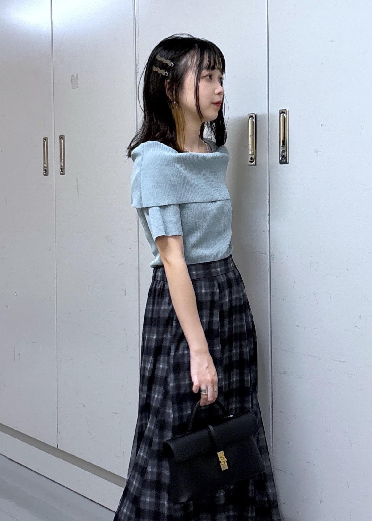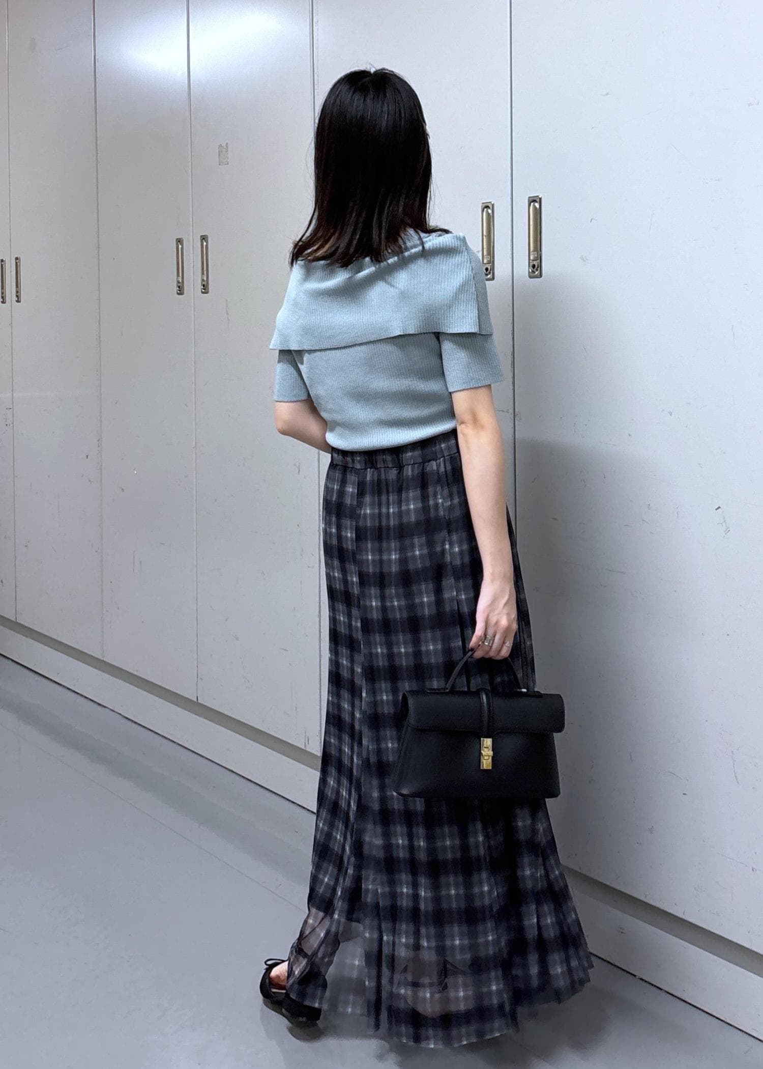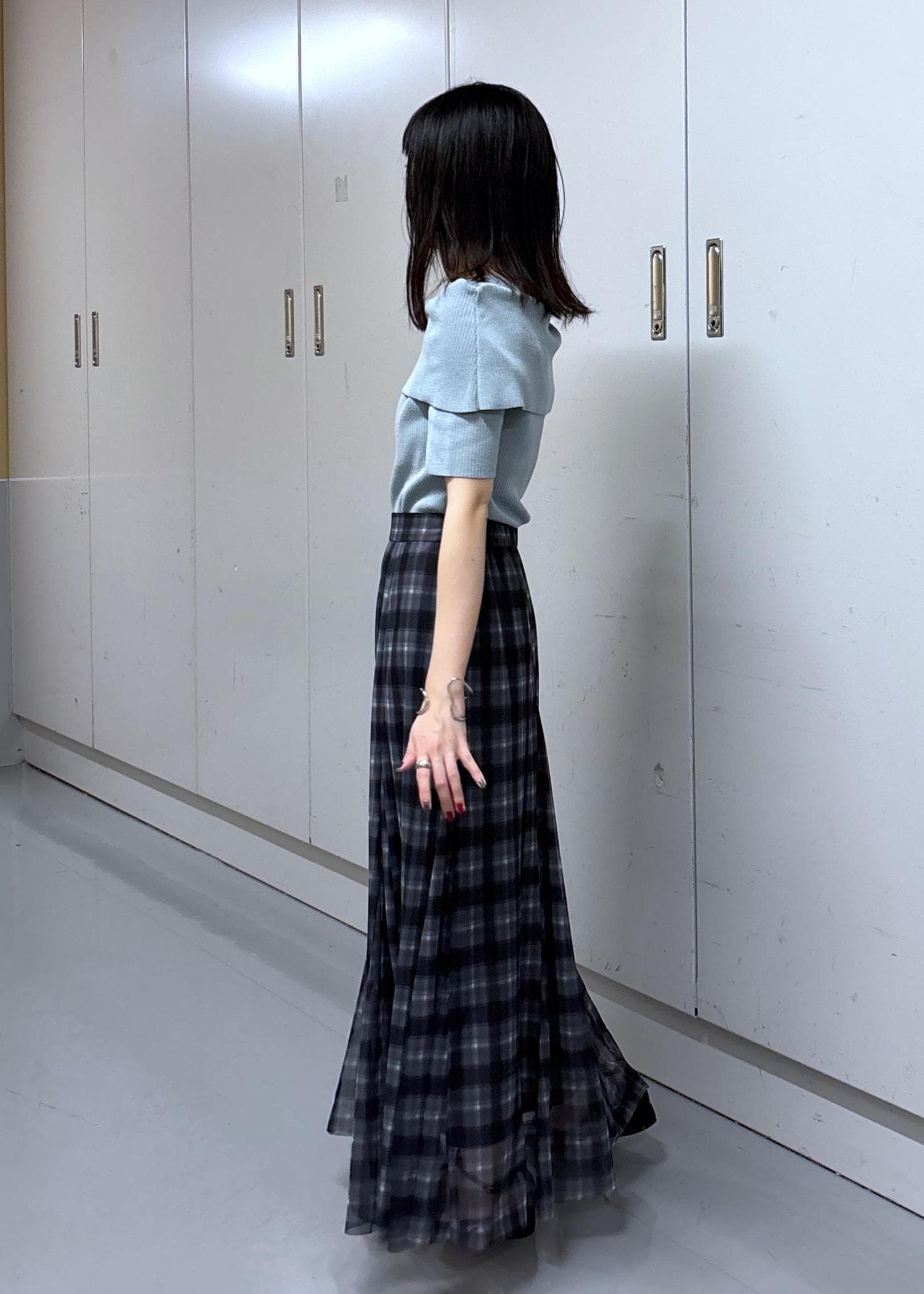 チェックシアースカートは、ブラック系を選んで甘すぎない印象にまとめました!