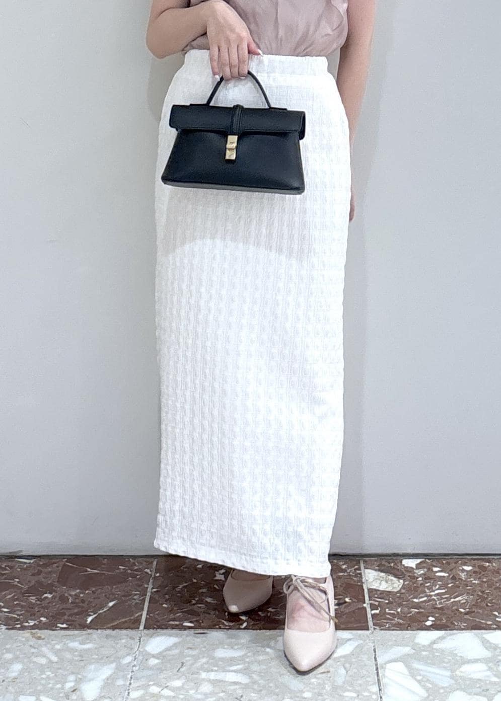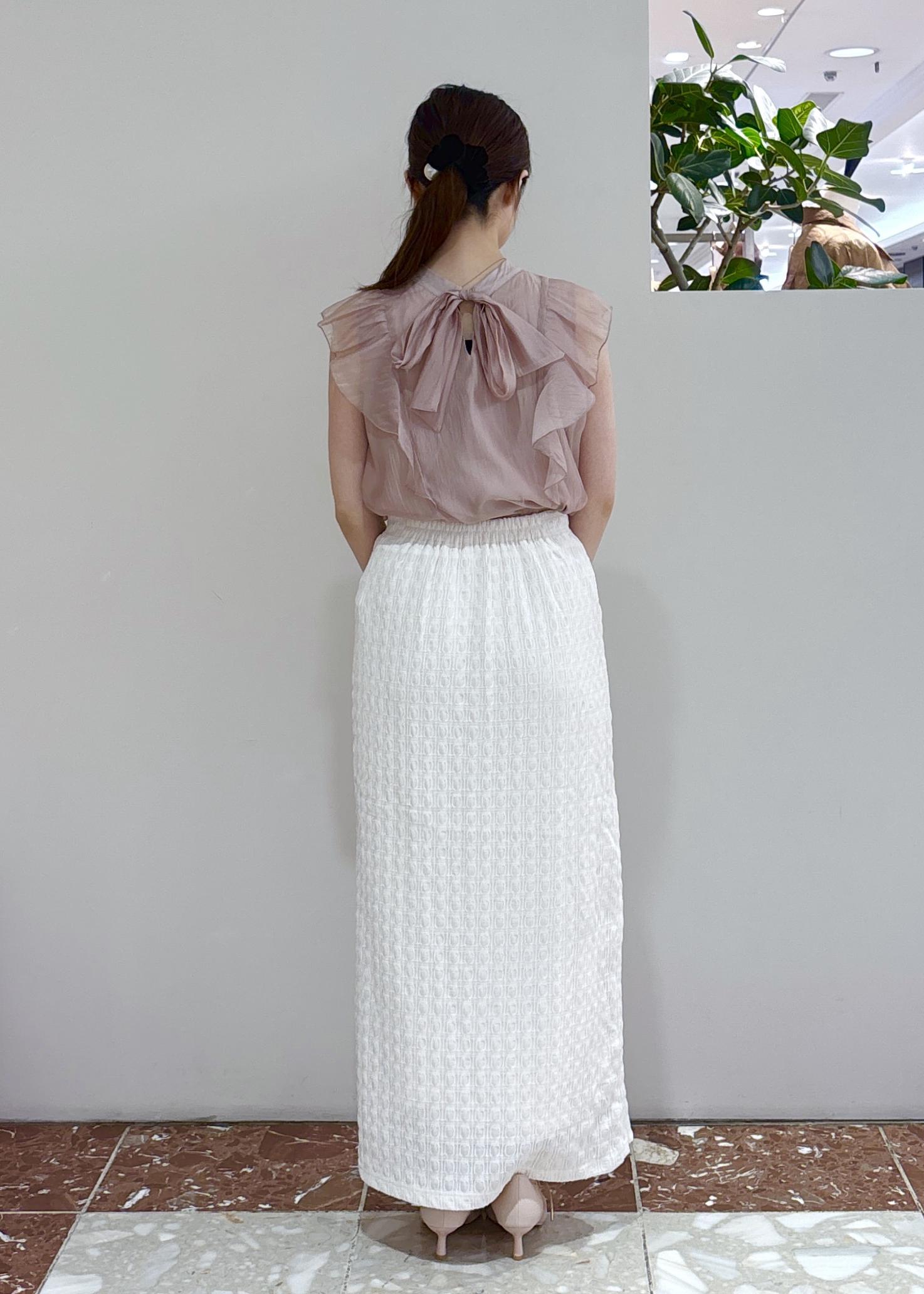 アウトレットVIS【新色追加】【接触冷感】膨れジャガードナロースカートオフホワイト / F¥3,293レビュー158cmでちょうど足首位の丈感。ウエストはゴムが入っているので動きやすく締め付け感ないです◎