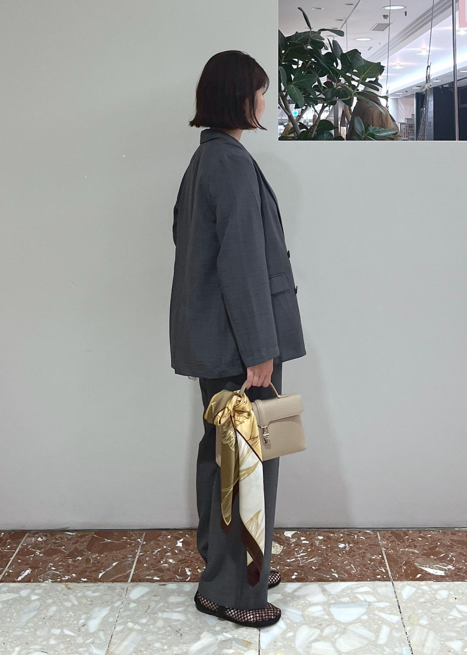ダブルボタンなのでボトムをデニムに合わせなどカジュアルなスタイリングでも合わせやすい。