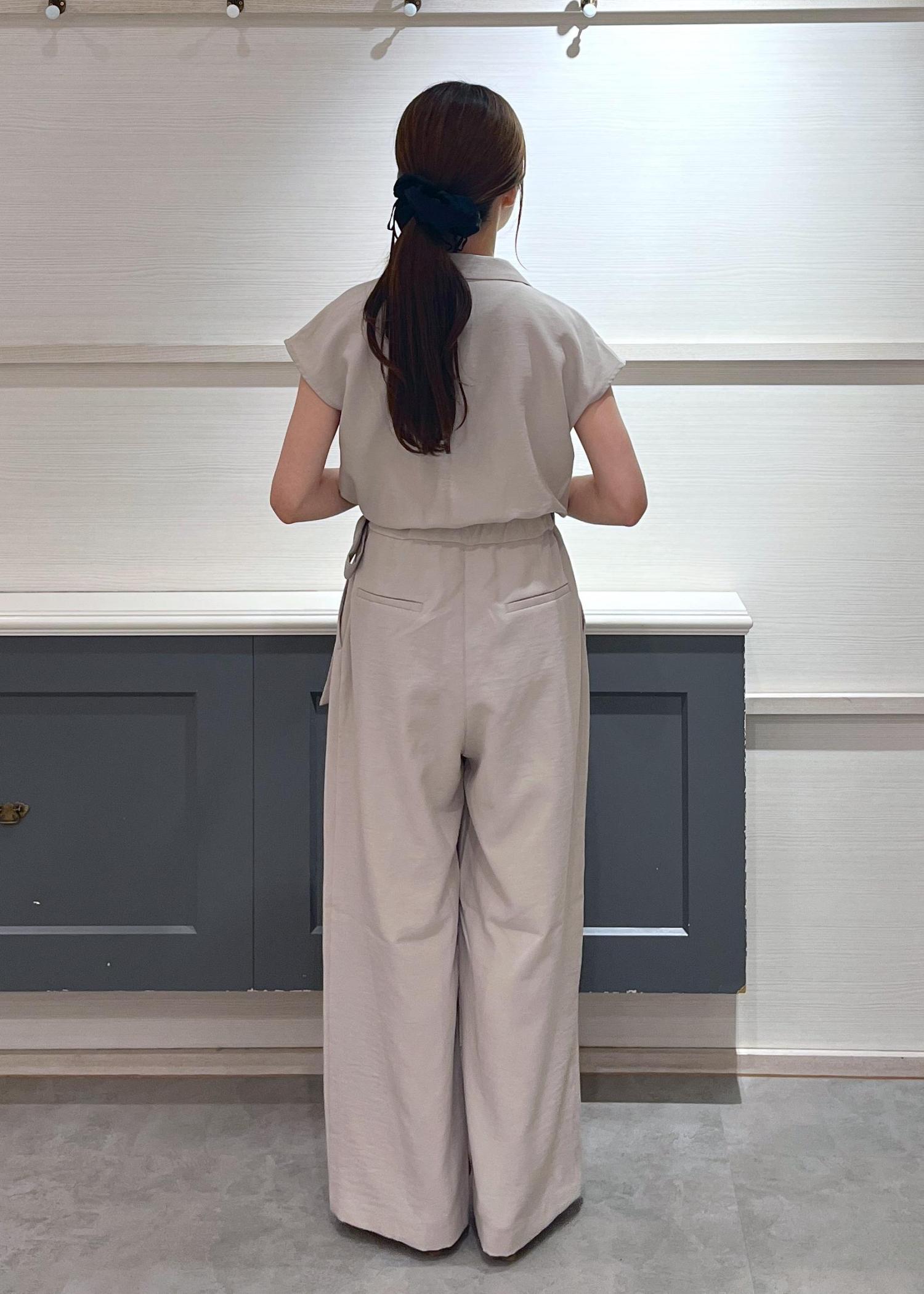 カッコいいオールインワンですが、ブラウン系で合わせることで女性らしいコーディネートになります◎