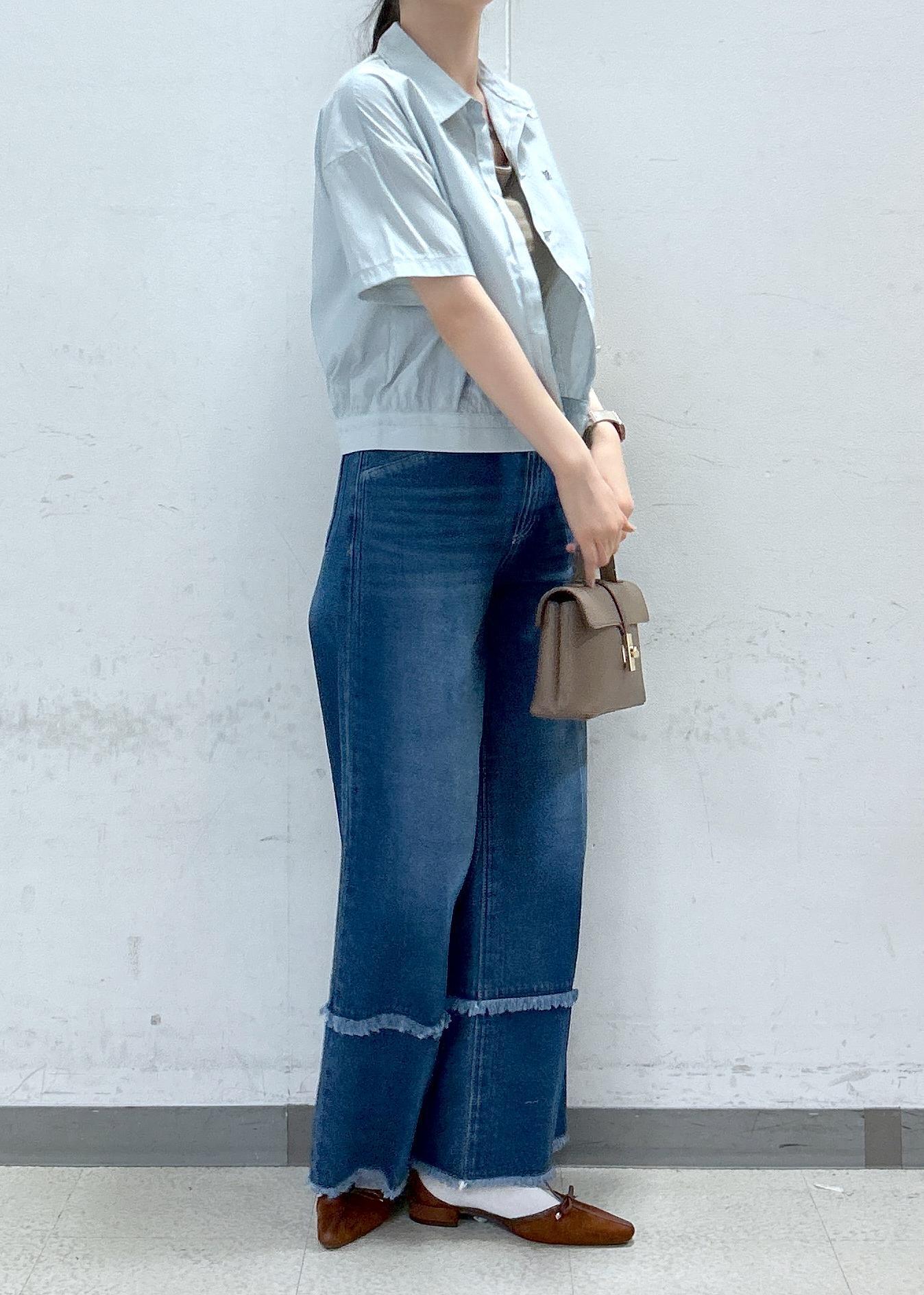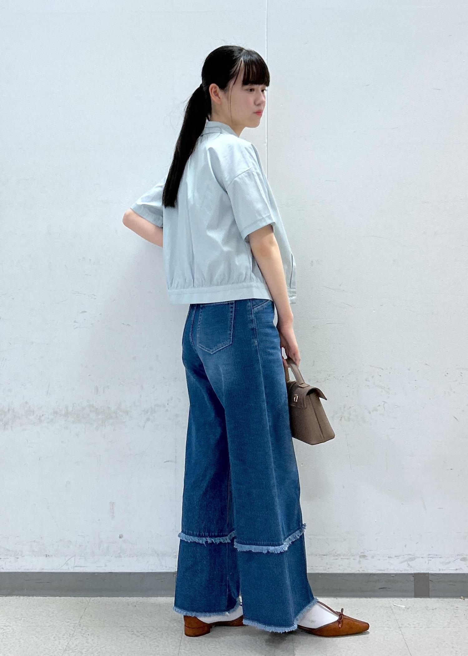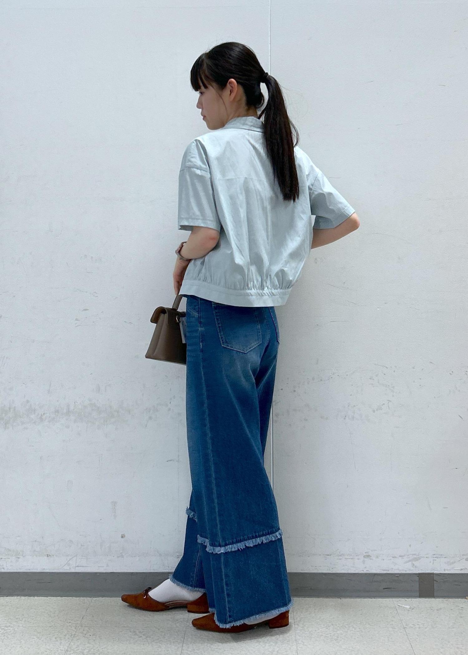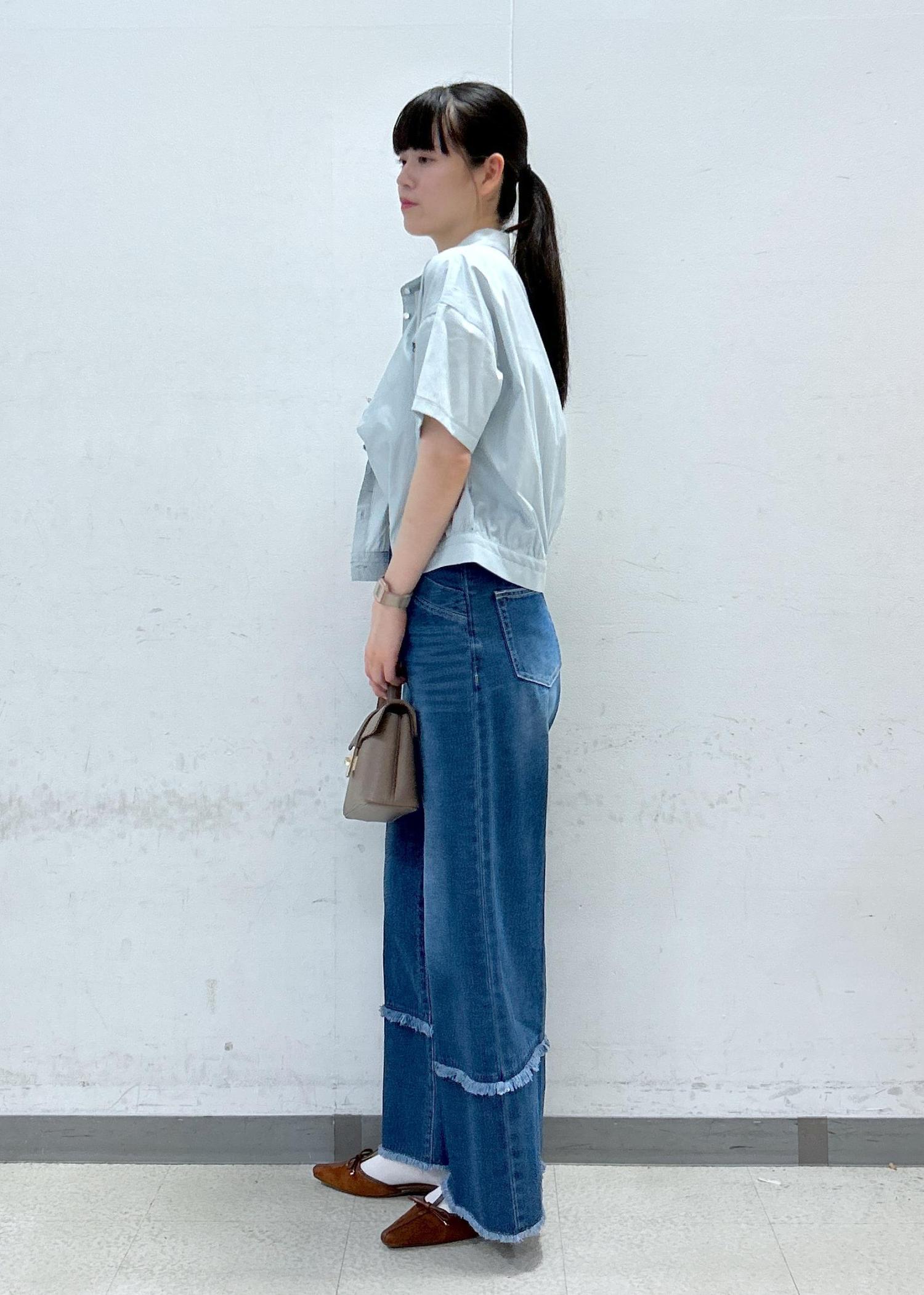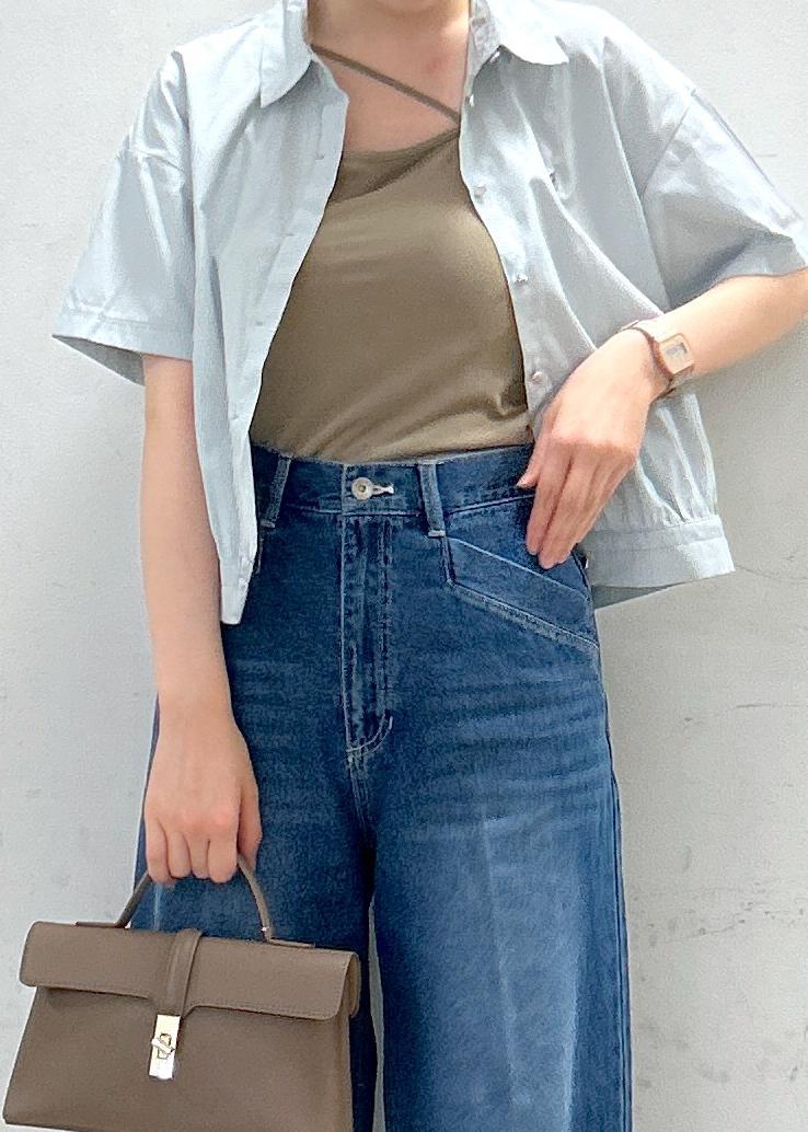 アウトレットVIS刺繍ロゴハーフスリーブシャツライトグリーン / F¥3,457レビュー薄手で軽く、スベスベな肌触りなので着ていて気持ちいいです。羽織としてもシャツとしても着用できますし、裾がキュッと締まったシルエットなのでウエストを細く見せてくれます♡