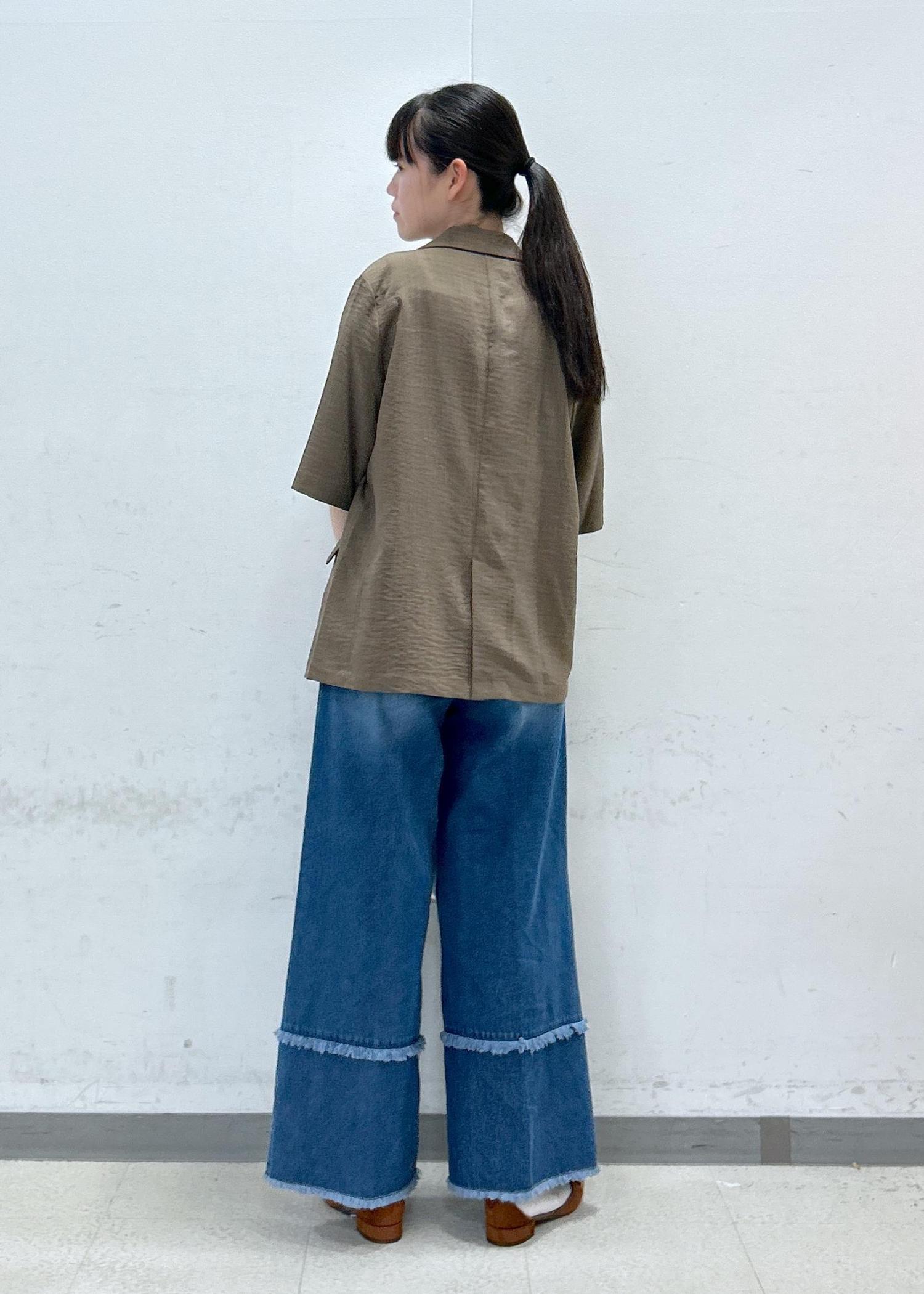VIS【美easy】ハーフスリーブジャケット/セットアップ対応・洗えるカーキ系 / M¥7,909レビュー身長166cmで丈感は足の付け根あたりです。