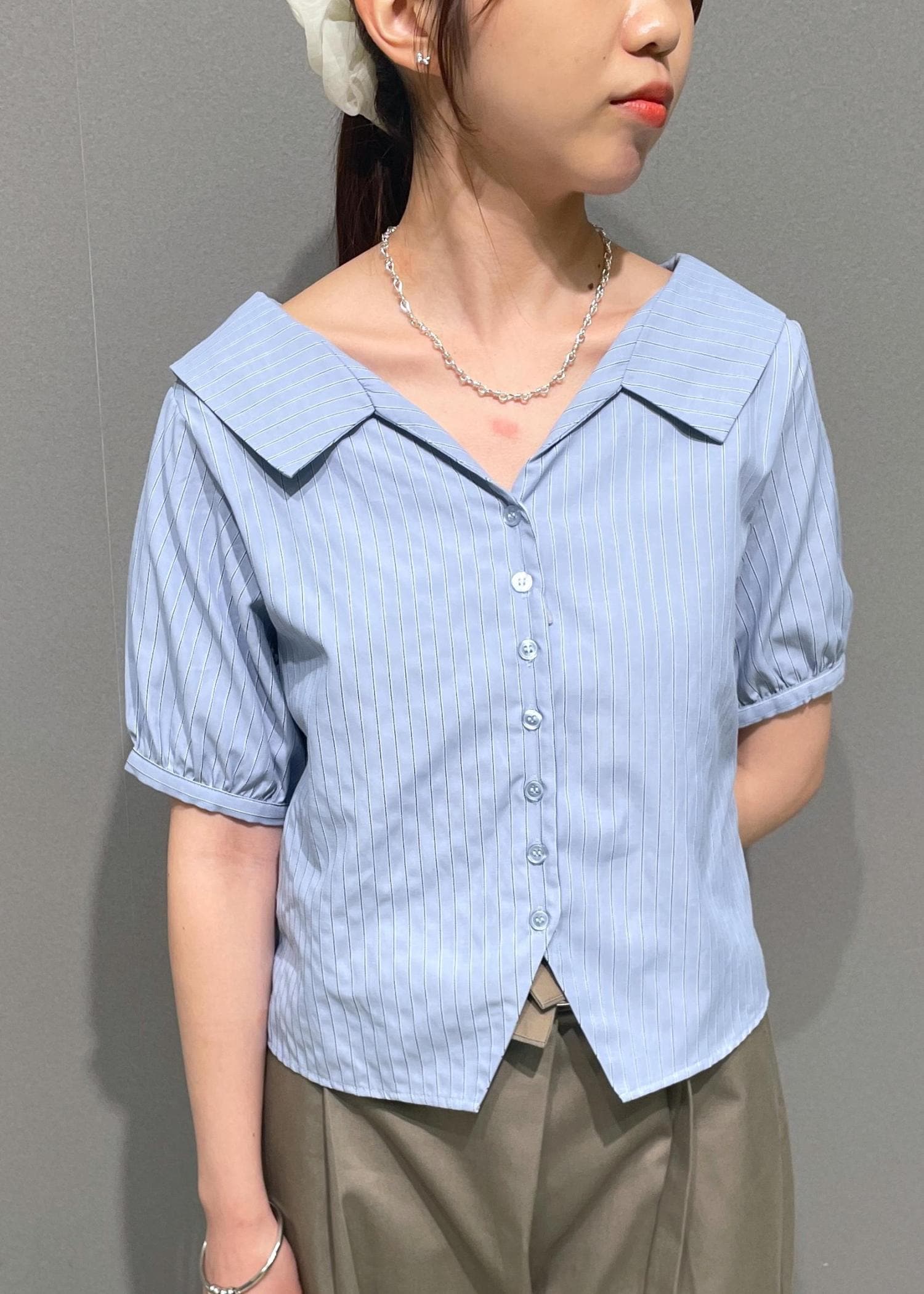 VISビックカラーシャツブラウスブルー / F¥3,953レビュービッグカラーが小顔効果にもなるブラウスです!