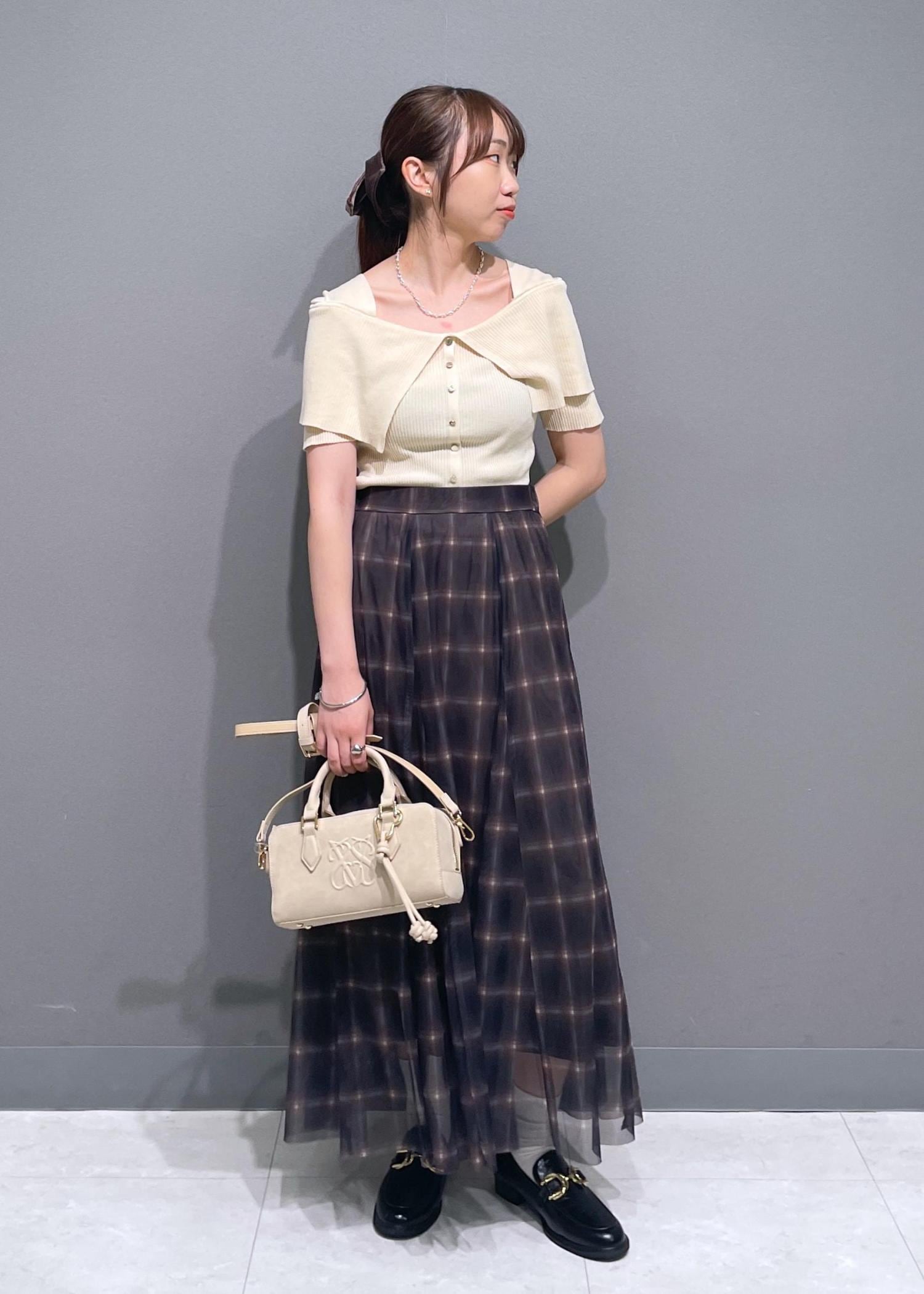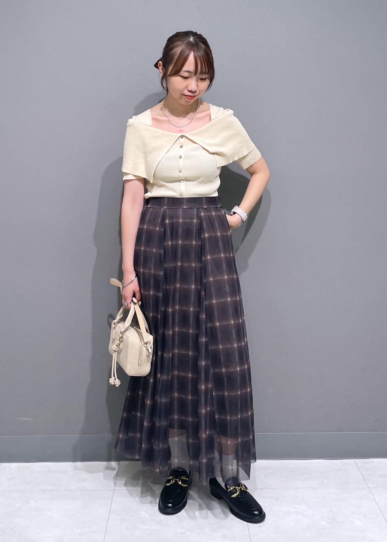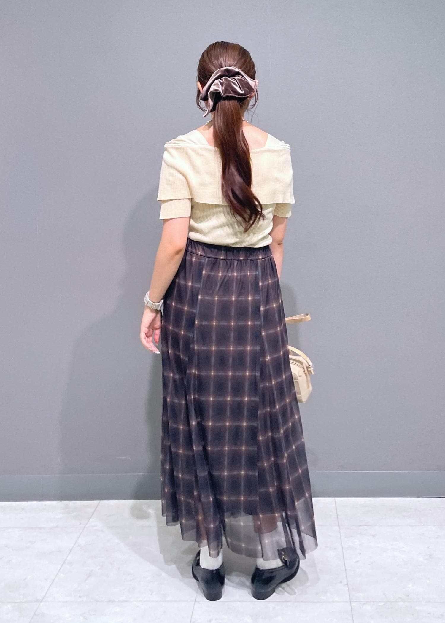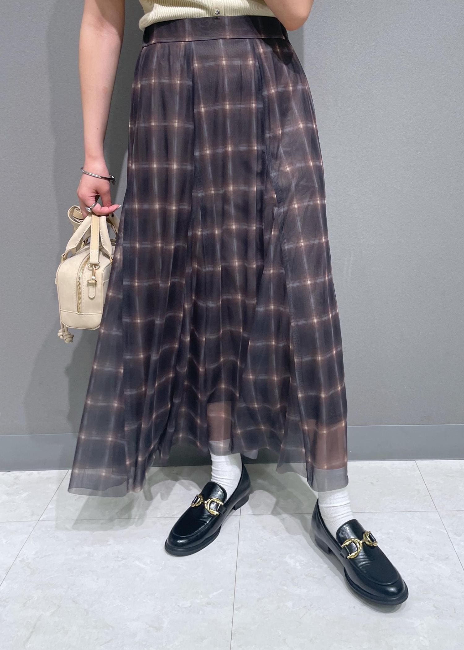 VIS【洗える】チュールプリントチェックスカートダークブラウン系 / F¥4,612レビューチェック柄が今っぽさを出してくれるチュールスカートです。