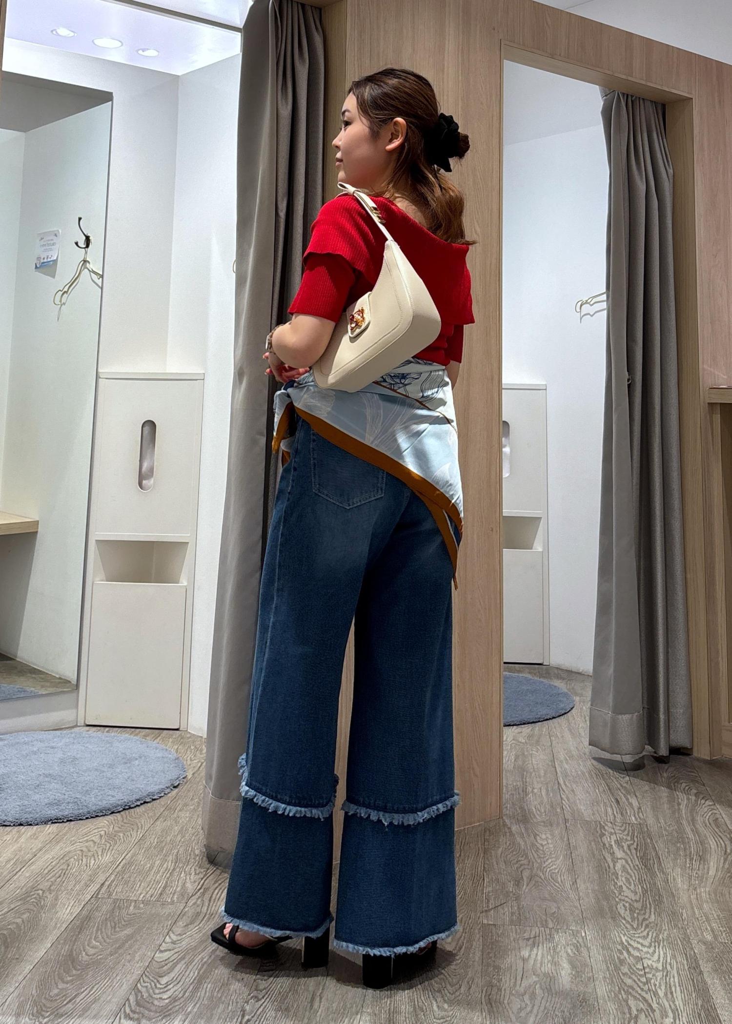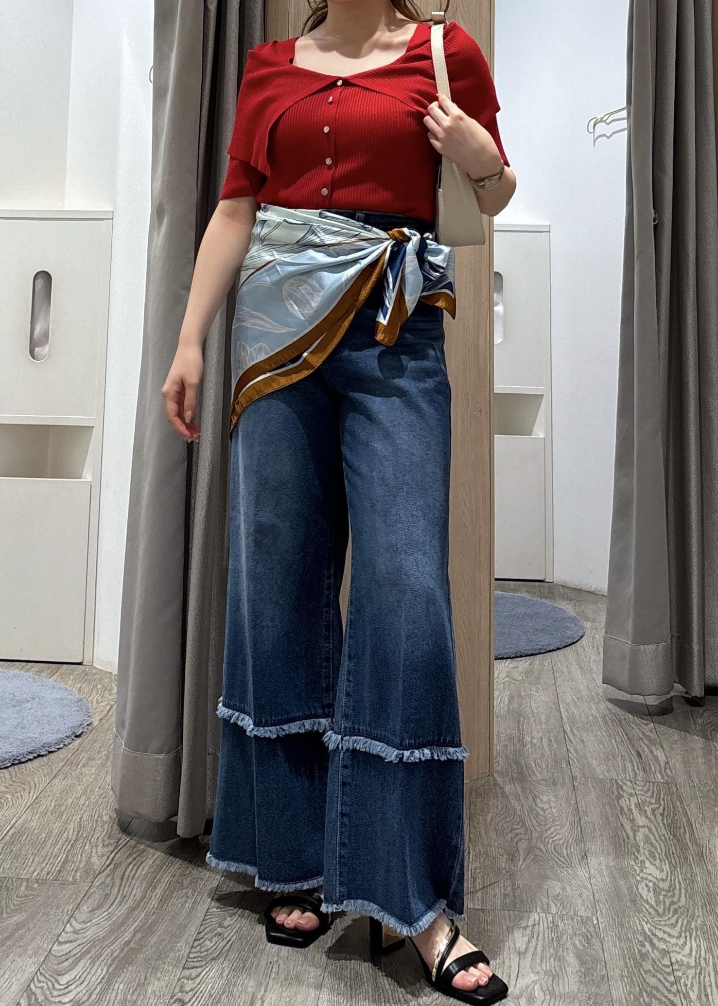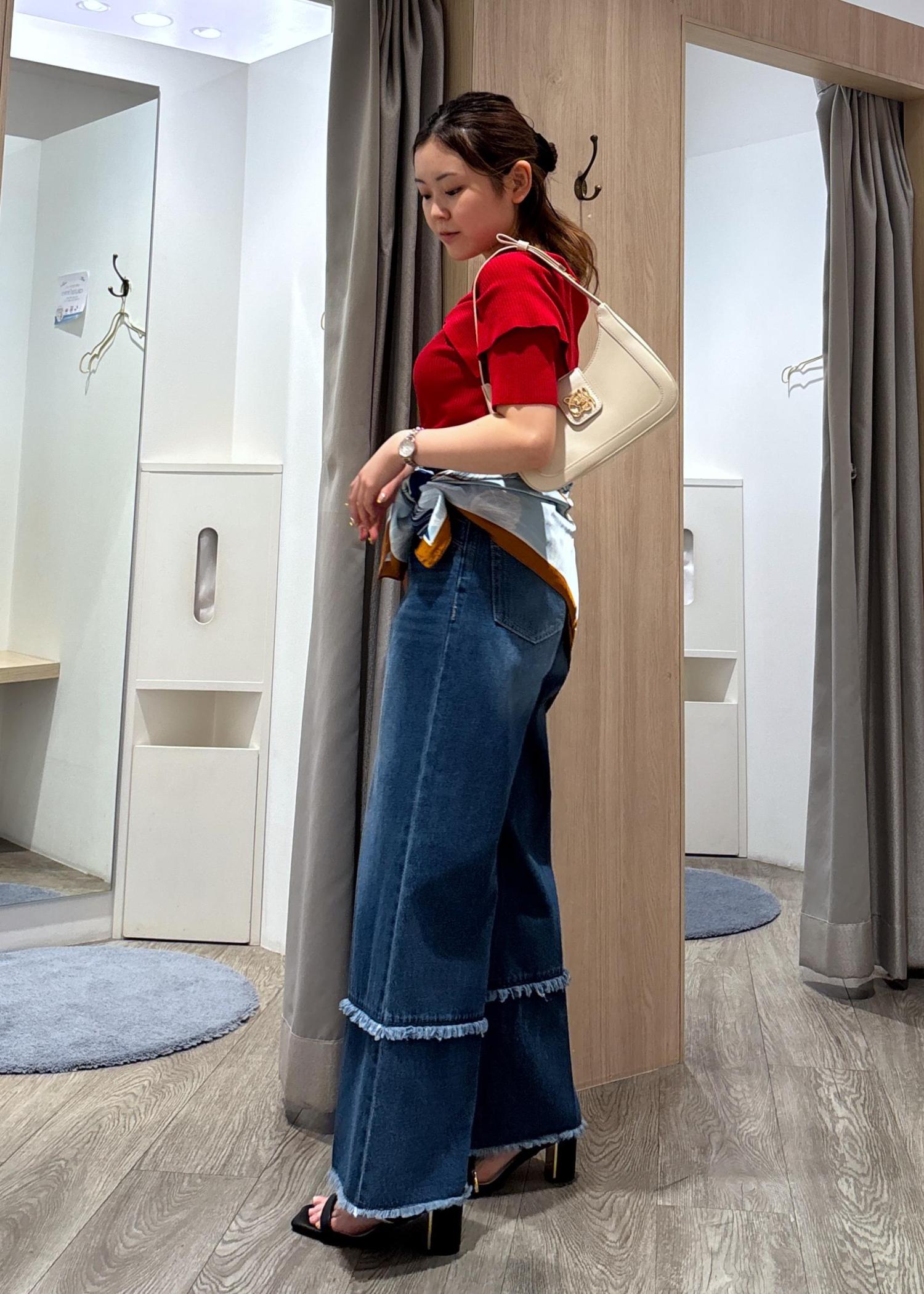 VISフリンジフレアデニムブルー系 / S¥4,395レビュー身長150センチでsサイズフラットシューズ合わせでも床にギリギリつきませんでした