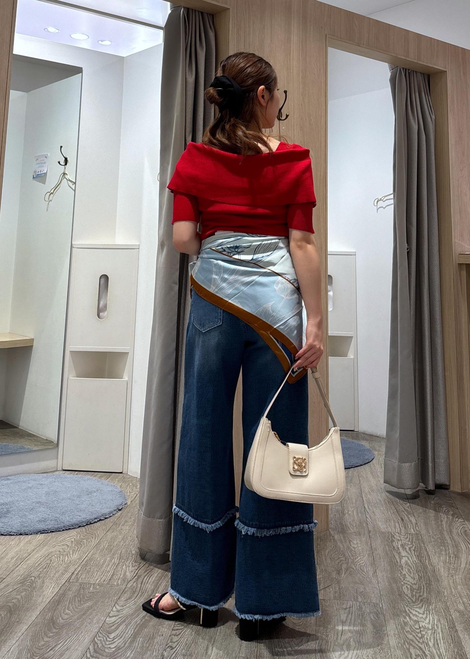 VISビックカラーオフショルハーフスリーブニットレッド / F¥2,963レビュー身長150センチ、お尻まるまる隠れる丈感