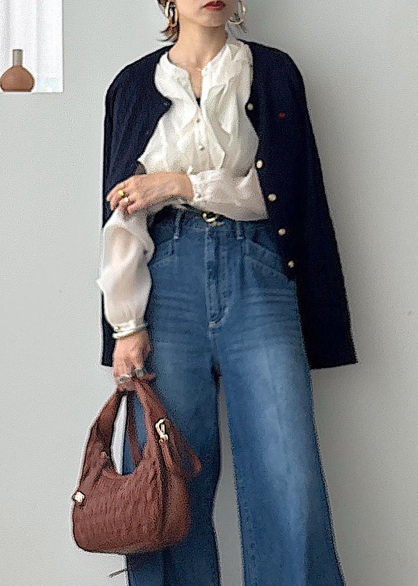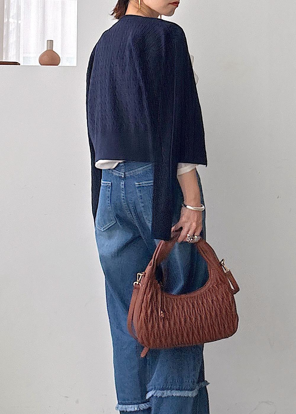 大好評のPOLO BCS | VIS別注アイテムが再び登場です♪前回も即完売したカーディガン、厚過ぎない生地感が季節のまたぐこの時期から使えてオススメです。今回はシフォンブラウスとデニムのスタイルに、軽く肩掛けしたスタイルでスッキリまとめました。秋に向けてオススメの大人カジュアルコーデ。