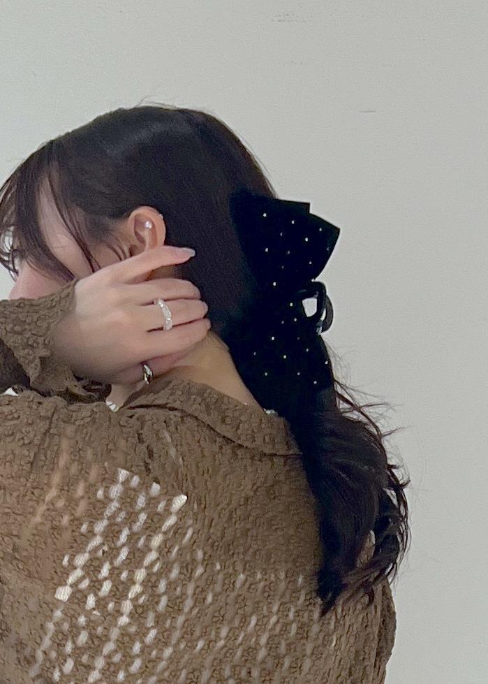 VISキラキラリボンバンスブラック / F¥1,998レビュー大きめのクリップで、私は毛先がとても軽い方ではないのですが、ハーフアップはもちろん一つにまとめる事もできました◎