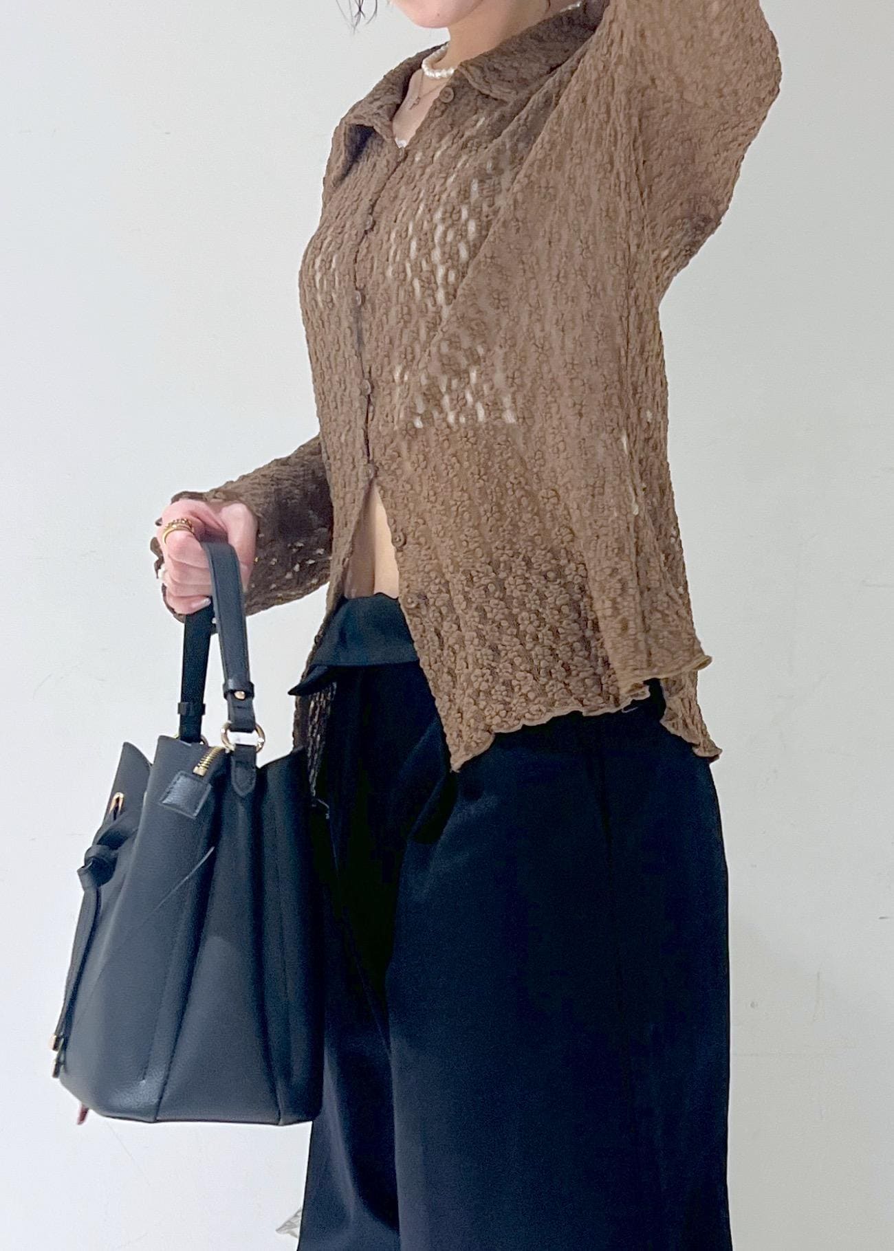 VISレースポロ襟カーディガンブラウン系 / F¥3,842レビュー152cmでヒップにかかるくらいの長さです!