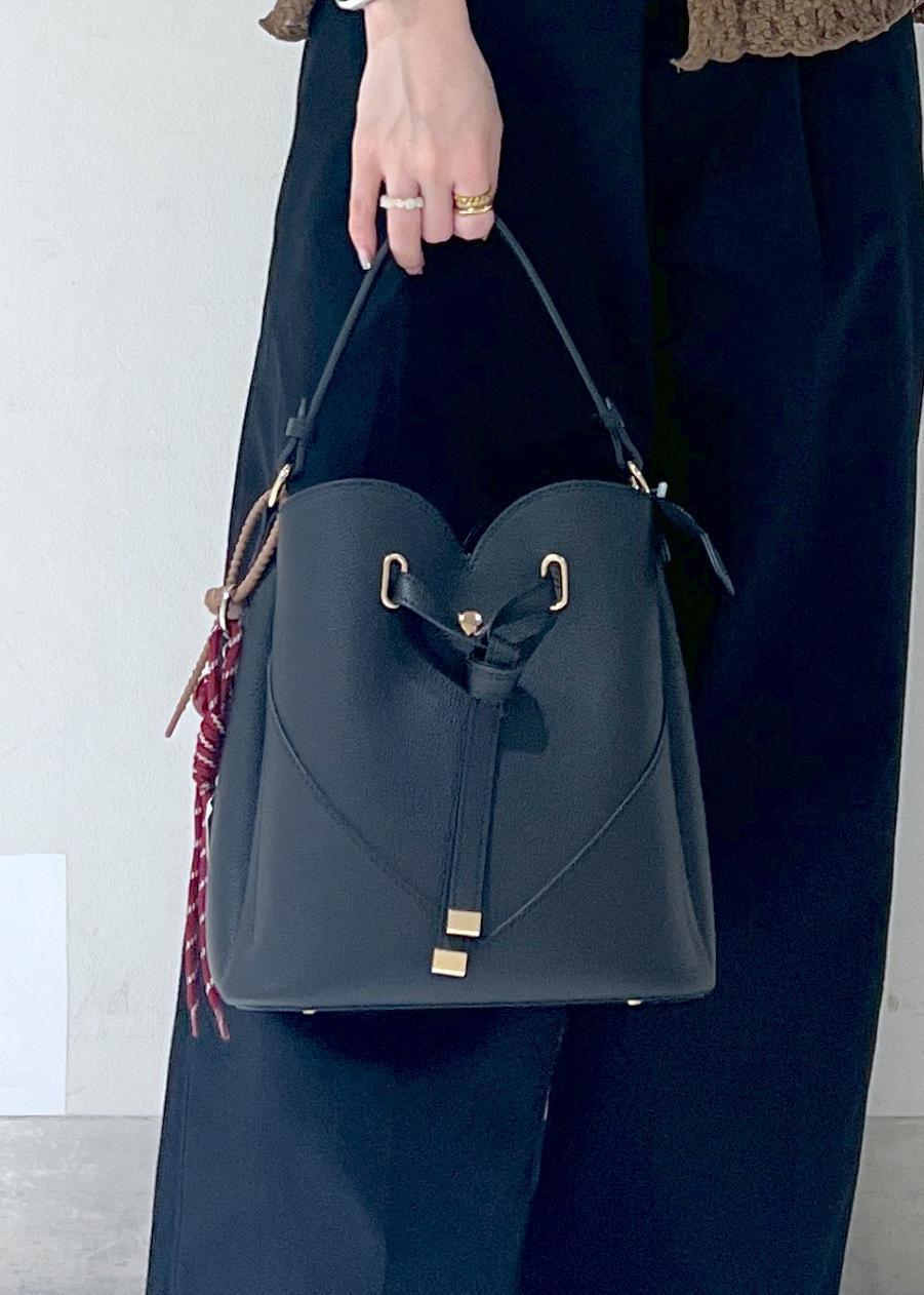 ブラックは、ハートがさり気なく分かるようになってるので、いろんなテイストのコーデにも使いやすいです◎金の金具が高見えします♪