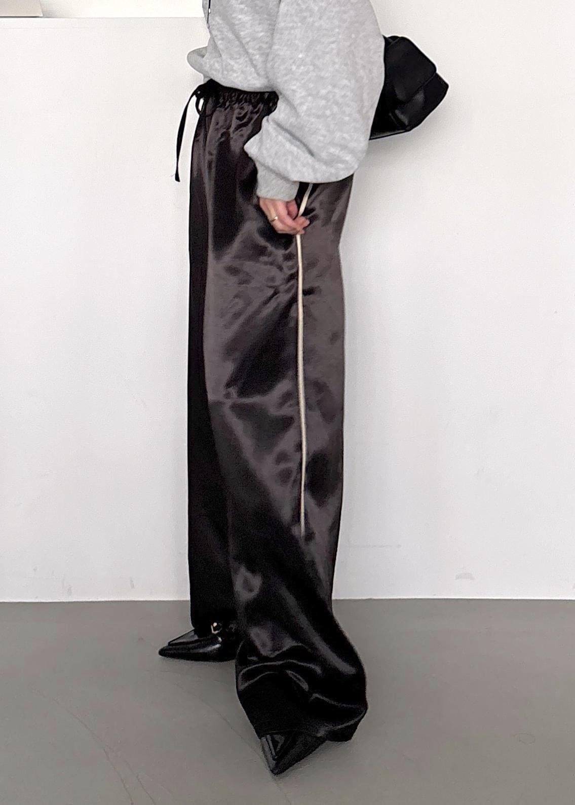 【WEB/一部店舗限定】配色サイドラインサテンイージーパンツ