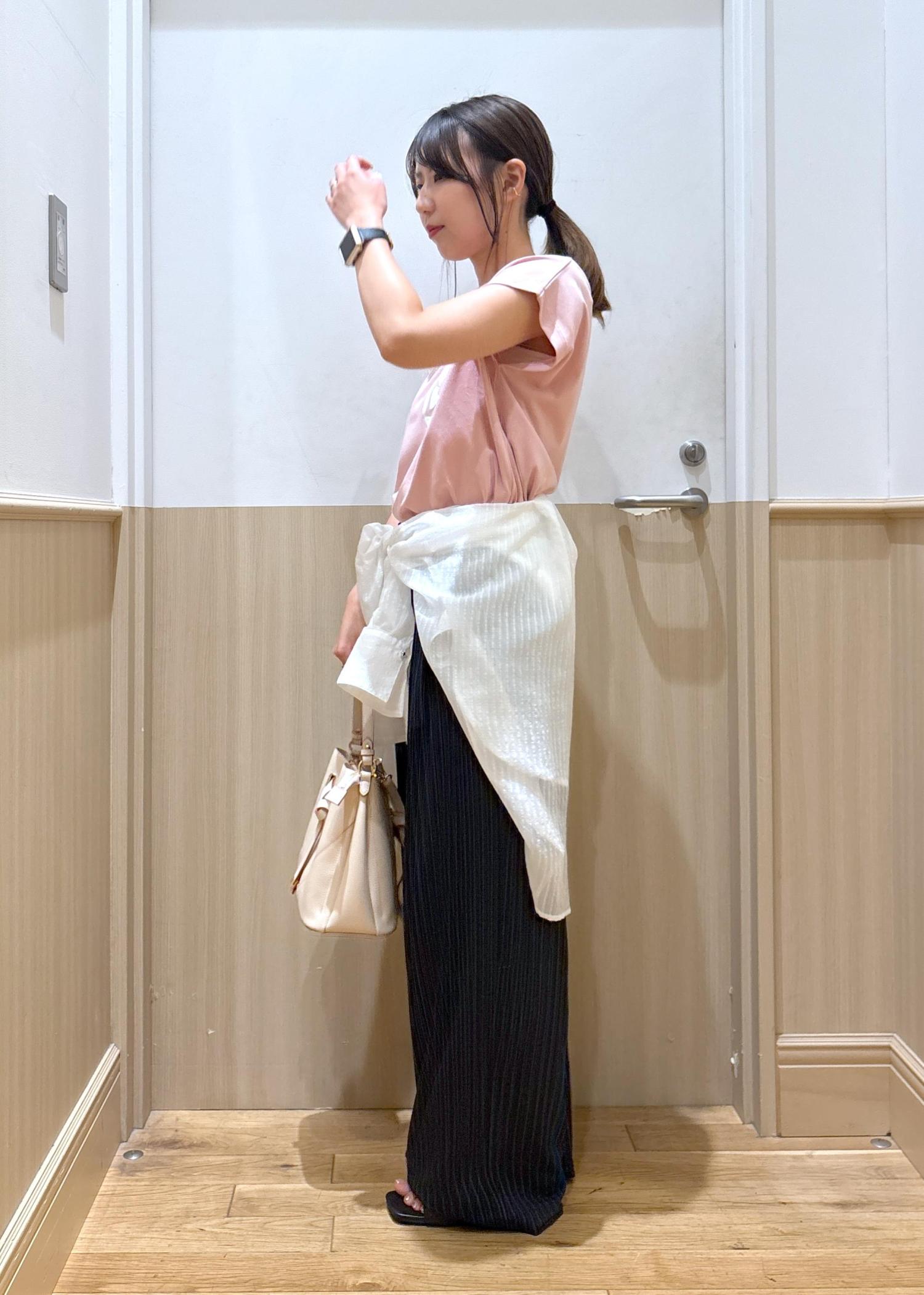 横にスリットが入っているので、タックインのスタイリングもしやすいです! -
