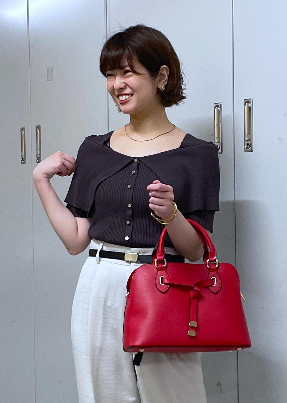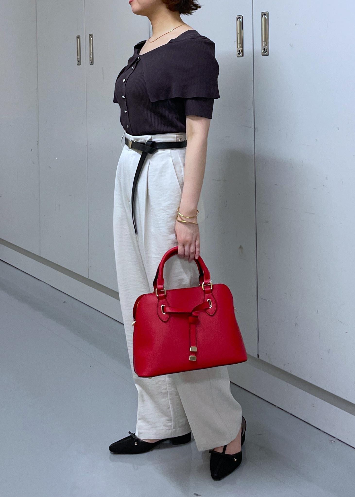 フロントのリボンデザインは甘過ぎず、大人も持ちやすいバック。