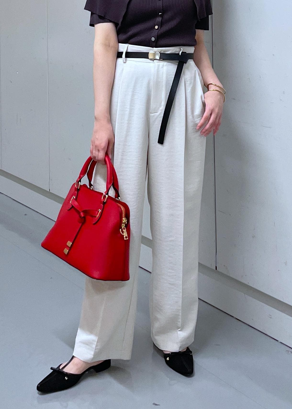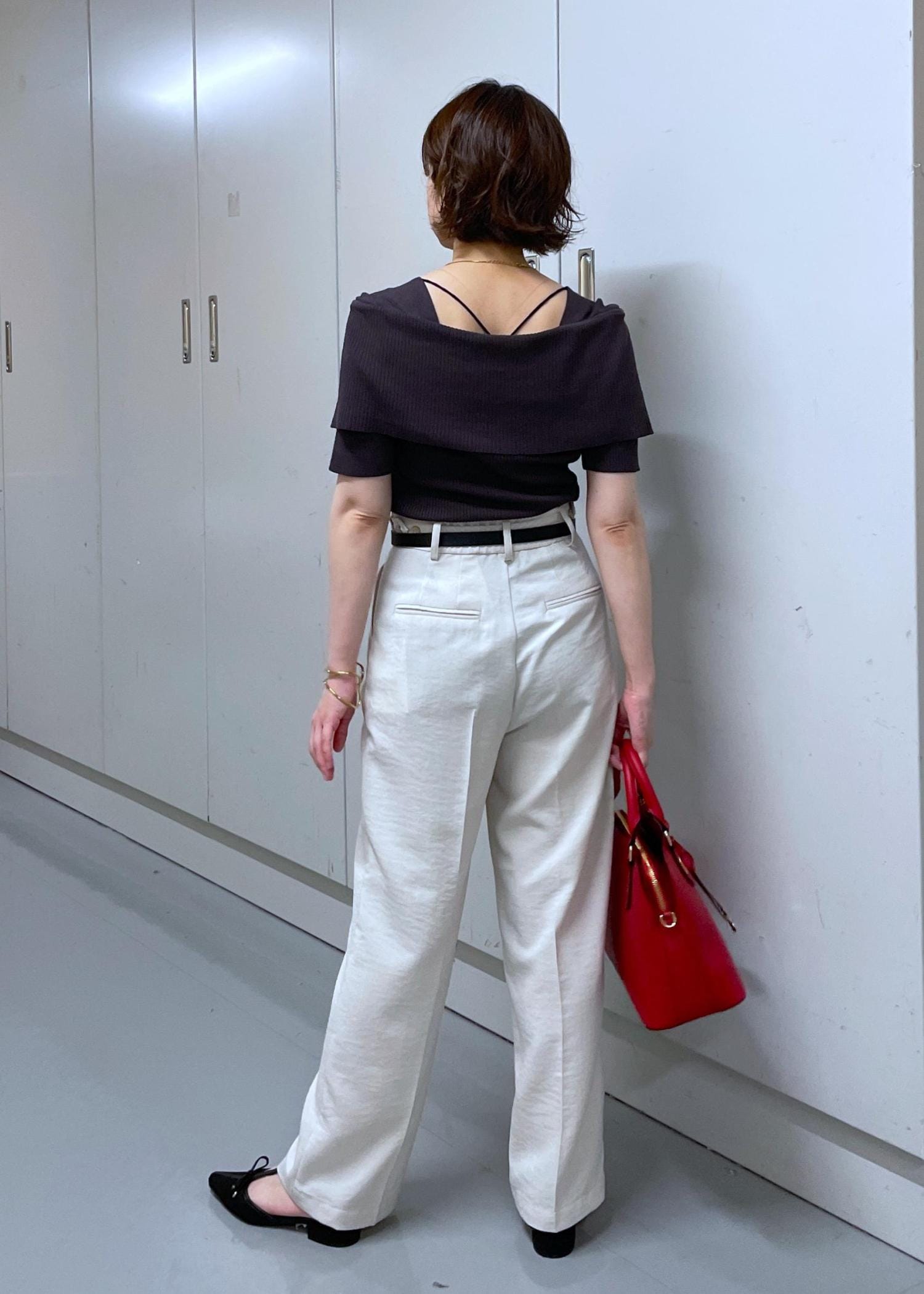 緩い方だと薄手のニットもインしやすく、キツい方だとウエストピッタリでした。