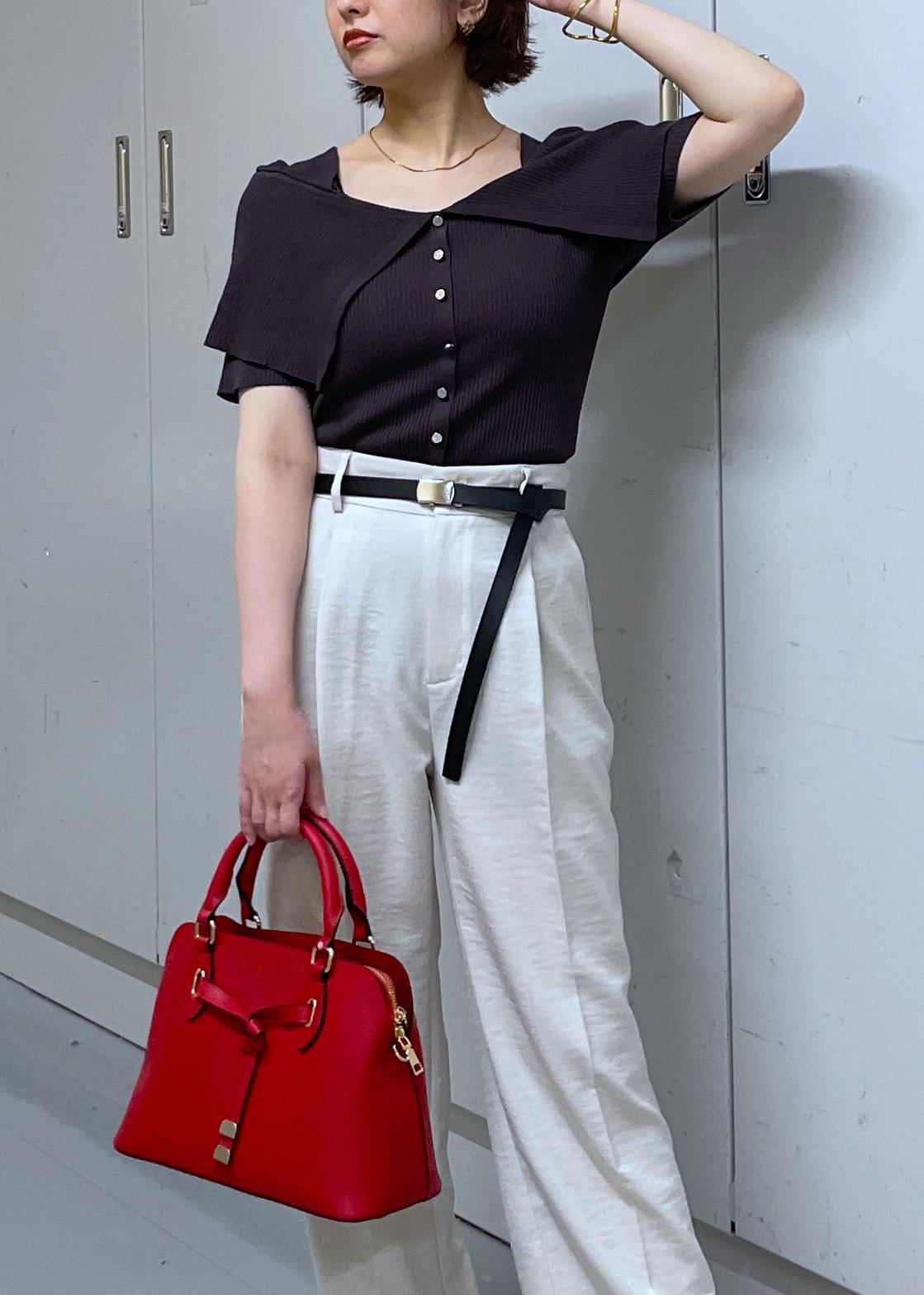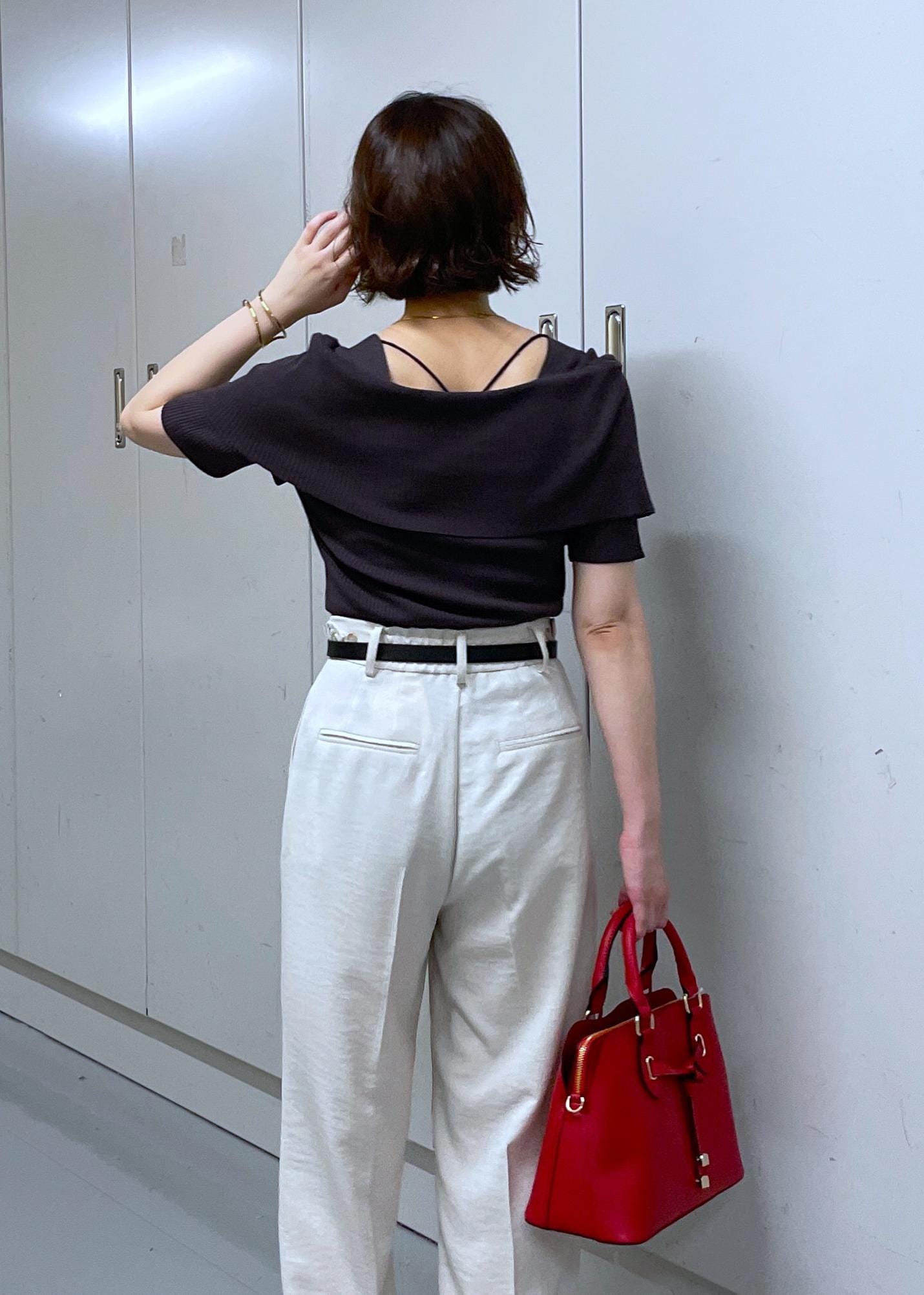 VISビックカラーオフショルハーフスリーブニットチャコール / F¥2,963レビュー薄手で柔らかいリブ編みのニットです。