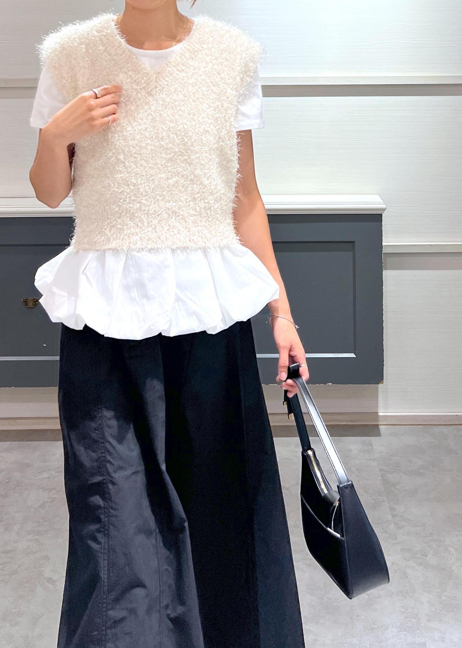 1枚でも着映えしますが、秋冬にはニットやスウェットなどとのレイヤードがおすすめです! -