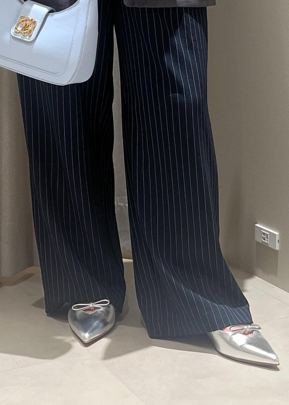 152センチだと丈感長めで、4センチ程度のヒールで裾が着かずに着用できました。