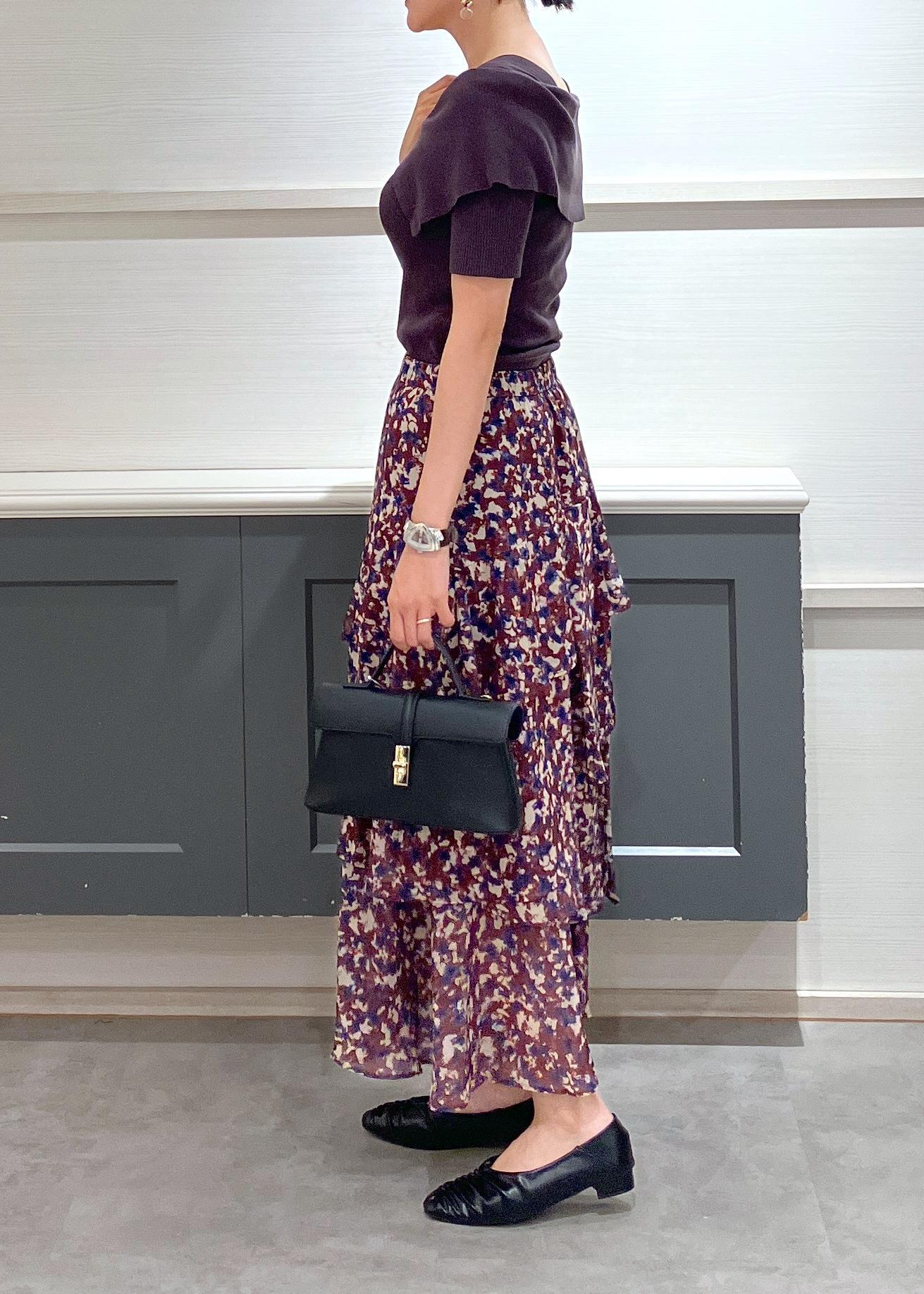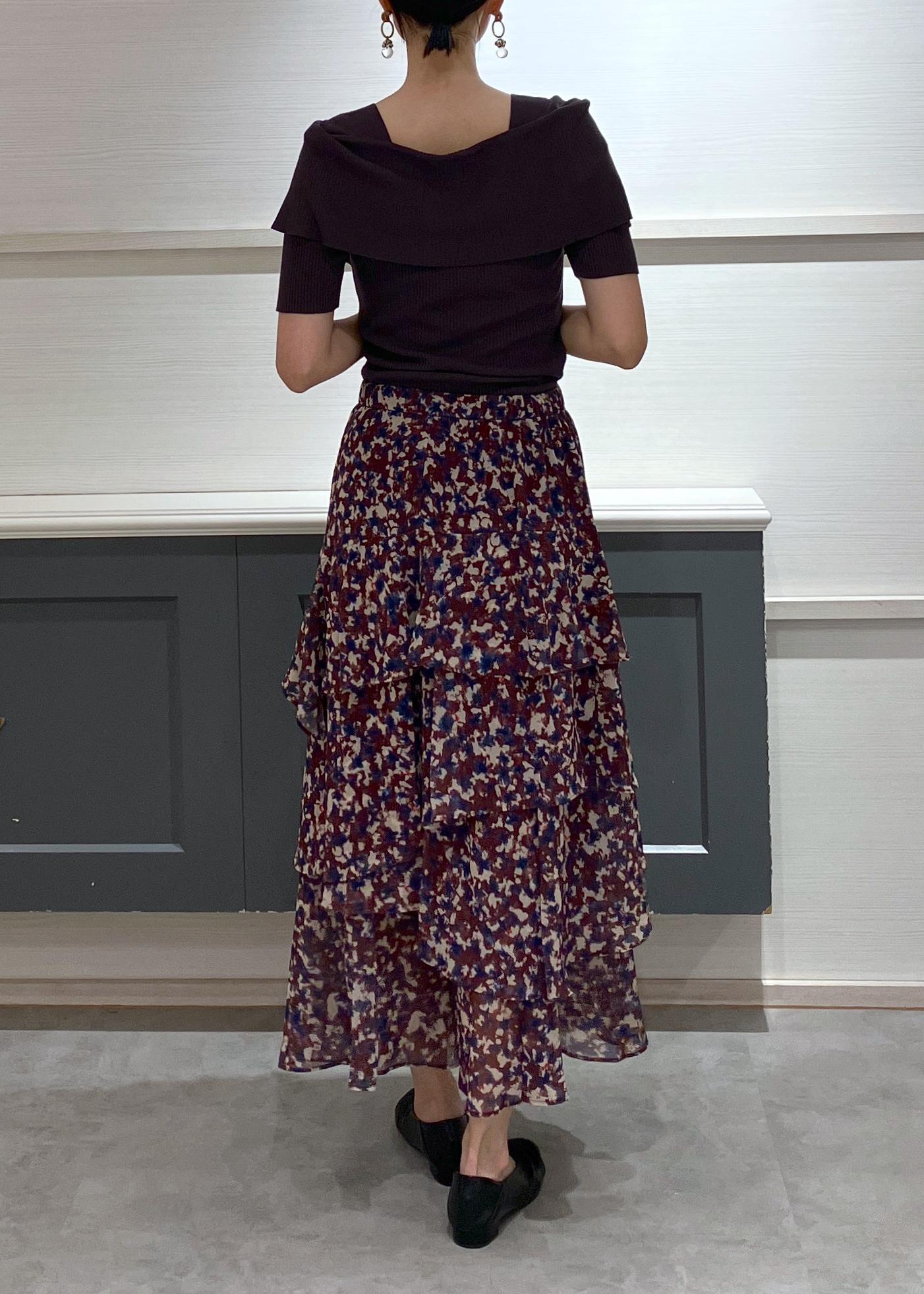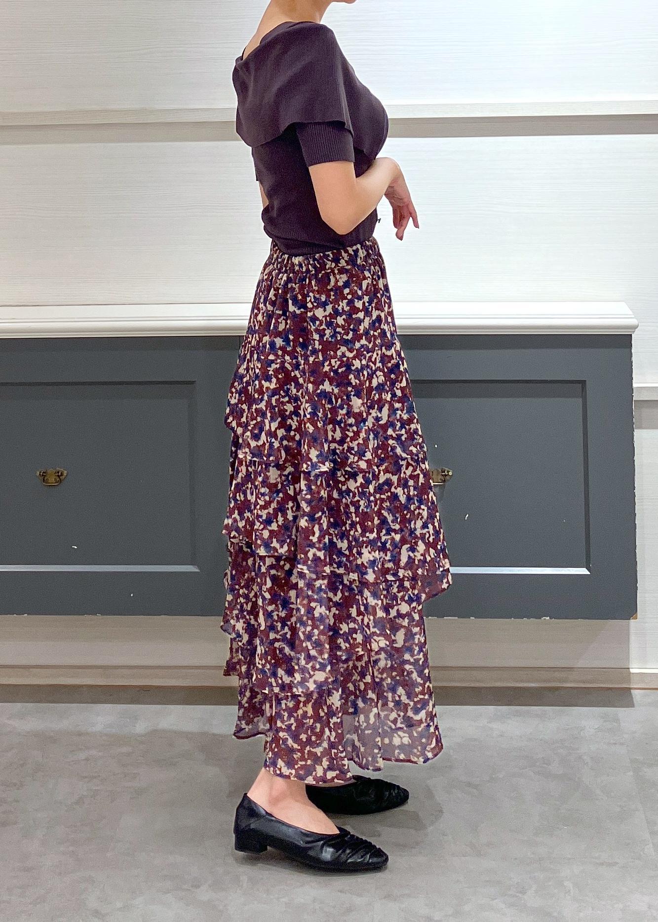 VIS花柄アソート楊柳ティアードスカートブラウン系 / F¥3,845レビュー身長168センチで足首より上の着丈ですが、ウエストゴムなので着丈は自由に調節できます♡