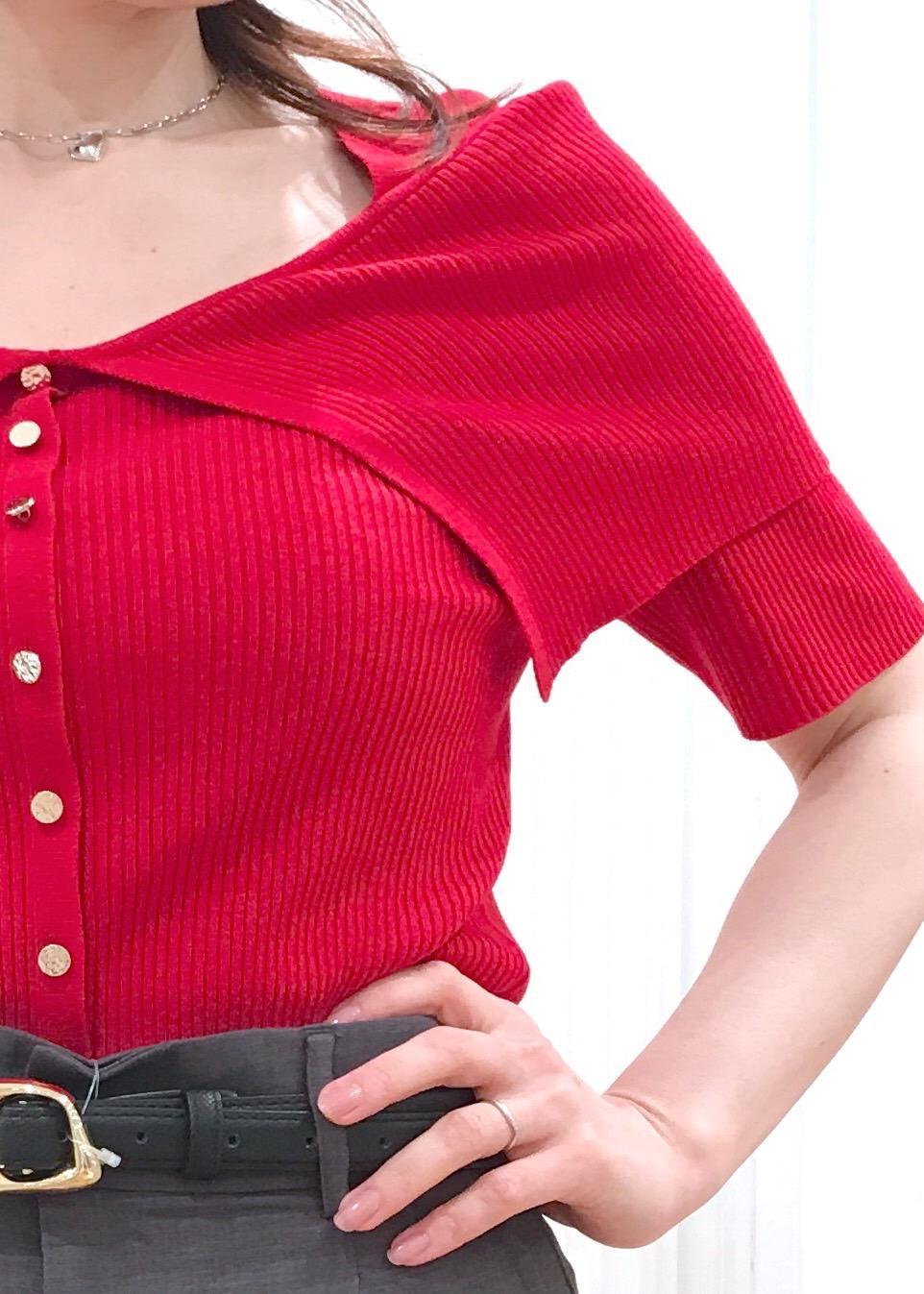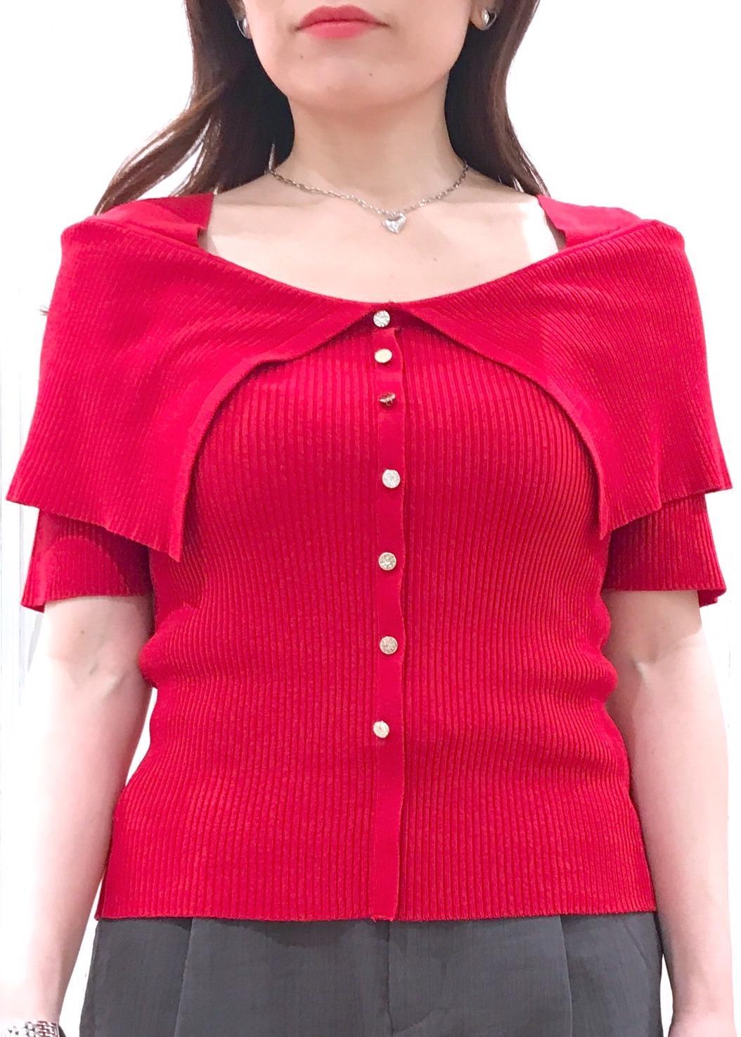 VISビックカラーオフショルハーフスリーブニットレッド / F¥2,963レビュー着丈は腰骨より少し下辺りまでの長さです。