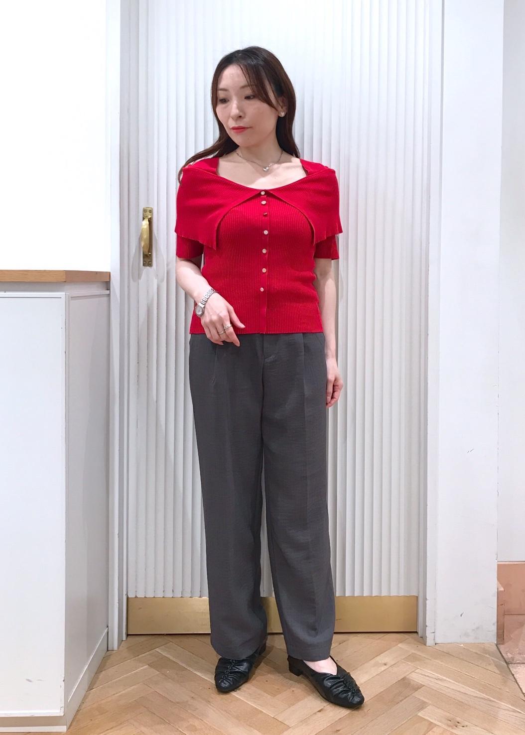 ニットは肩を覆うデザインなので露出しすぎず、幅広いシーンで活躍しますよ。