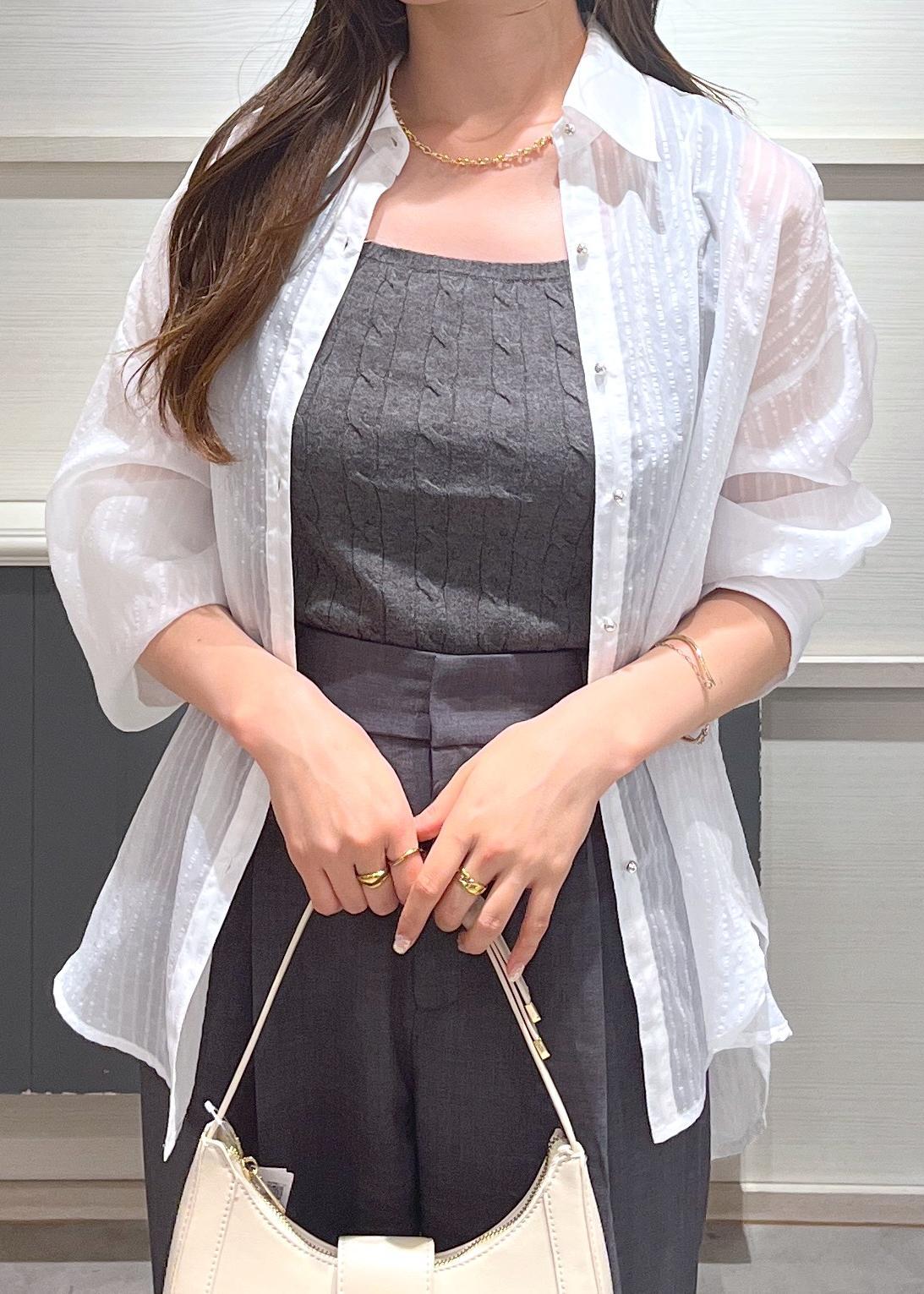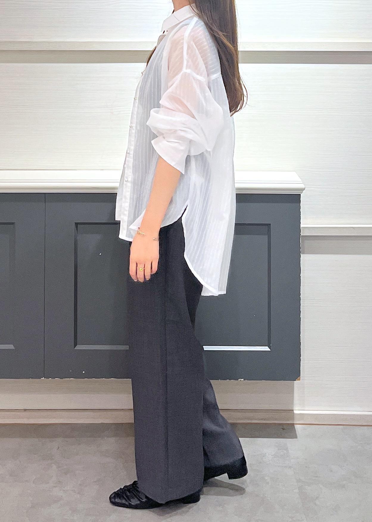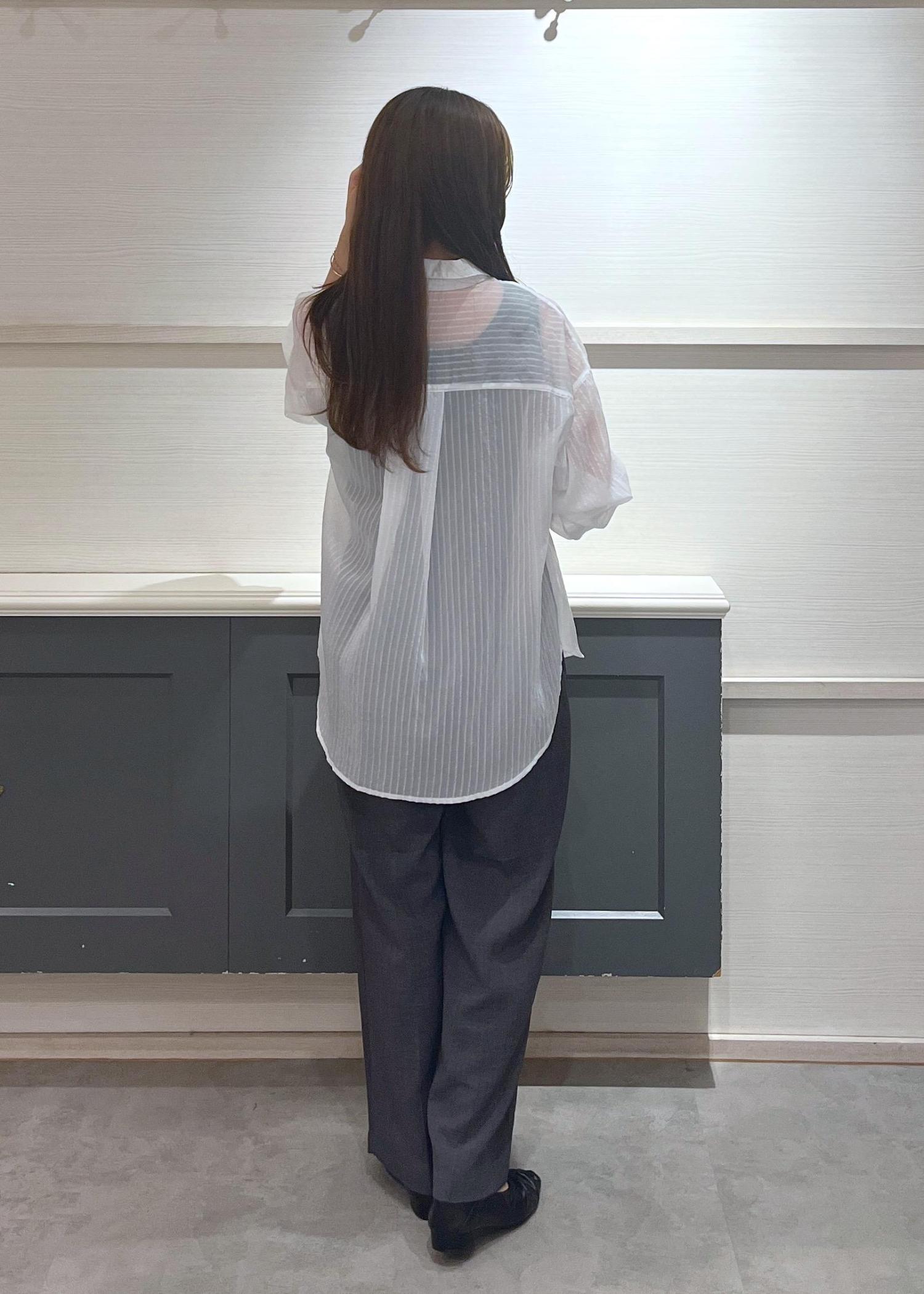 ホワイトのシアーシャツの中はグレーのワントーンで大人っぽく合わせました!