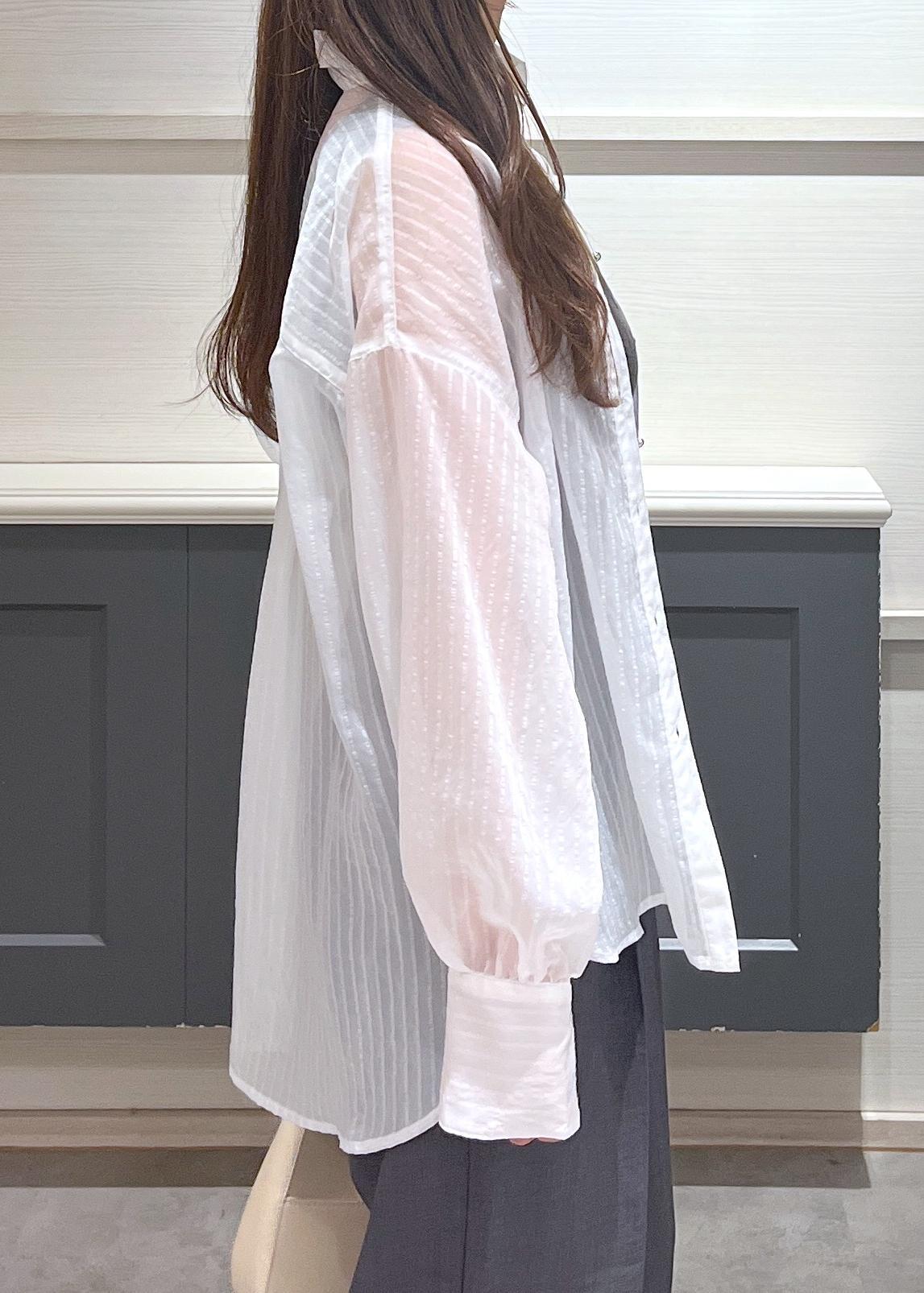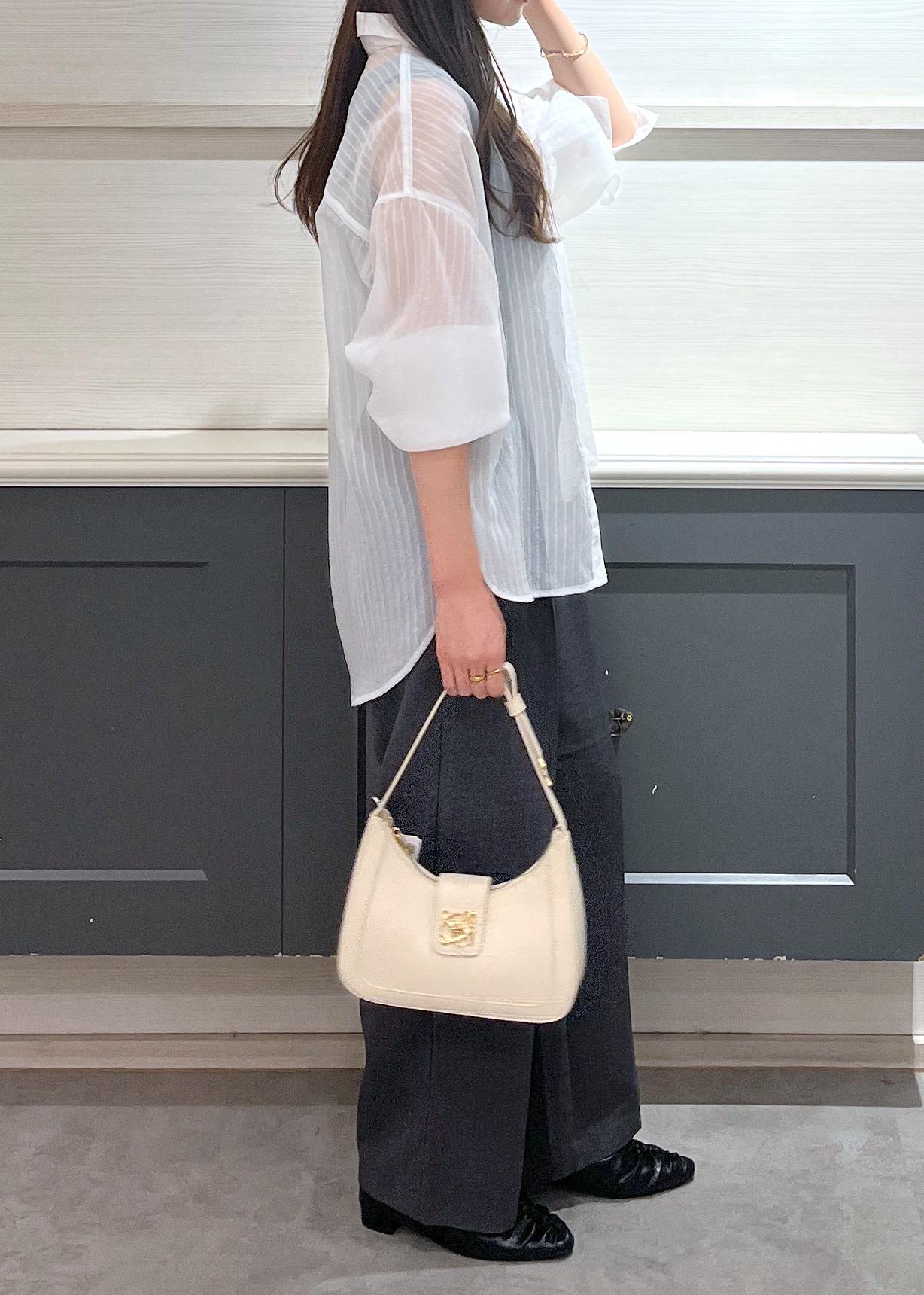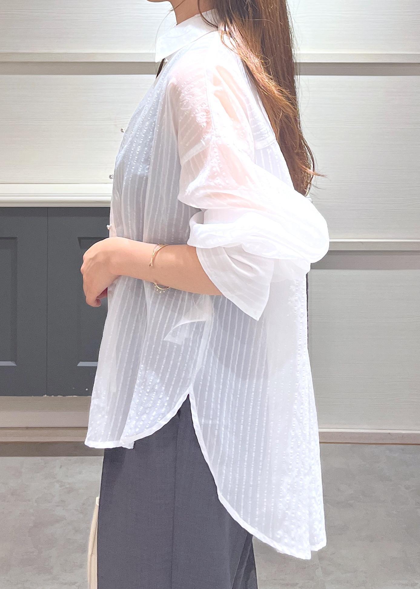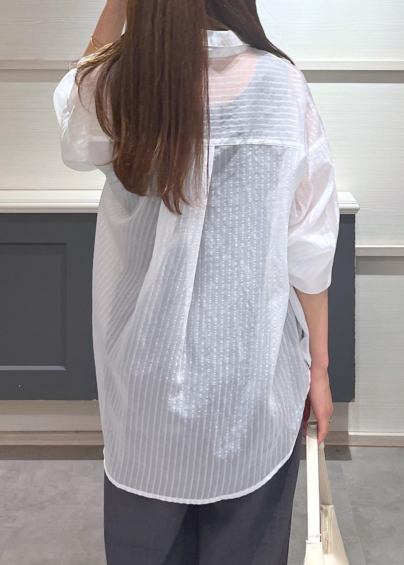 ホワイトのシアーシャツの中はグレーのワントーンで大人っぽく合わせました!