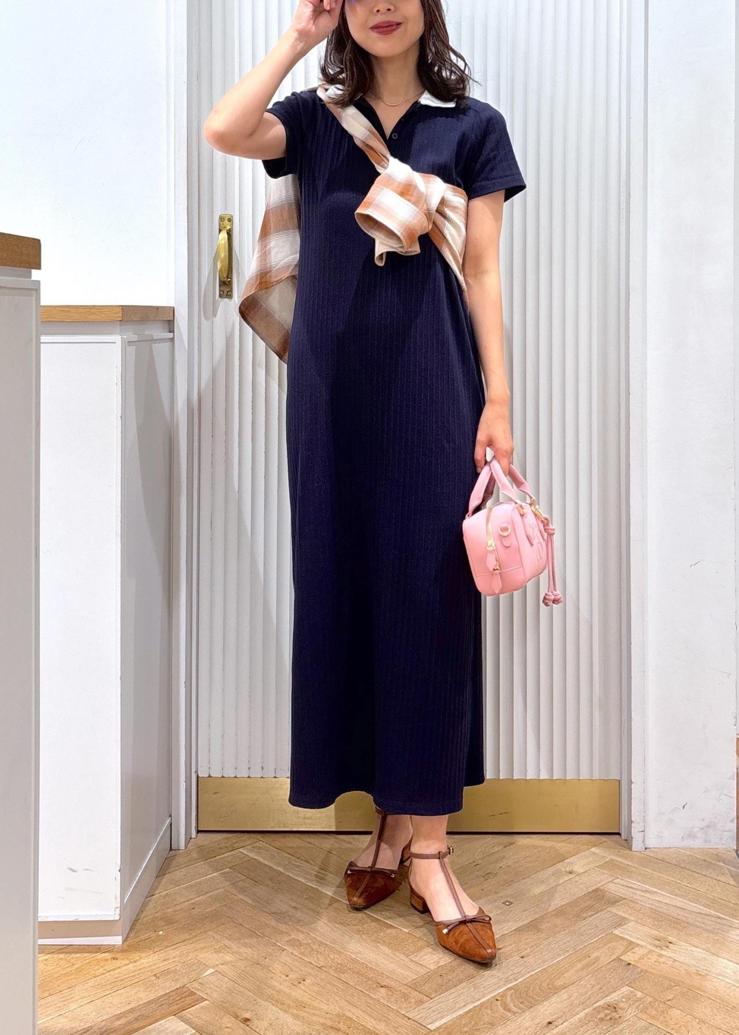 VISポロ衿ランダムリブワンピースネイビー系 / F¥4,612レビュー身長164センチ、フリーサイズ着用です。
