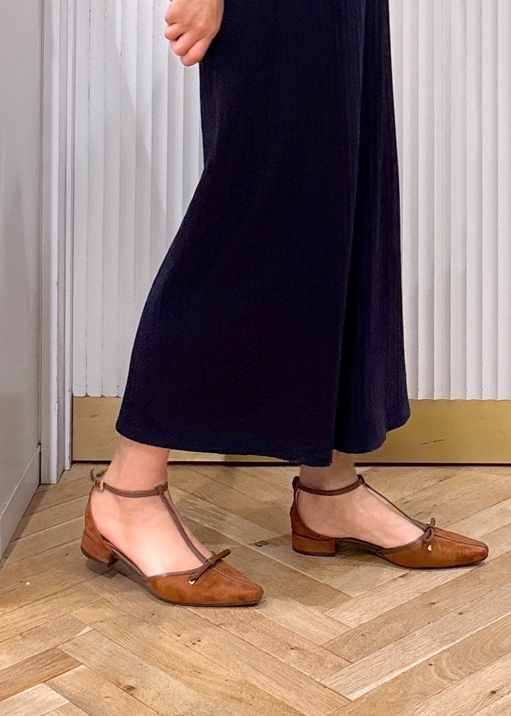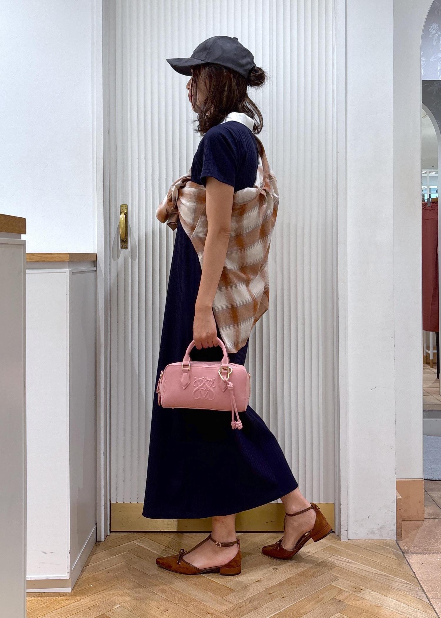 小物はスウェード素材でまとめて、初秋を意識しました。